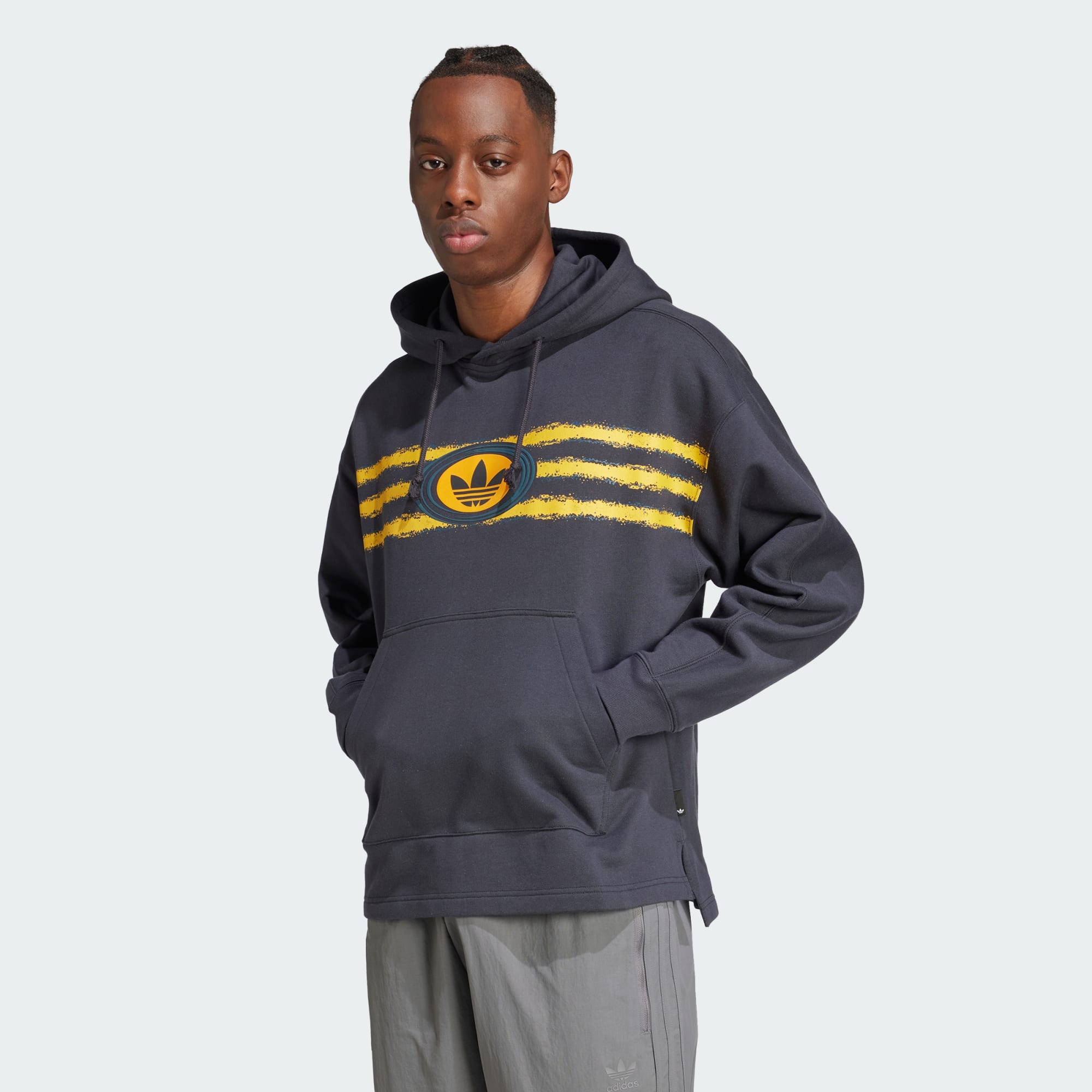 Regresamos a los años 90, una era grungy de siluetas holgadas, estampados densos y llamativos y una irreverencia irreverente. Este buzo con capucha adidas evoca el estilo y el espíritu de aquellos tiempos memorables con un tejido de felpa francesa gruesa que ofrece la sensación perfecta sin importar la temporada. Su corte holgado y extragrande te ofrece espacio suficiente para relajarte. Los puños acanalados, la capucha con forro interno suave y el gran bolsillo frontal completan los detalles funcionales. Los estampados en el pecho se inspiran en los estampados llamativos de esa era. Úsalo sobre una camiseta estampada y combínalo con corduroy o pantalones cargo para recrear la energía.
