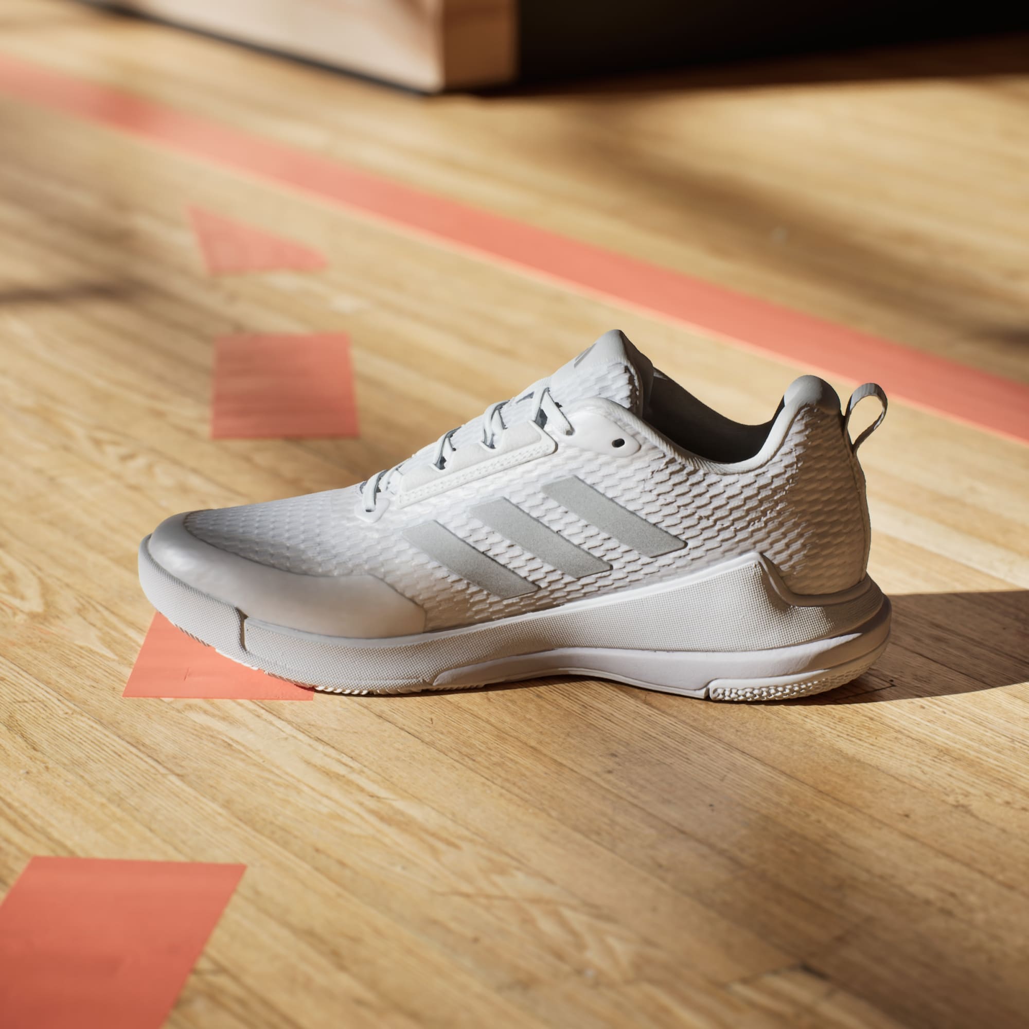 Diseñadas para atletas de interior, este calzado adidas proporciona el soporte necesario para igualar tu fuego competitivo. Una suave parte superior con lengüeta acolchada y cuello mantiene tu pie envuelto en comodidad durante el juego intenso. Una mediasuela de EVA proporciona una amortiguación ligera, mientras que el inserto Lightstrike en el talón soporta tus movimientos dinámicos. El caucho Adiwear que no deja marcas proporciona una tracción que se agarra, para que puedas centrarte en la acción. Sea cual sea el deporte que te apasiona, este calzado para interior te ayudará a dar lo mejor de ti. Este producto contiene al menos un 20 % de materiales reciclados. Al utilizar materiales reciclados, disminuimos los residuos, nuestra dependencia de los recursos finitos y la huella que generan los productos que fabricamos.