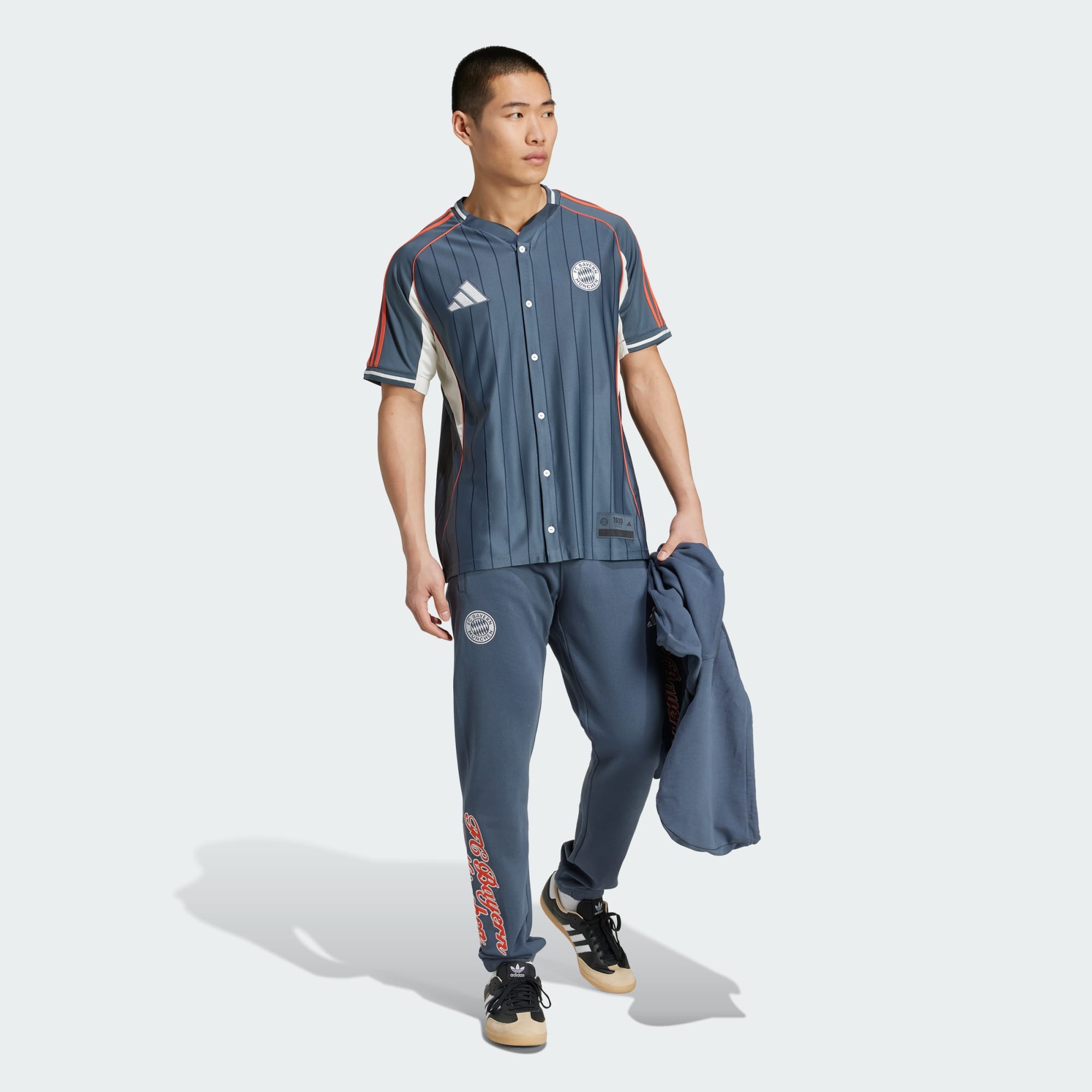 Este jersey local, en rojo y blanco, rinde homenaje a Múnich con cada puntada y luce una llamativa "M" en el frente.
