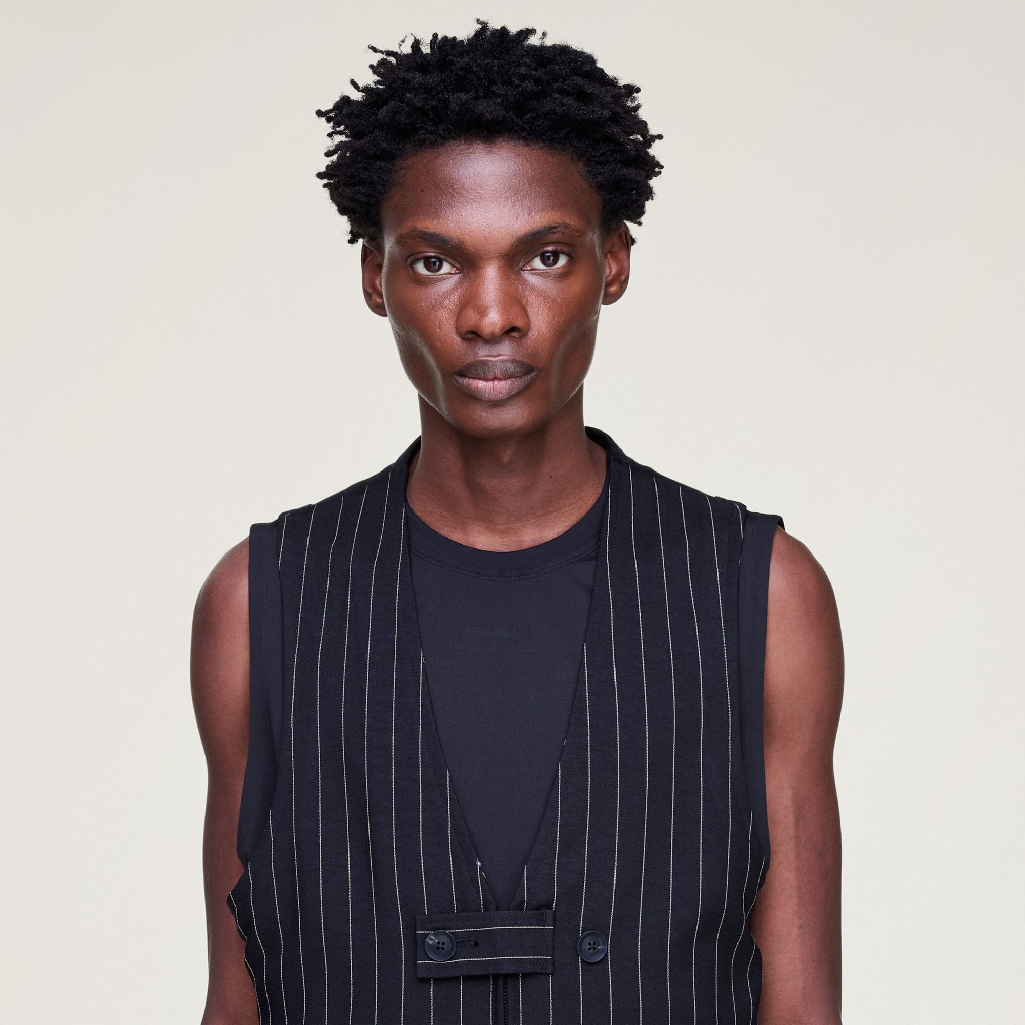 Chaleco a medida con diseño de finas rayas para lograr un look elegante.