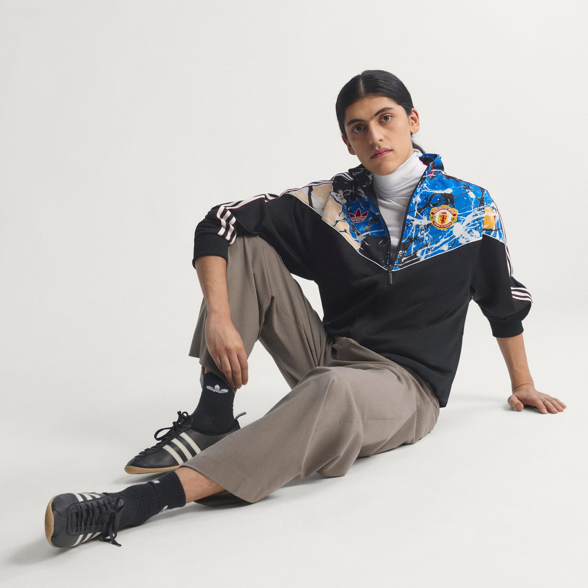 Inspirada en la pasión de Manchester por el fútbol, la música y el estilo, la Chamarra Deportiva Manchester United Stone Roses rinde homenaje a dos iconos que ayudaron a dar forma a toda una generación. Más que una simple chamarra deportiva, es un tributo a la legendaria banda y a la devota cultura de seguidores del club. El estampado integral hace referencia a la portada del sencillo I Wanna Be Adored, fusionando el legado musical con el inconfundible diseño de adidas. Confeccionada en tejido tricot, esta chamarra deportiva ofrece un corte holgado para poder combinarla con facilidad con otras prendas en el famoso y cambiante clima de Manchester. El distintivo de marca del Trifolio añade un toque clásico, mientras que el cierre frontal y el cuello alto completan el look con un toque atemporal. Esta chamarra deportiva adidas, que combina arte, moda, música y deporte, captura la creatividad y el orgullo que siguen definiendo a Manchester.
