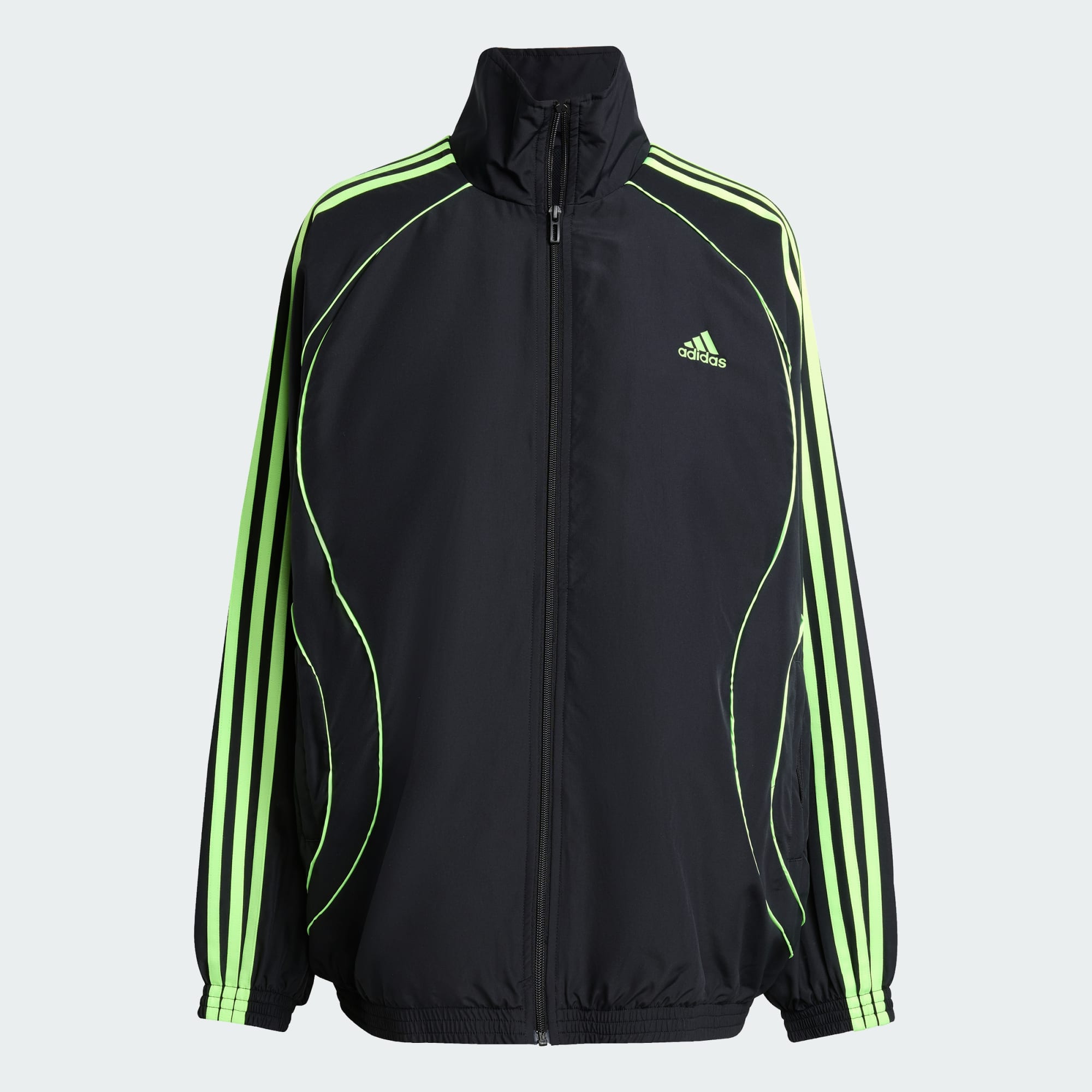 Esta chamarra deportiva adidas es puro estilo deportivo. Está confeccionada con un tejido suave y liviano, y tiene un corte generoso para que puedas usarla con facilidad sobre tus playeras favoritas. Las 3 Franjas características en las mangas y el cuello alto le dan ese aspecto atlético clásico.