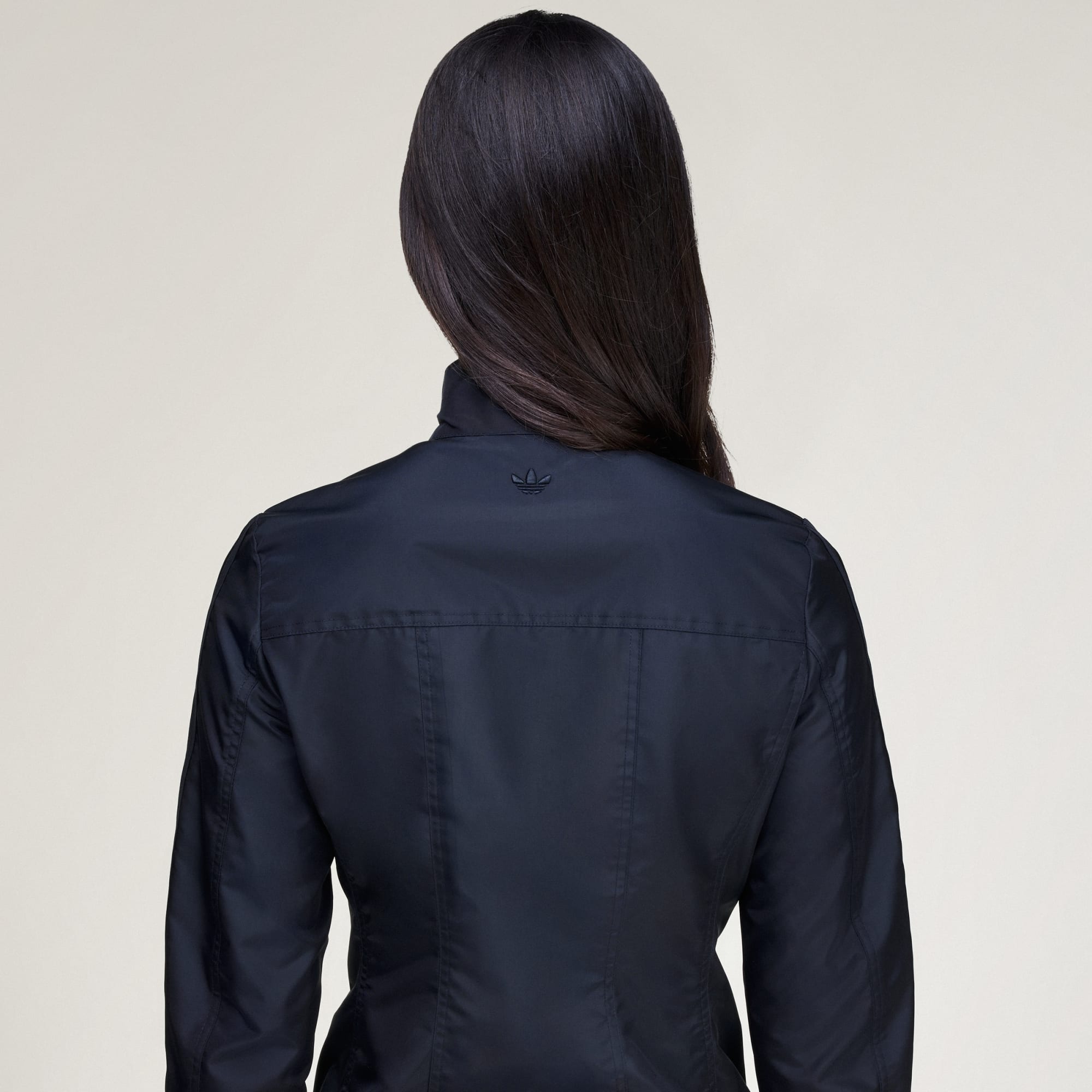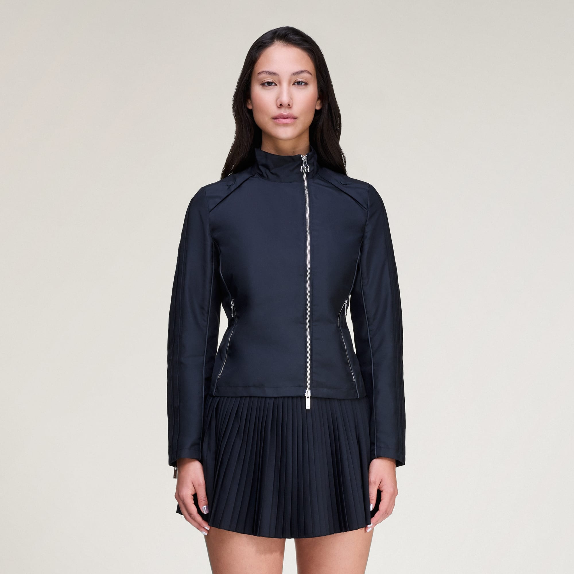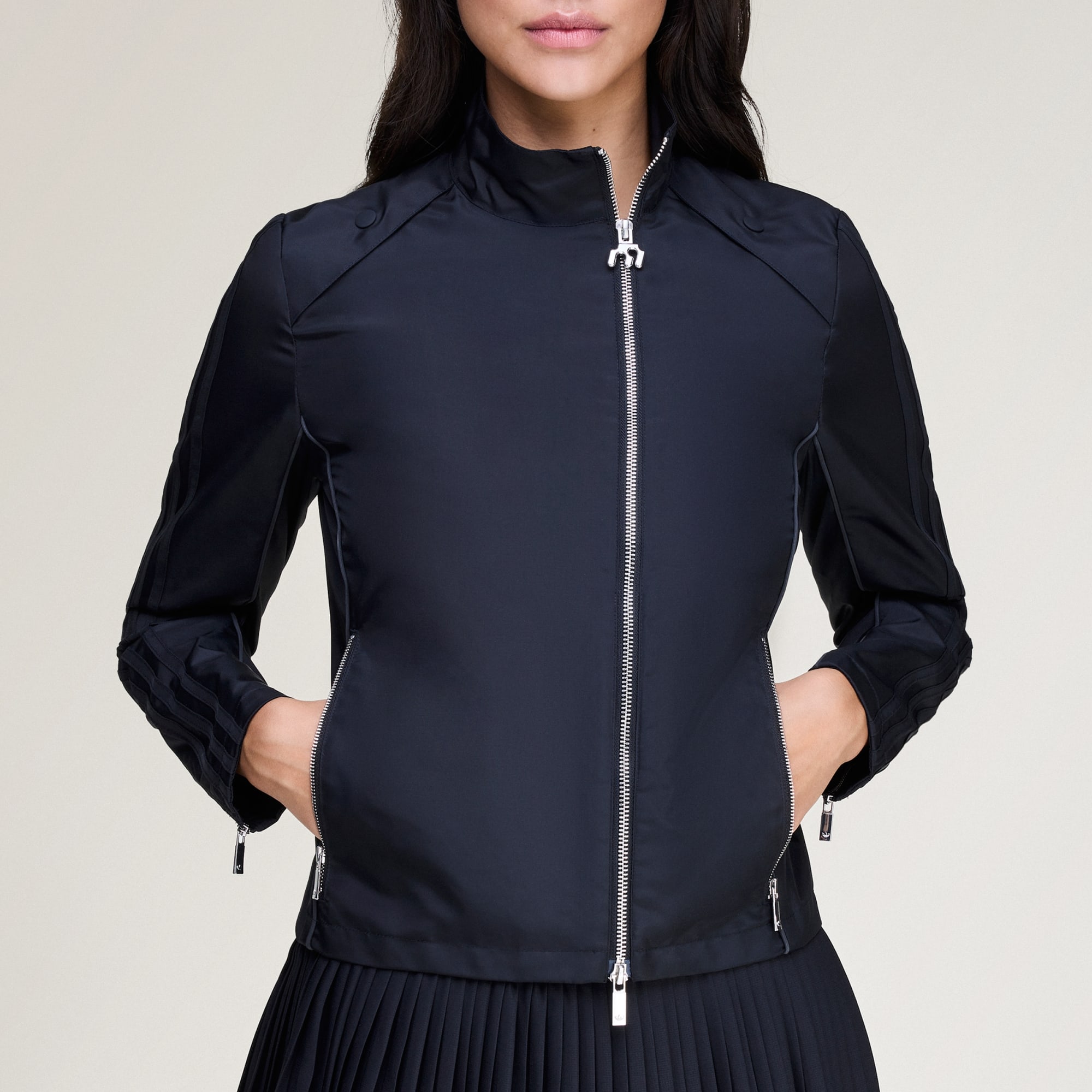Chamarra de lona de corte ajustado para una silueta aerodinámica.