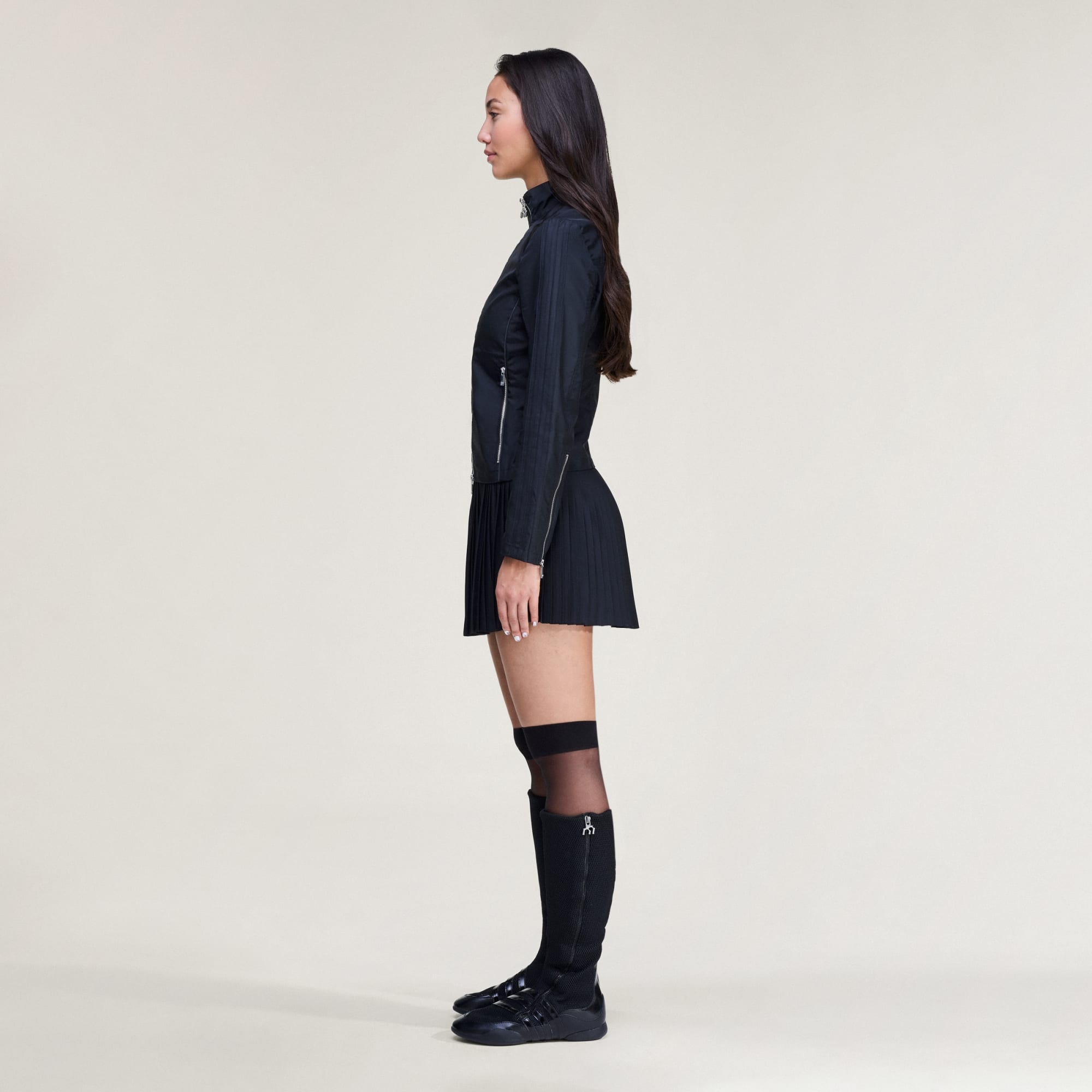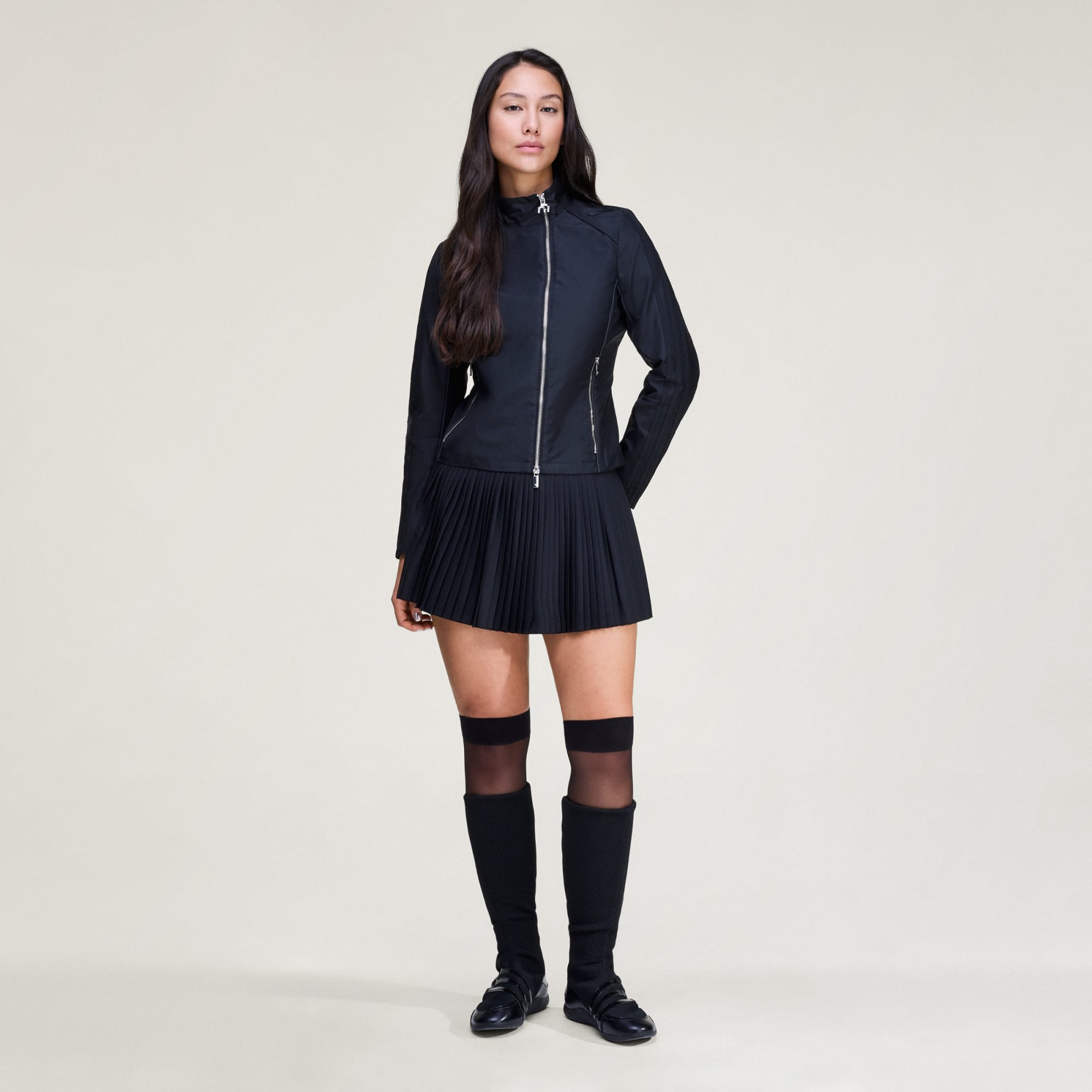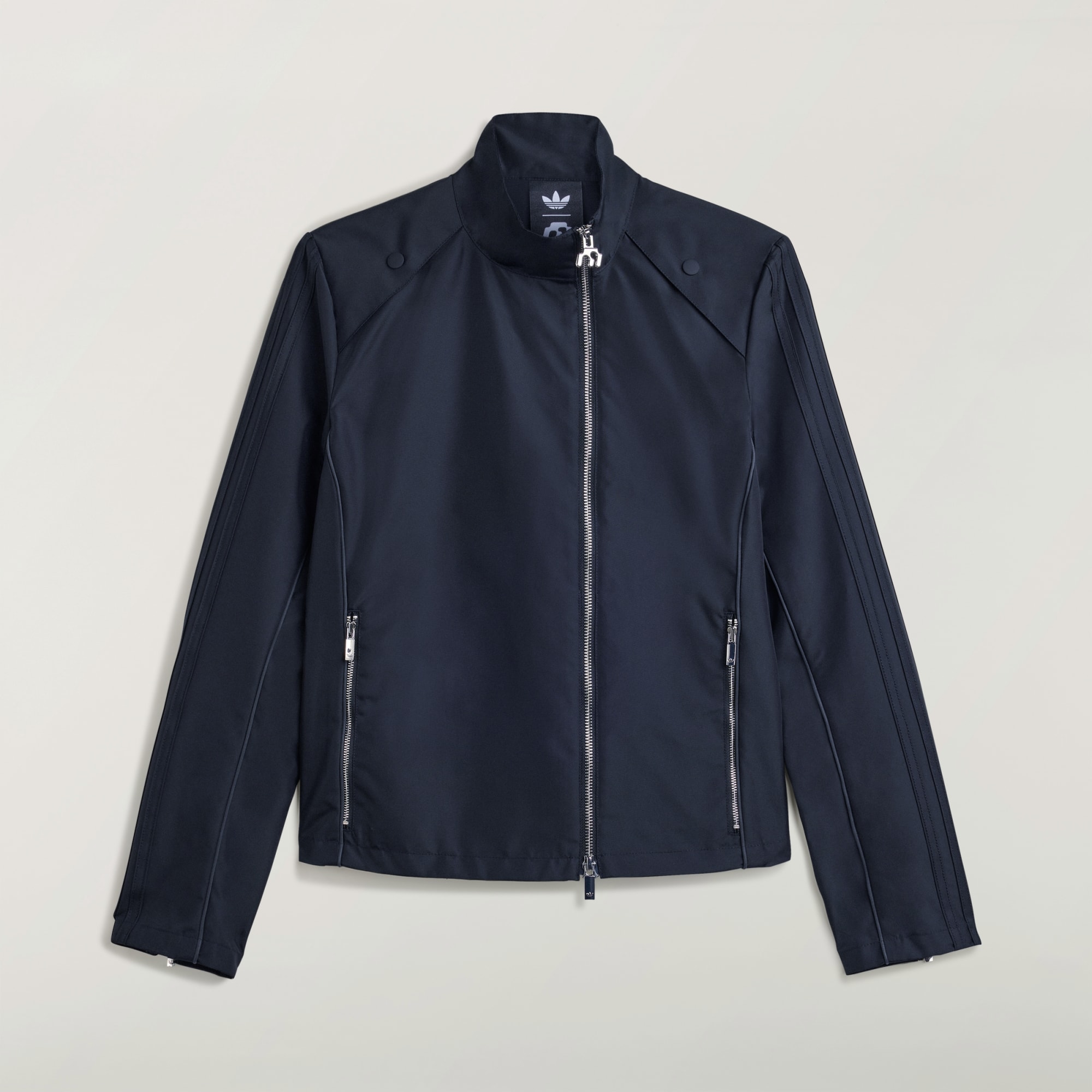 Chamarra de lona de corte ajustado para una silueta aerodinámica.