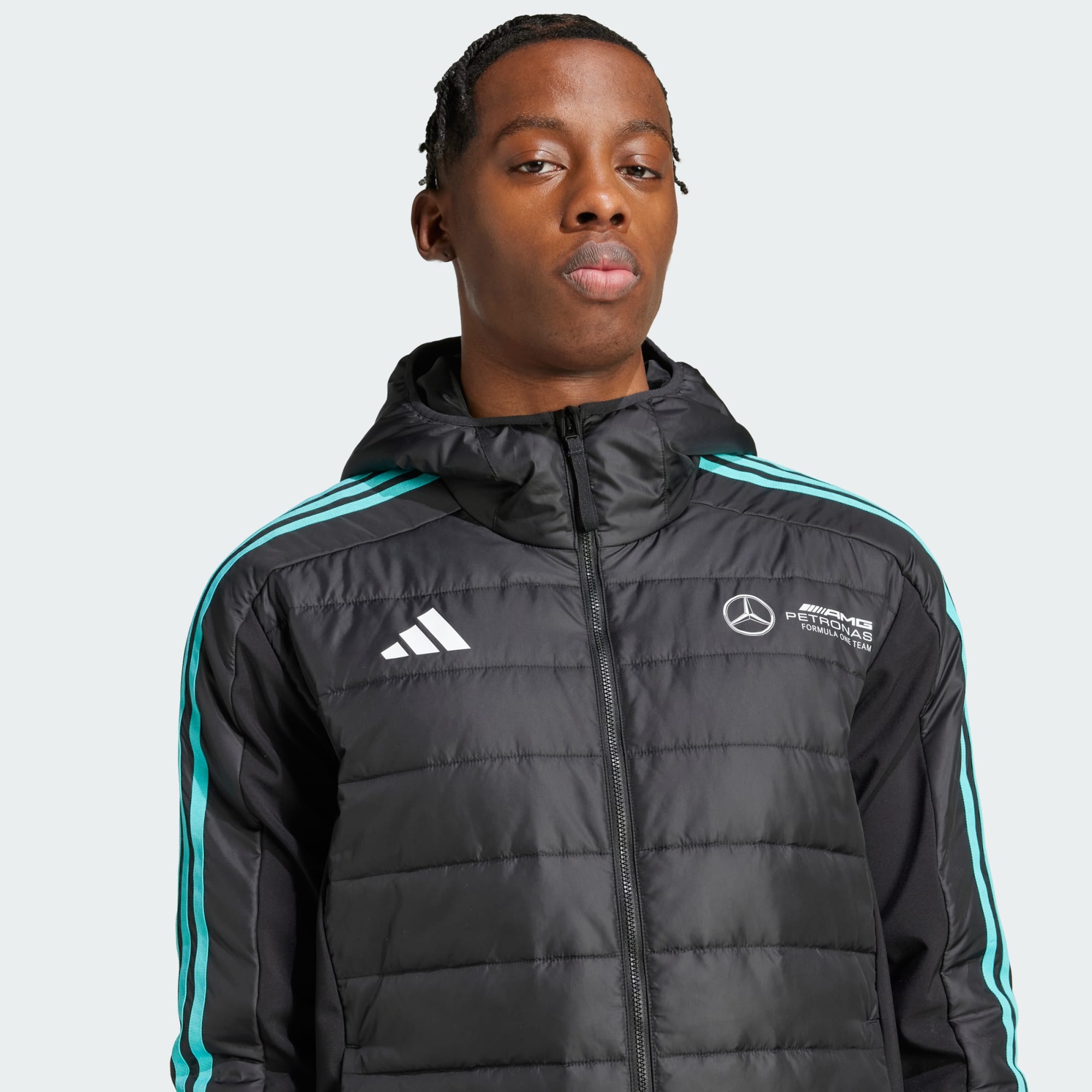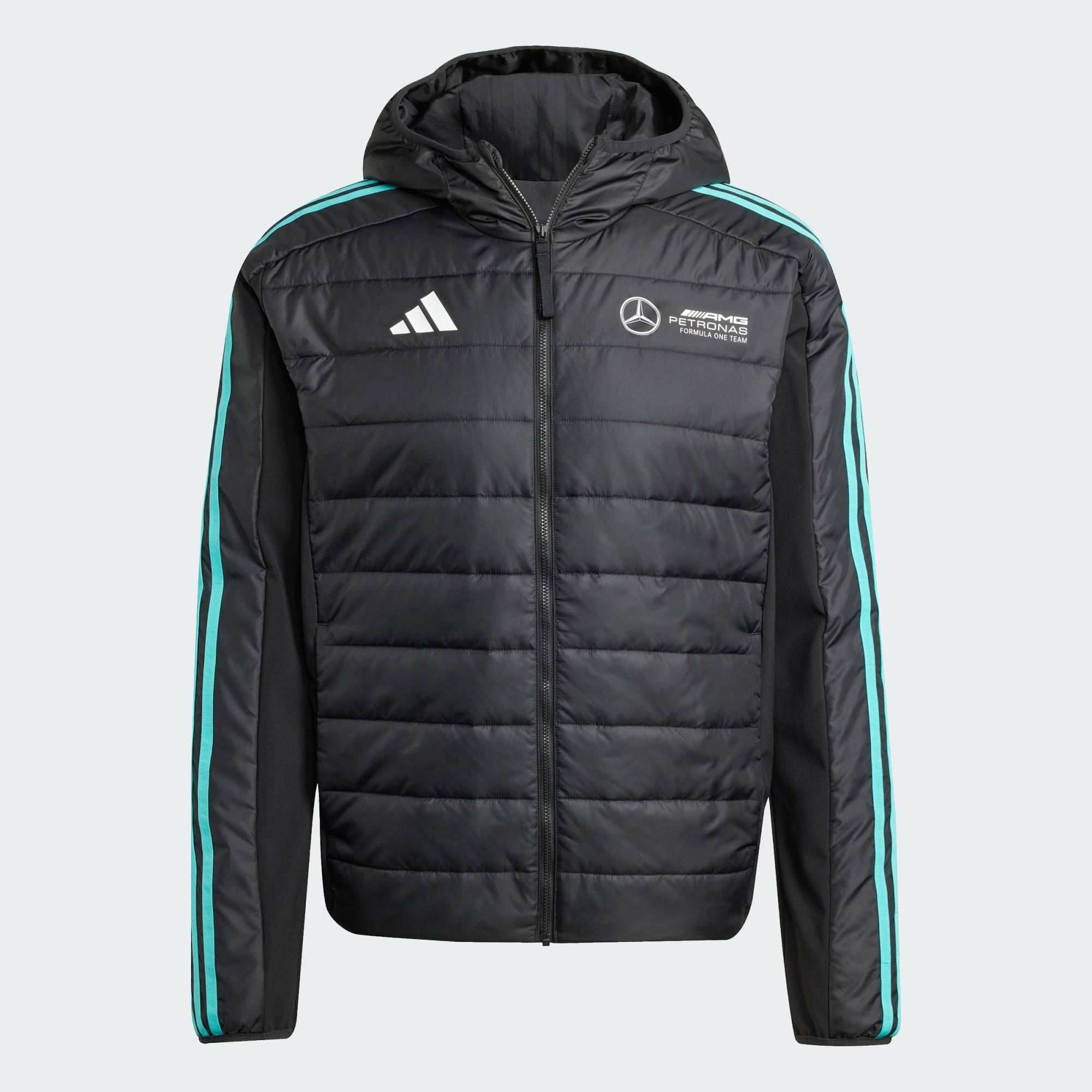 Muestra tu lealtad al equipo con esta chamarra acolchada Mercedes - AMG Petronas Formula One Team de adidas Motorsports. Inspirada en la estética aerodinámica, esta chamarra acolchada ofrece una mayor calidez para mantenerte cómodo en todo tipo de clima. El relleno liviano te aísla del frío sin abultamientos, mientras que el escudo metalizado del club en el pecho demuestra tu devoción por el club. Este producto está hecho con materiales 100 % reciclados. Utilizando materiales reciclados disminuimos los residuos, nuestra dependencia de los recursos finitos y la huella que generan los productos que fabricamos.