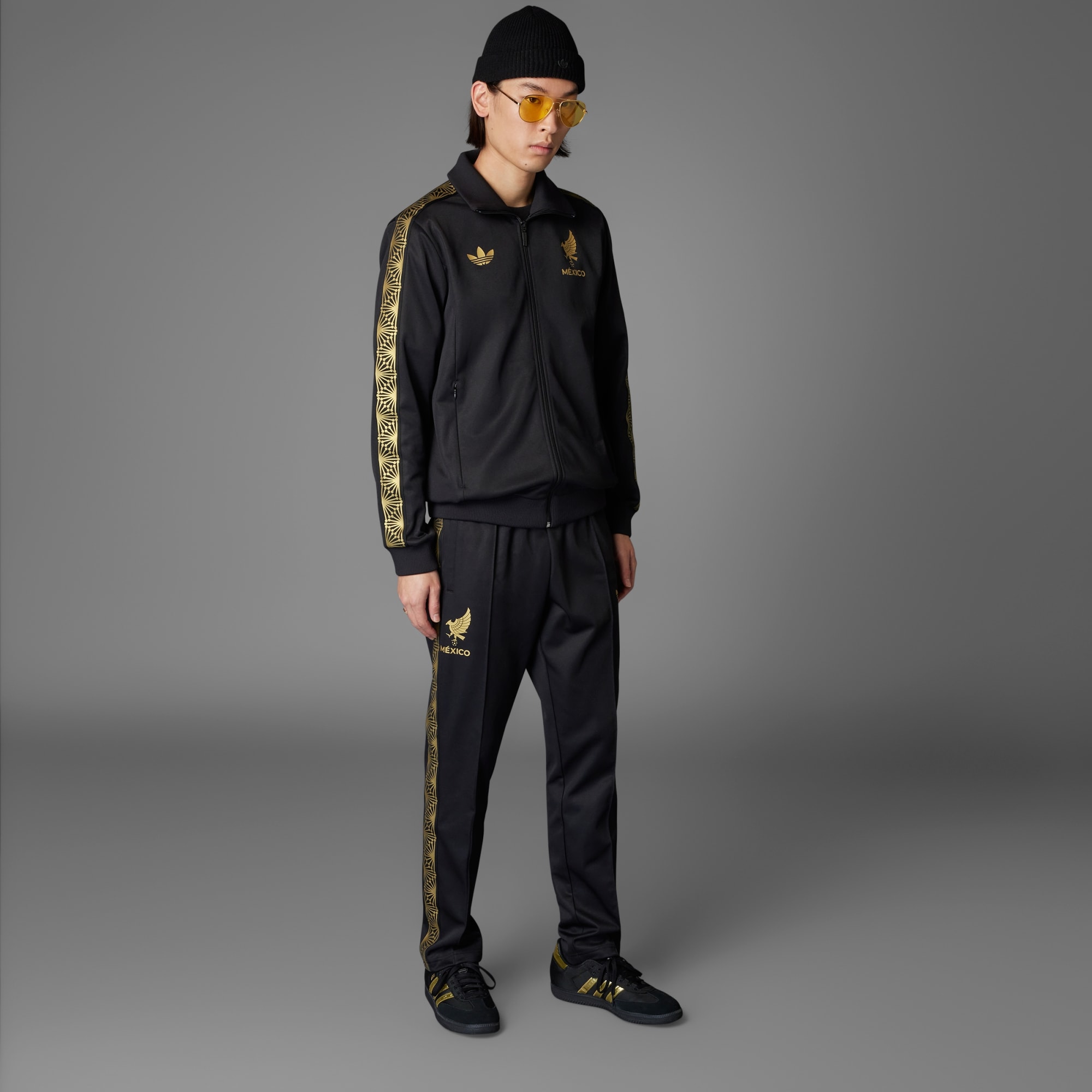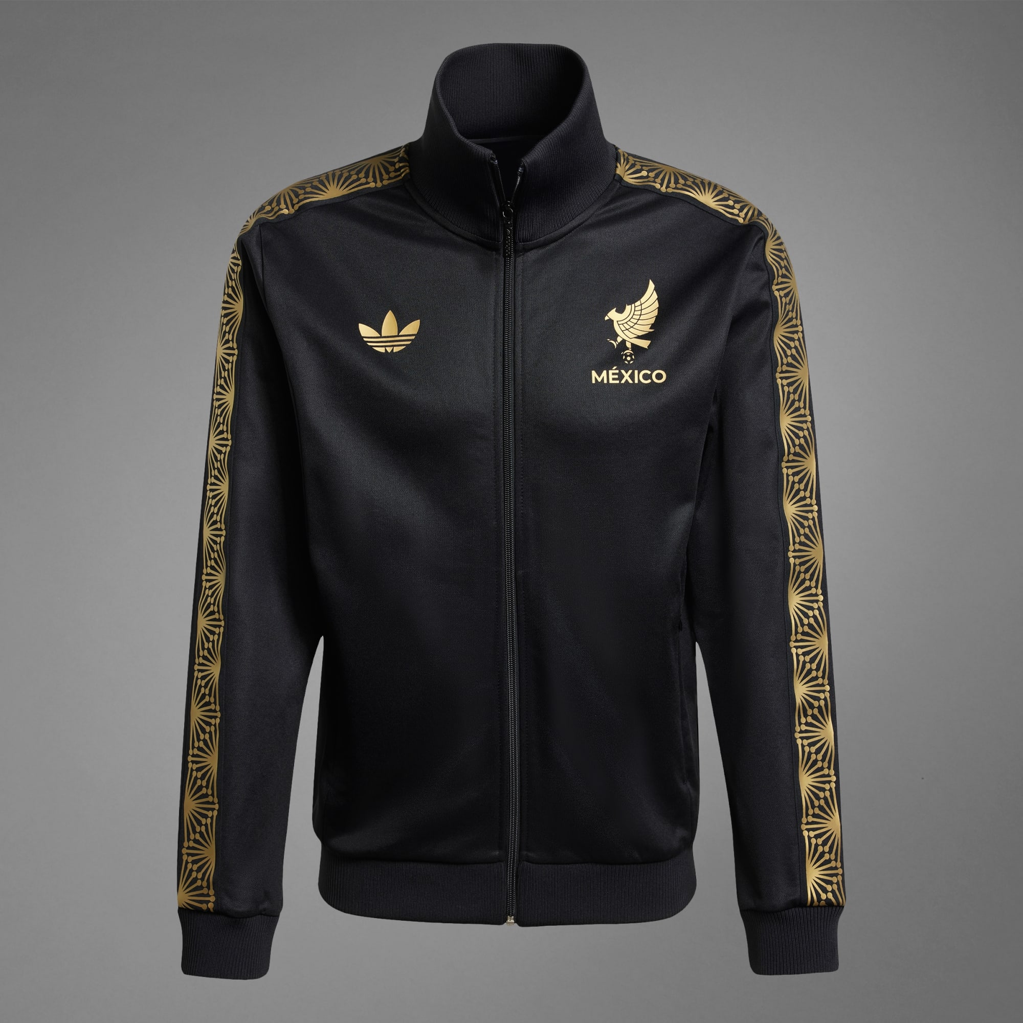Esta chamarra de fútbol luce el escudo de la selección, el icónico trébol de adidas y detalles decorativos con un elegante acabado dorado. Forma parte de una colección exclusiva de México diseñada por adidas que también incluye una llamativa equipación oficial. Presenta un corte entallado, un cierre de cremallera y un cuello alto acanalado que le confieren un estilo atemporal.
