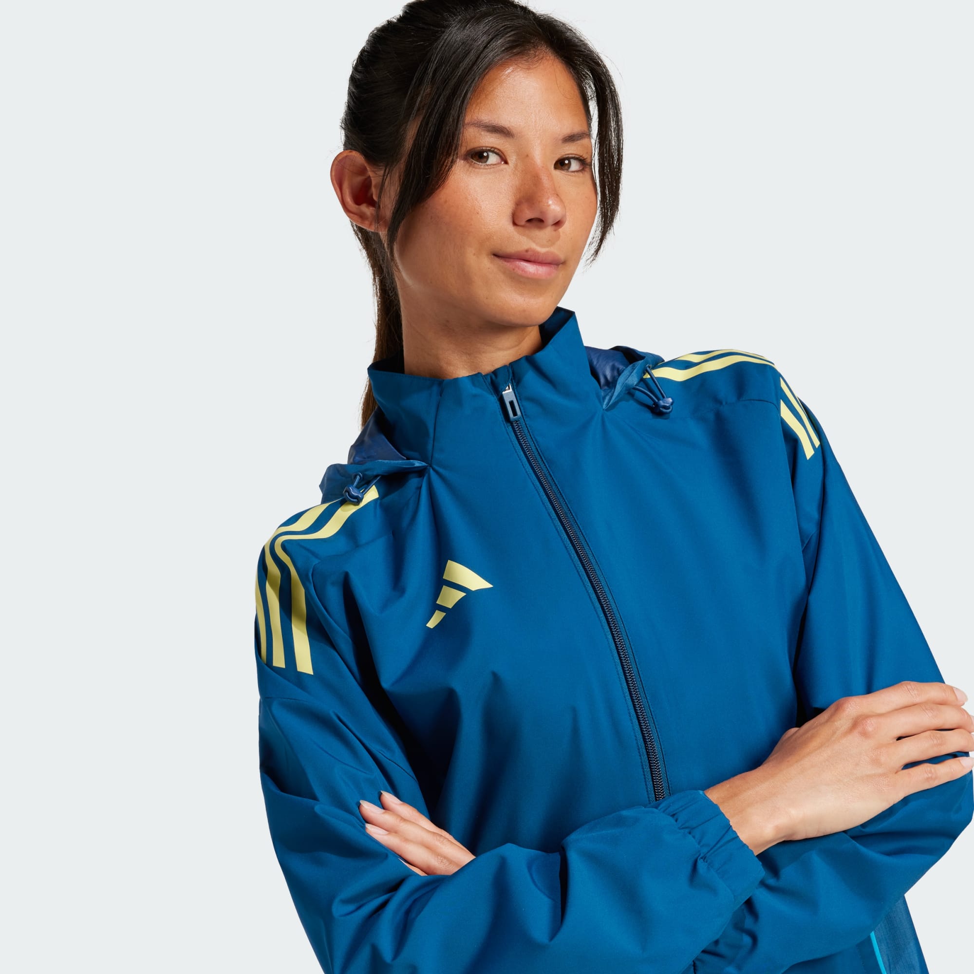 Prepárate para todo lo que la Madre Naturaleza te ponga por delante con esta chamarra Tiro 25 Competition de adidas. Su diseño en tejido plano suave te acompaña en cada entrenamiento sin importar las condiciones climáticas. El gorro te protege bajo la lluvia fina pero también se puede doblar y guardar cuando prefieras una silueta más estilizada. Este producto está hecho con al menos un 70 % de materiales reciclados. Utilizando materiales reciclados disminuimos los residuos, nuestra dependencia de los recursos finitos y la huella que generan los productos que fabricamos.
