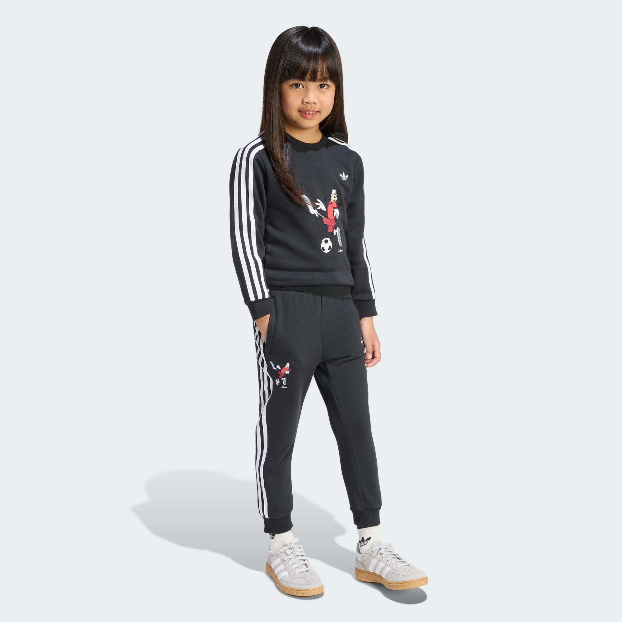 Combinando el espíritu vibrante del fútbol y la magia de sus personajes favoritos, el conjunto adidas Disney con cuello redondo está diseñado para que los jóvenes aficionados puedan expresar de forma divertida su amor por el deporte. Tanto si animan a su equipo como si disfrutan jugando con sus amigos, este conjunto está pensado para que puedan expresar su energía con comodidad y estilo. El atrevido gráfico aporta un toque mágico y deportivo a su armario, mientras que el corte clásico, tanto de la parte superior como de la inferior, proporciona una silueta relajada pero estilizada para moverse sin distracciones. El diseño de cuello redondo añade un toque de estilo clásico, mientras que el tejido de felpa francesa proporciona un tacto suave contra la piel, ideal para llevar durante todo el día. Con dos piezas, el conjunto se puede combinar con sus prendas favoritas para crear un estilo versátil. Deja que expresen su energía juguetona con este elegante conjunto. Combínalo con sus tenis adidas favoritos y haz de este conjunto una prenda imprescindible para añadir diversión a su armario diario.