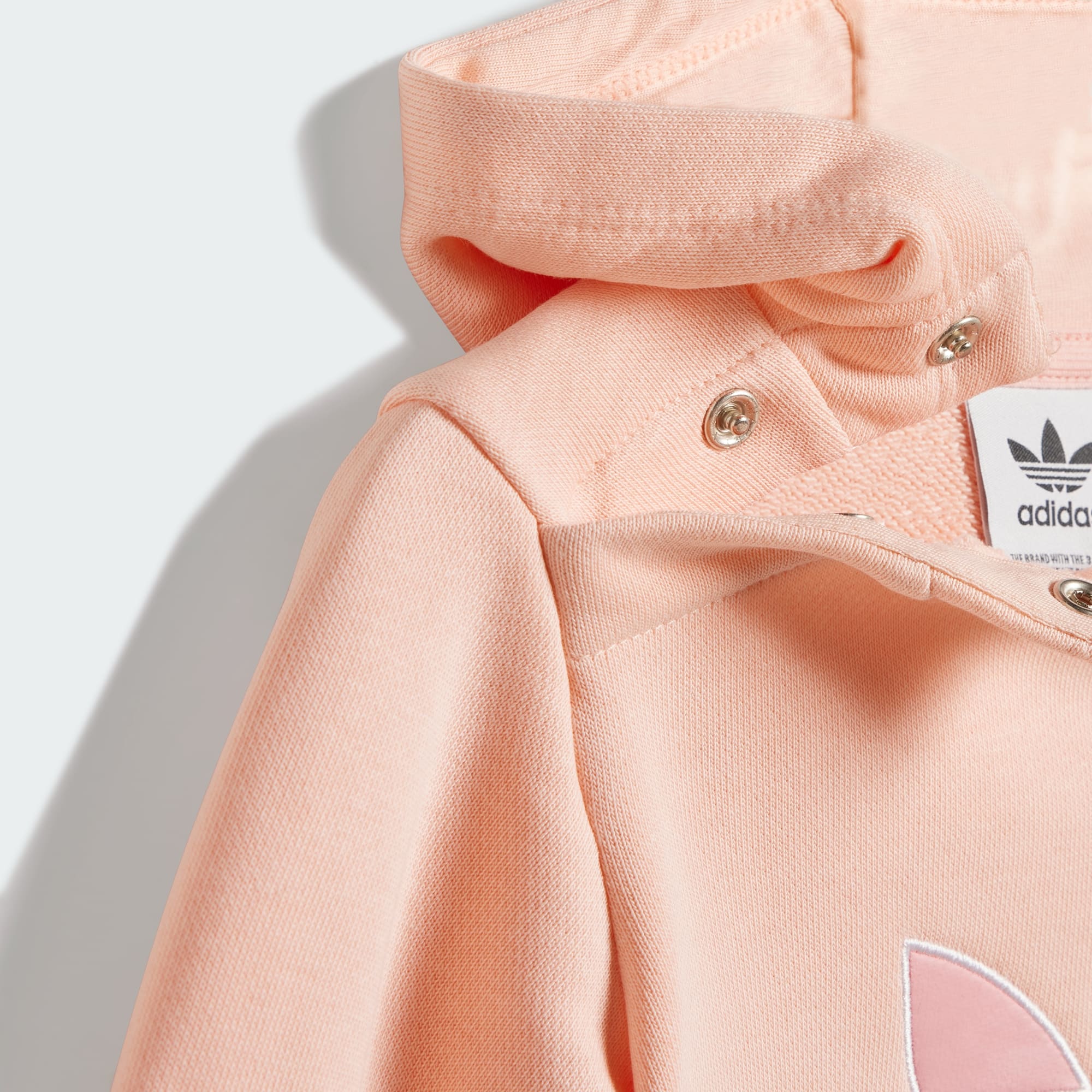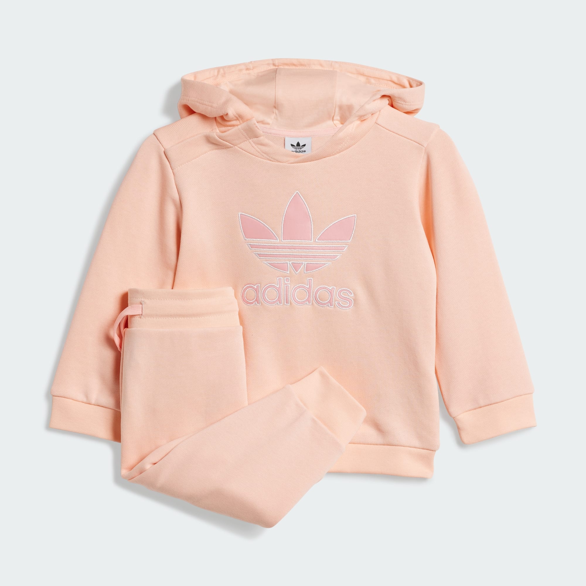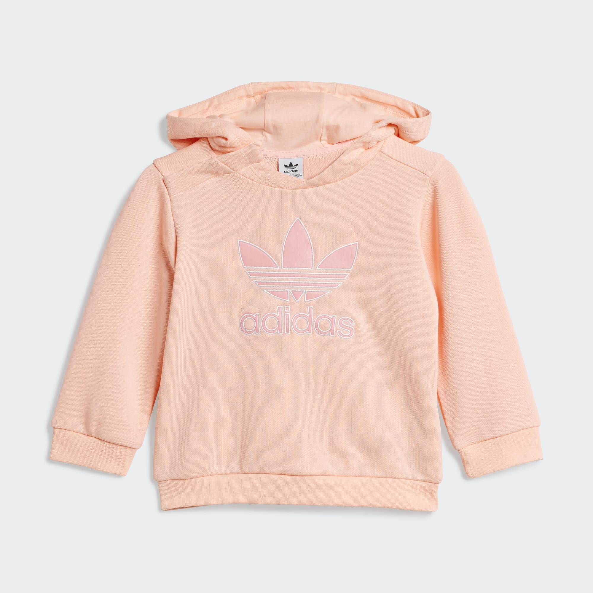 Añade un toque nostálgico de inspiración retro a la colección de ropa de bebé con este conjunto de sudadera con gorro y pants de adidas Originals. Confeccionado con un suave material de tela french terry, este diseño incluye una sudadera con gorro de ajuste holgado que hace juego con unos pants de cintura elástica. Los grandes logos del Trifolio se destacan en el pecho y la pierna, lo que refuerza la conexión de tu bebé con un clásico auténtico de adidas.