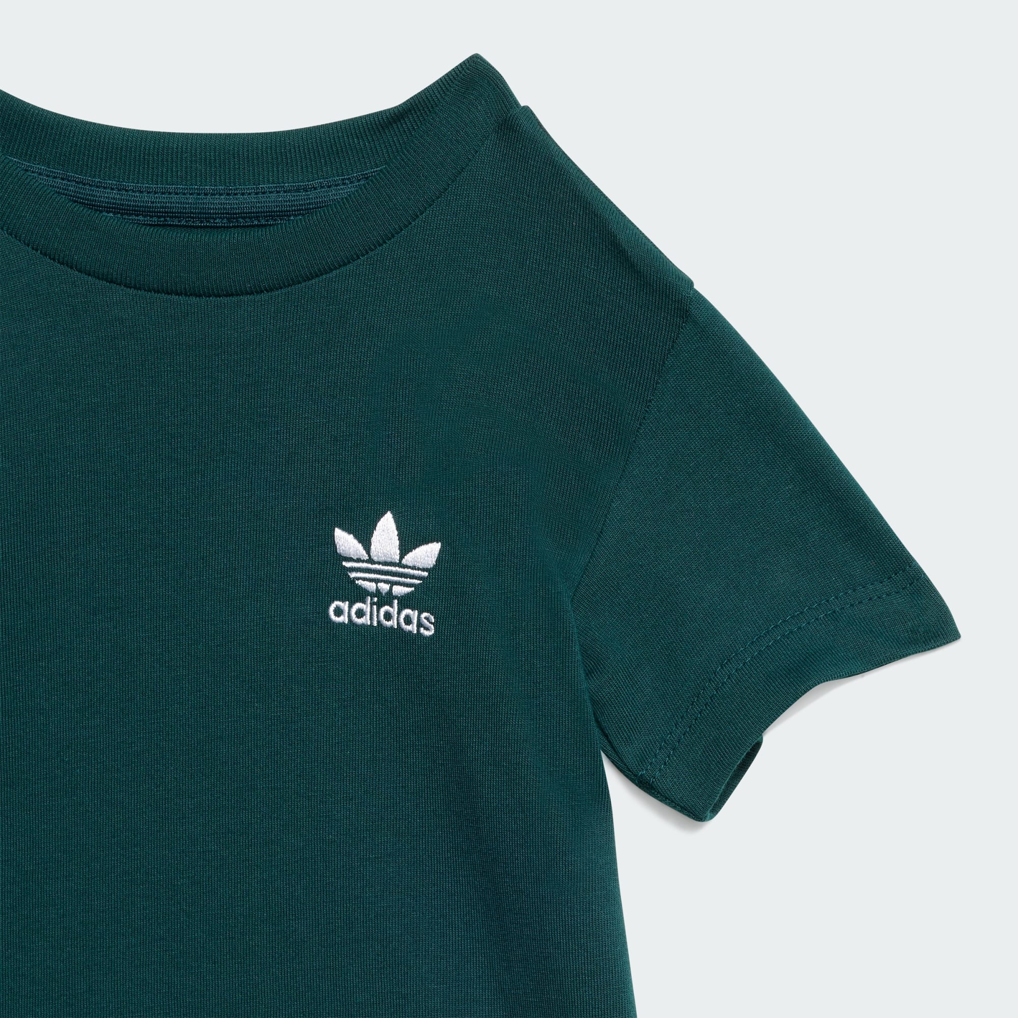 Cuando la aventura llama, la comodidad es lo primero. Este conjunto de shorts y camiseta para bebés está confeccionado en suave tejido de punto jersey de algodón y tiene un cierre de botones a presión en la camiseta para ponérselo y quitárselo fácilmente. El logo del Trifolio bordado en el pecho y las perneras, además de los detalles acanalados por toda la prenda, aportan a tu pequeño un estilo deportivo clásico.
