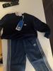 Este conjunto adidas para bebé es perfecto para los peques en movimiento. Suave y cómoda, esta sudadera de cuello redondo incorpora pants de tejido denim con cintura elástica y las emblemáticas 3 Franjas. Los puños acanalados mantienen la calidez.