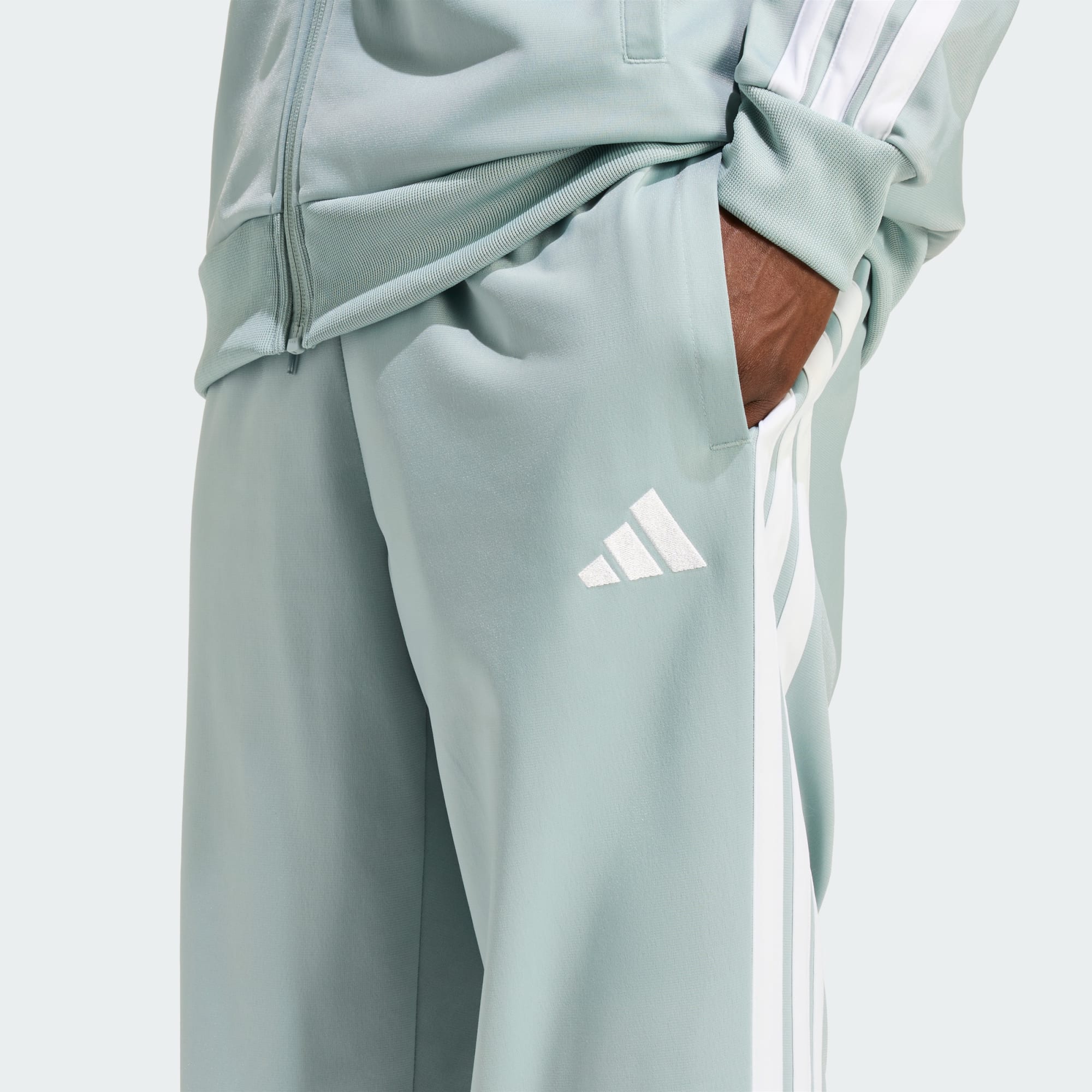 Este conjunto deportivo adidas es para pasar el fin de semana con estilo. El tejido de tricot es suave y cómodo para hacer mandados o reunirse con los amigos. El cordón regulable en la cintura elástica permite personalizar el ajuste. Este producto está fabricado con materiales 100 % reciclados. Al utilizar materiales reciclados, disminuimos los residuos, nuestra dependencia de los recursos finitos y la huella que generan los productos que fabricamos.