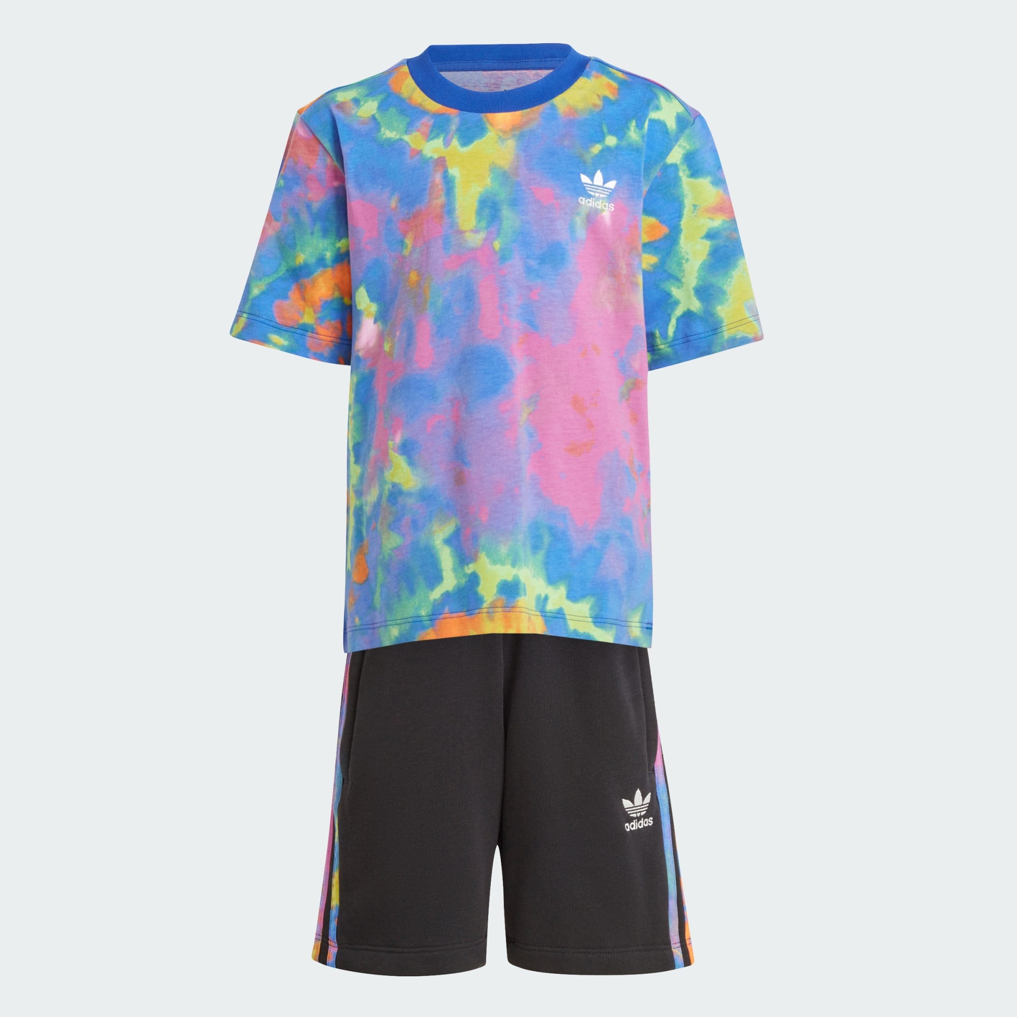 Este conjunto de shorts y playera de adidas para niños lleva el estampado tie dye a nuevas alturas. Las espirales coloridas y psicodélicas hacen una divertida declaración mientras que las 3 Franjas le ponen el toque deportivo al look. Hecho de un suave tejido de algodón que brinda comodidad, este conjunto está listo para las aventuras en el parque, días ocupados en la escuela o reuniones con amigos. El algodón de este producto ha sido obtenido a través de Better Cotton. El algodón Better Cotton se obtiene a través de un modelo de cadena de custodia llamado balance de masas. Esto significa que Better Cotton no es físicamente rastreable a nivel de productos finales. Descubre más aquí: https://bettercotton.org/who-we-are/our-logo/