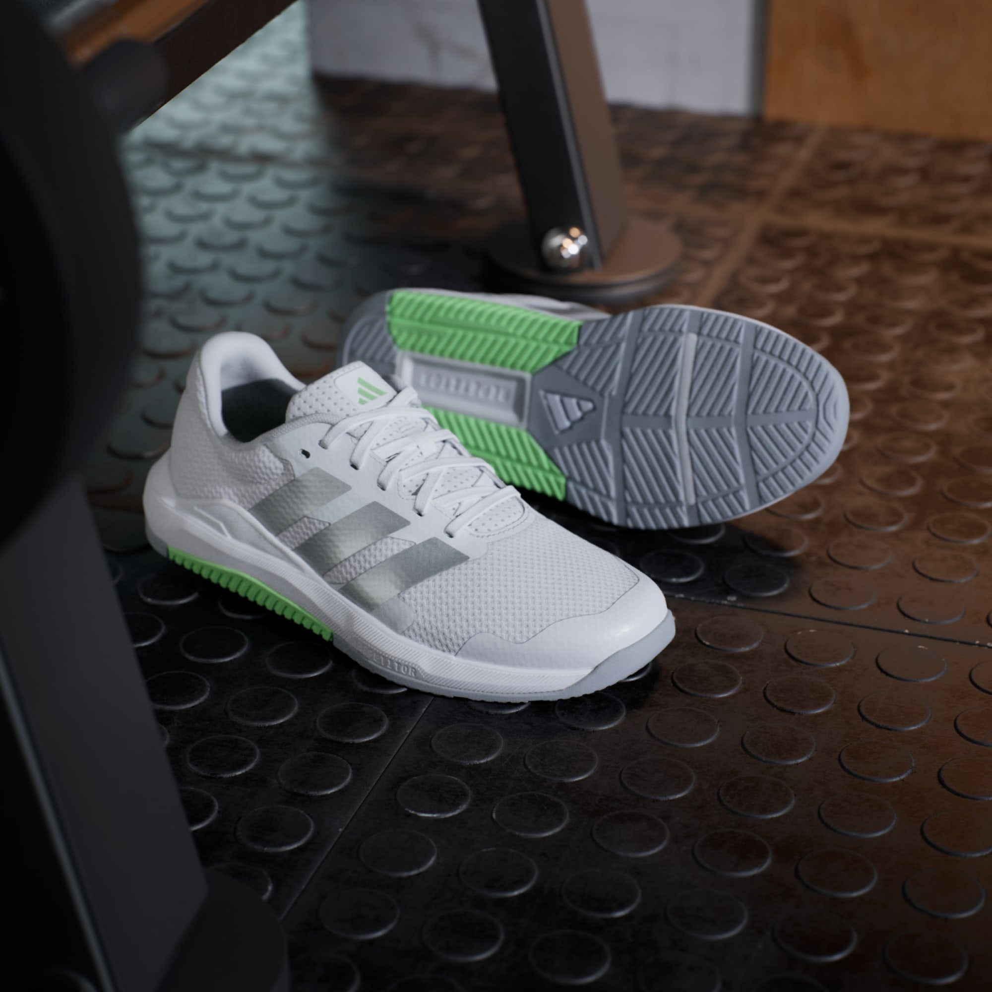 Supera tus límites en el gimnasio. Este calzado para training adidas está hecho para entrenamientos de fuerza. El antepié ancho, la confección baja y la suela con estampado de taches multidireccionales te mantienen estable y en control durante movimientos explosivos y levantamientos pesados. El exterior de malla transpirable está reforzado con revestimientos 3D para un mayor soporte.