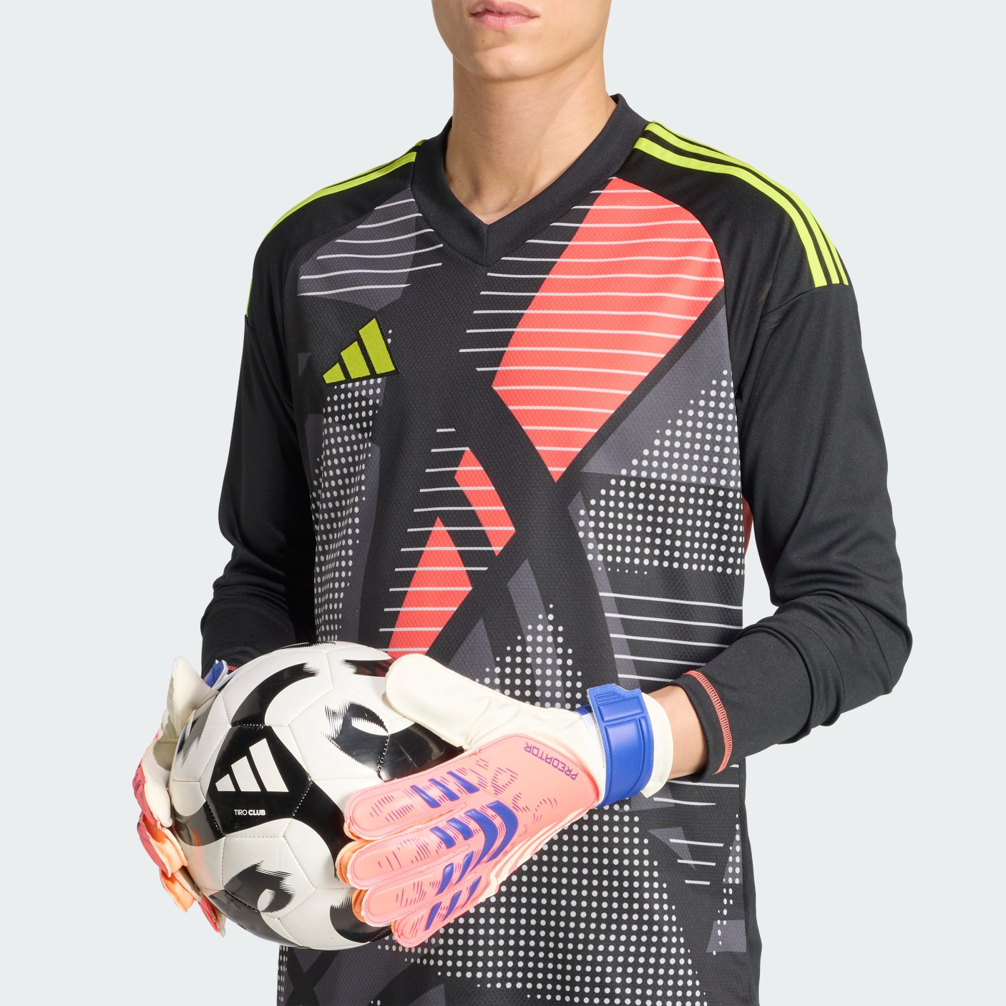 Detén todos los tiros con estos guantes de arquero de entrenamiento Predator. Perfectos para trabajar tus habilidades entre los palos, ofrecen una palma de látex de agarre suave, acolchada, con un dorso flexible y un corte espacioso para los dedos. Su muñequera de media vuelta te permite encontrar el ajuste perfecto para jugar sin distracciones.