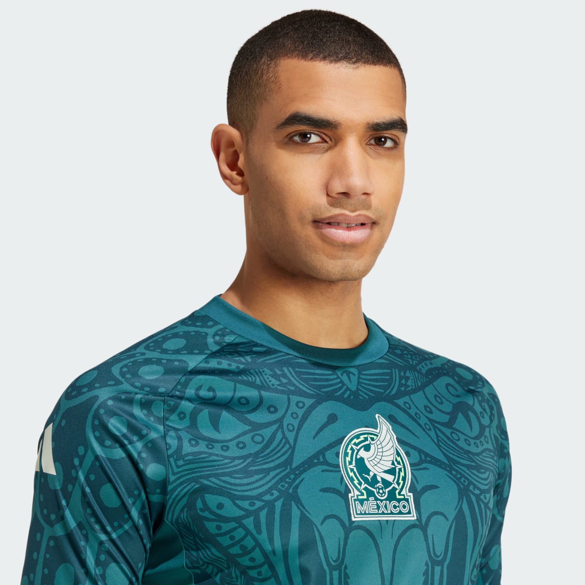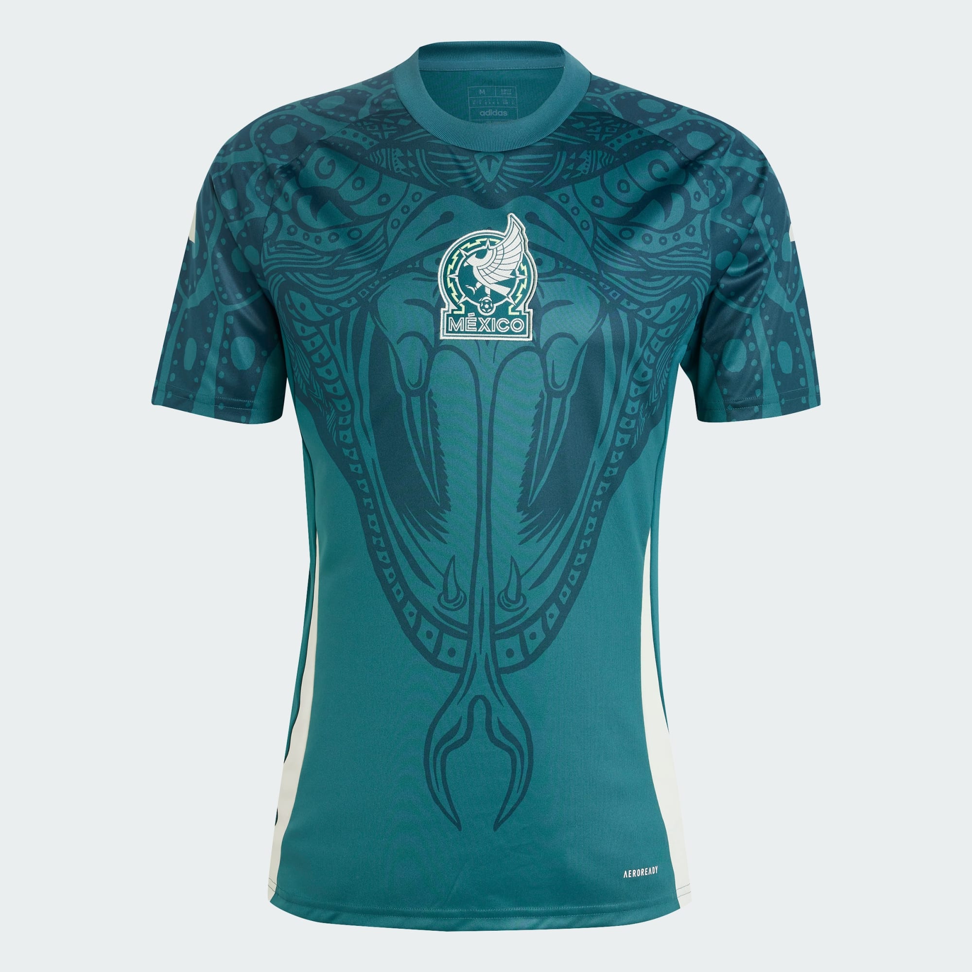 Los estampados inspirados en el uniforme para partidos le dan un toque único a este jersey con la Selección Nacional de México. Con plumas de águila en los hombros y una cabeza de serpiente en el pecho, es el jersey que usan los jugadores mientras se preparan para la acción. La tecnología AEROREADY controla la humedad para mantenerte cómodo en los calentamientos intensos, y el escudo centrado demuestra tu lealtad futbolística. Este producto está hecho con materiales 100 % reciclados. Utilizando materiales reciclados disminuimos los residuos, nuestra dependencia de los recursos finitos y la huella que generan los productos que fabricamos.