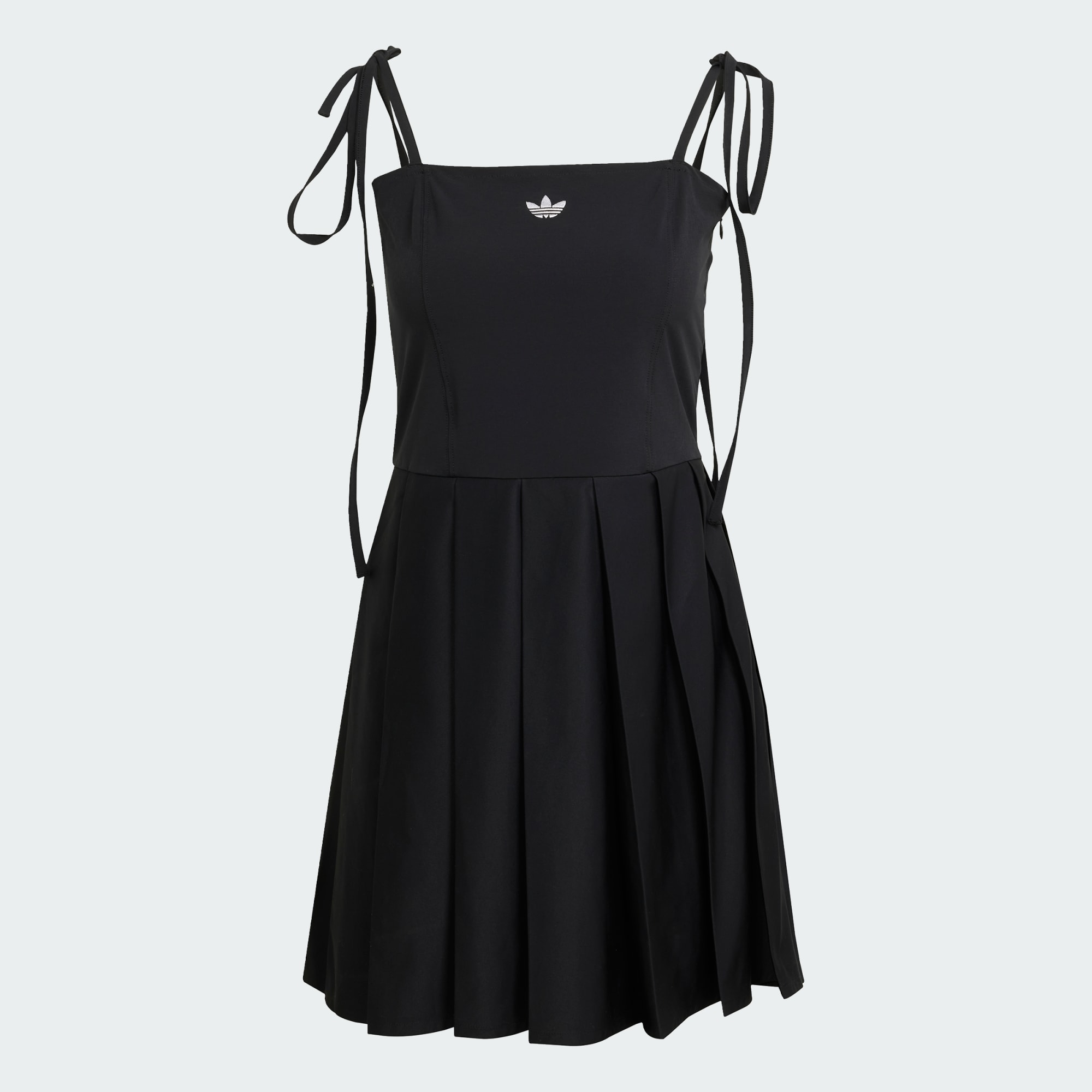 Este vestido adidas toma inspiración de los años 2000 y 2010 y los remezcla para la actualidad. La silueta promueve la confianza y la expresión personal, con una parte superior entallada que se ensancha en la falda plisada. Las cintas completan el estilo, que cuelgan largas como un lazo.