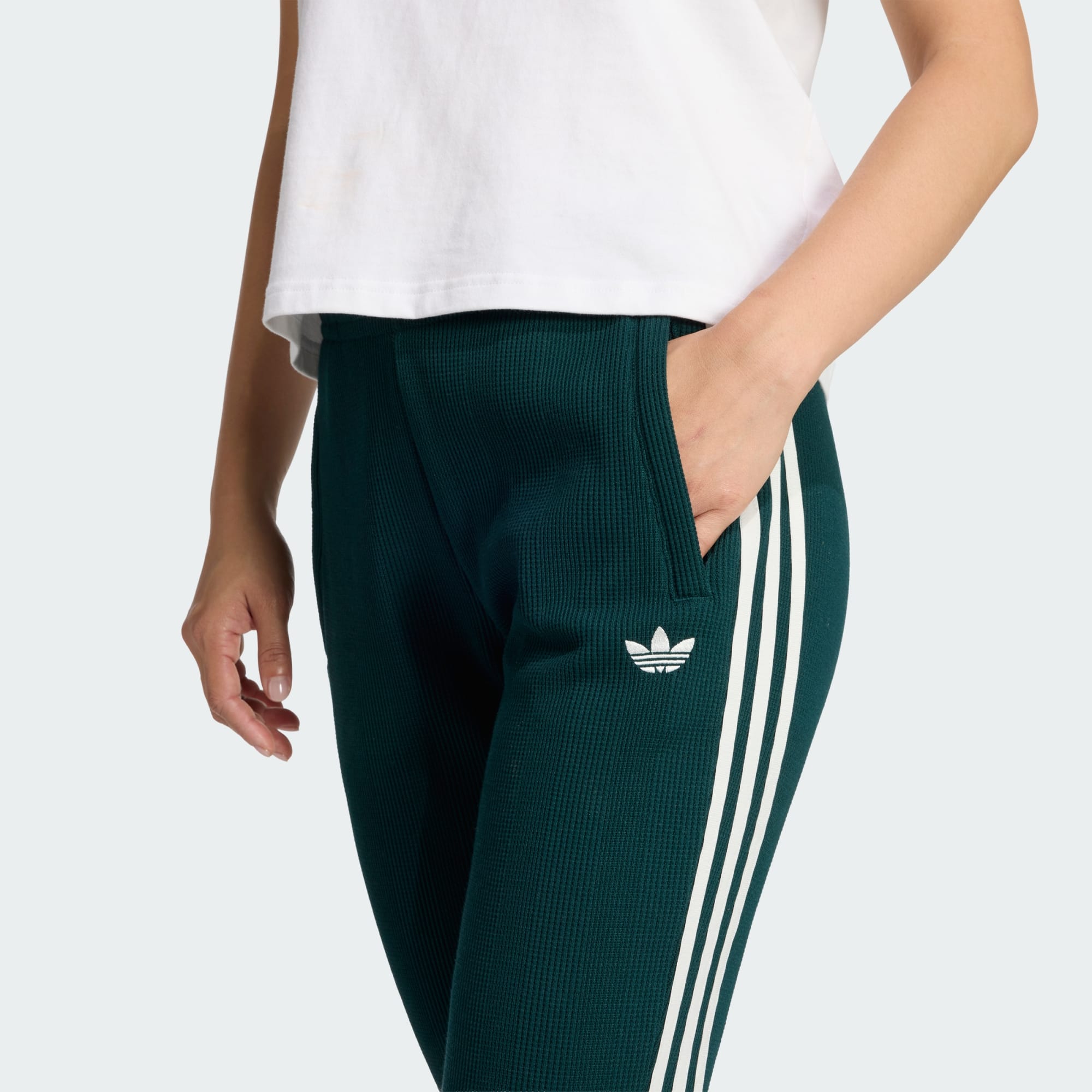 Los PANTS adidas ORIGINALS WAFFLE son tu prenda imprescindible para una comodidad informal con un toque de estilo. Confeccionados con tejido de punto waffle de primera calidad, estos pants ofrecen un tacto cómodo. El bordado del trifolio y las icónicas 3 franjas añaden un toque clásico de adidas, mientras que el acampanado en el bajo da un toque moderno a tu look diario. Diseñados con un corte ajustado, estos pants ofrecen una silueta favorecedora. La cintura elástica con cordón de ajuste proporciona un ajuste seguro. Y con los bolsillos con cierre, podrás guardar fácilmente tus esenciales. Tanto si te relajas en casa como si sales, estos pants son lo suficientemente versátiles como para complementar tu look.