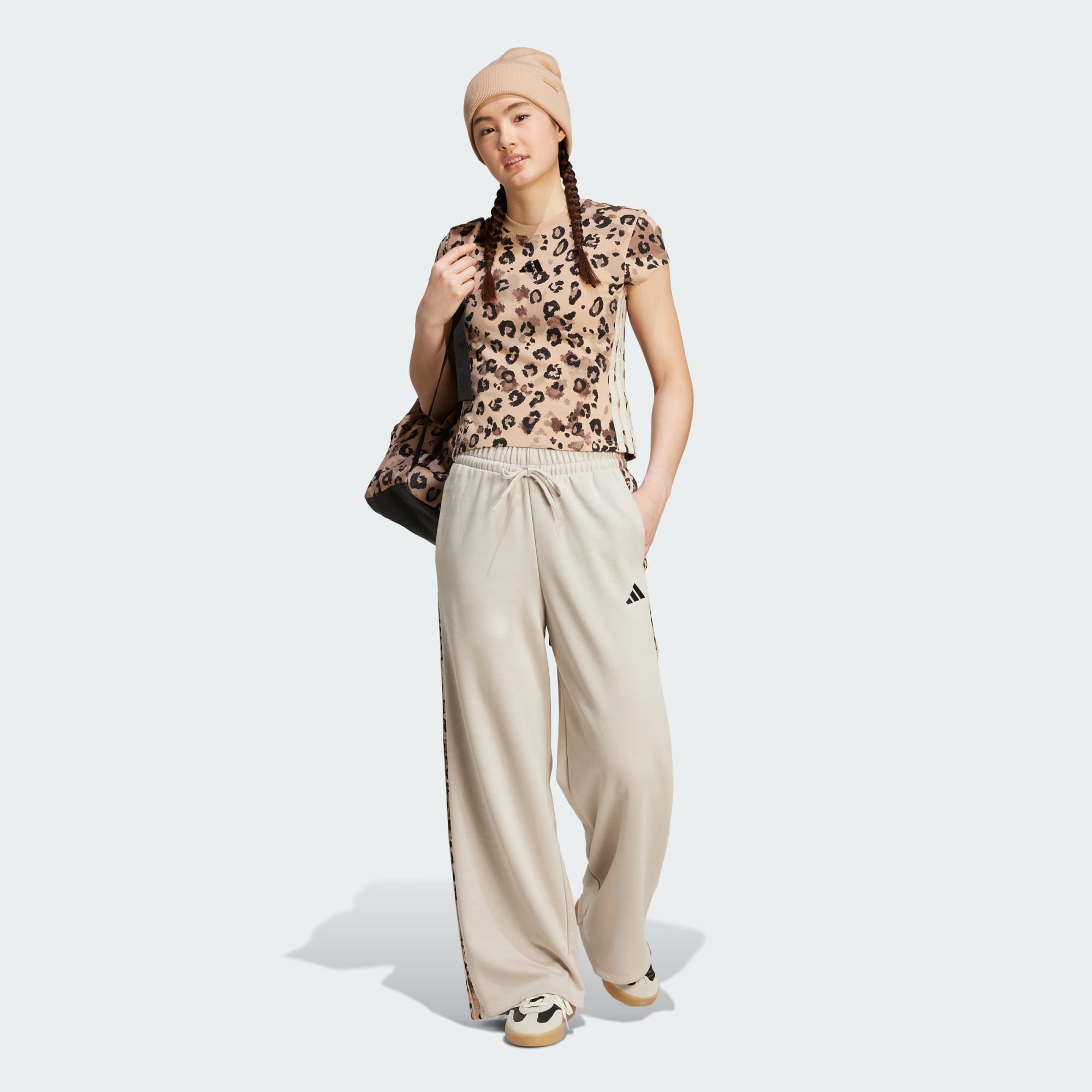 Pants de 3 franjas con dobladillo abierto y estampado animal print