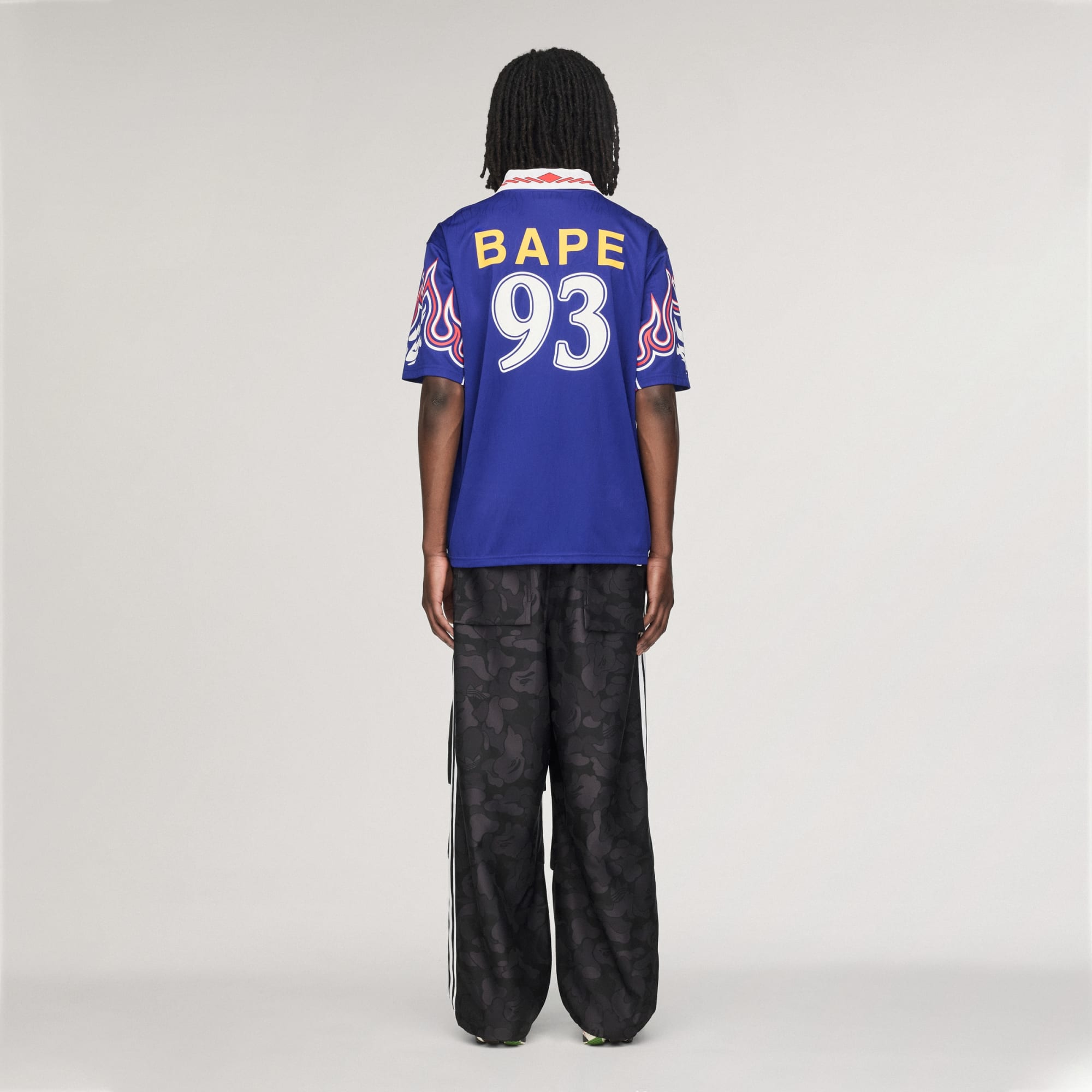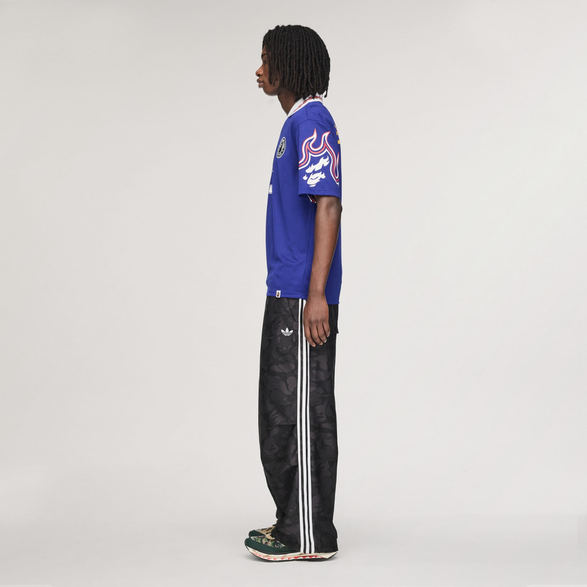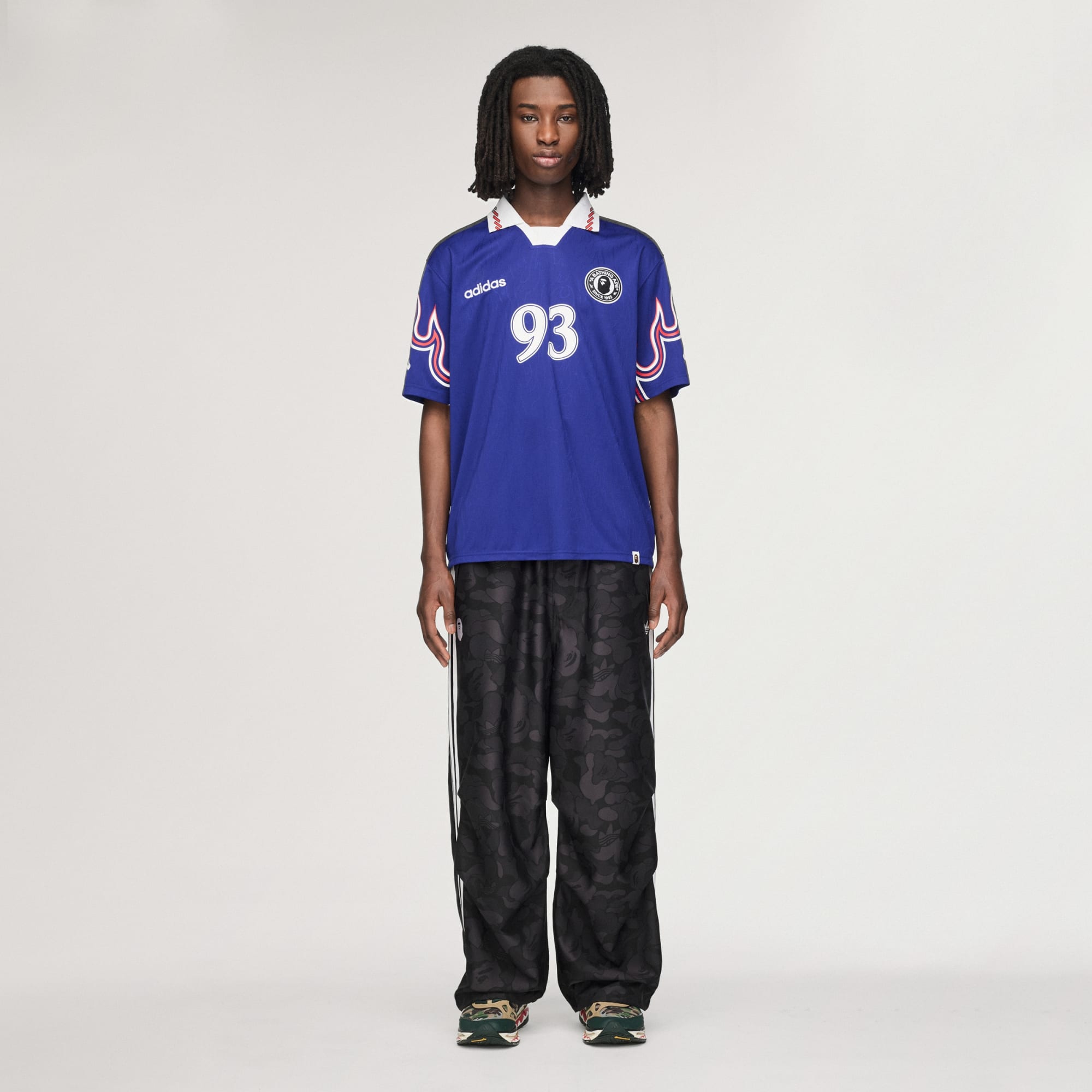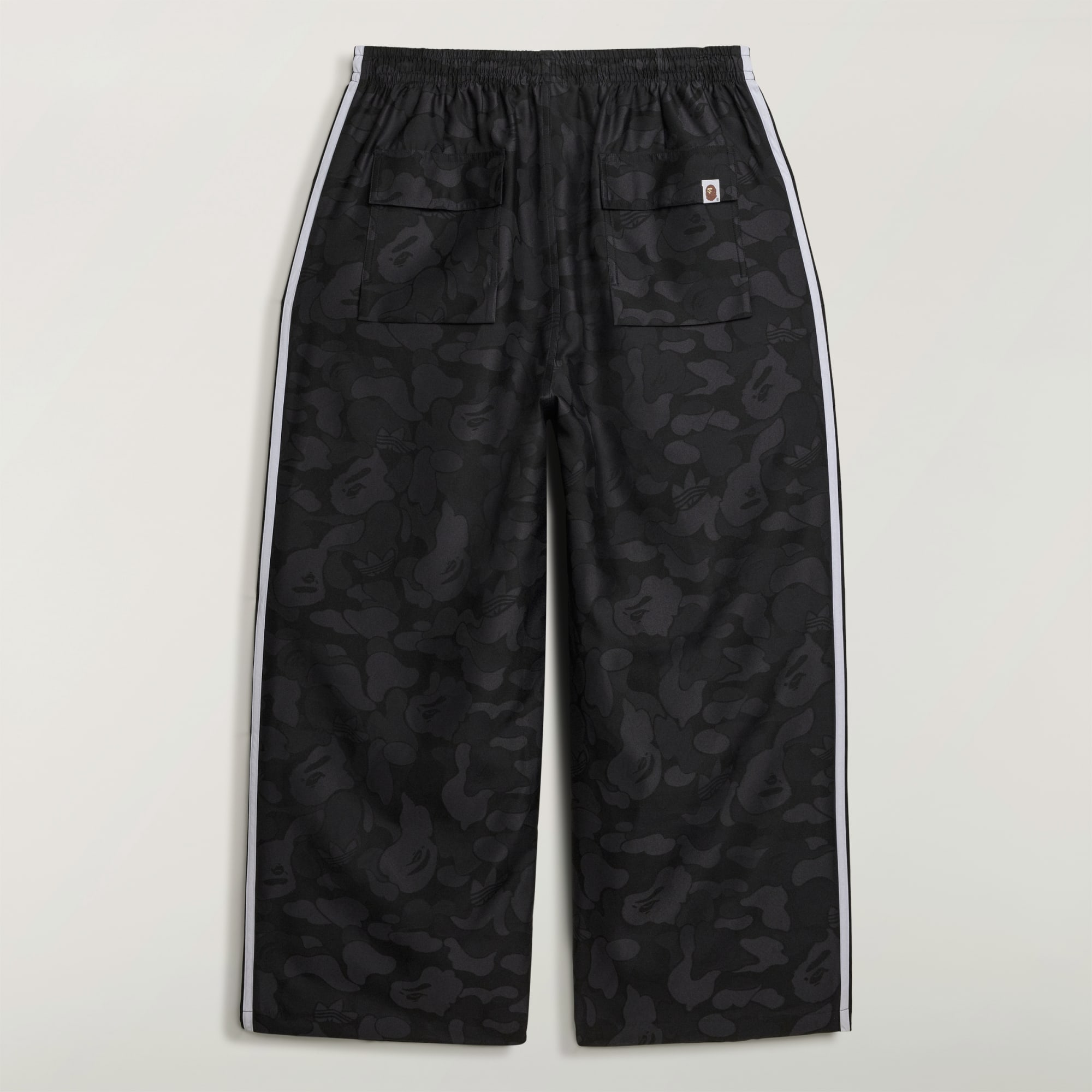 La actitud de los clásicos de adidas Originals se une al estilo icónico de BAPE® en los pants Jacquard BAPE®.