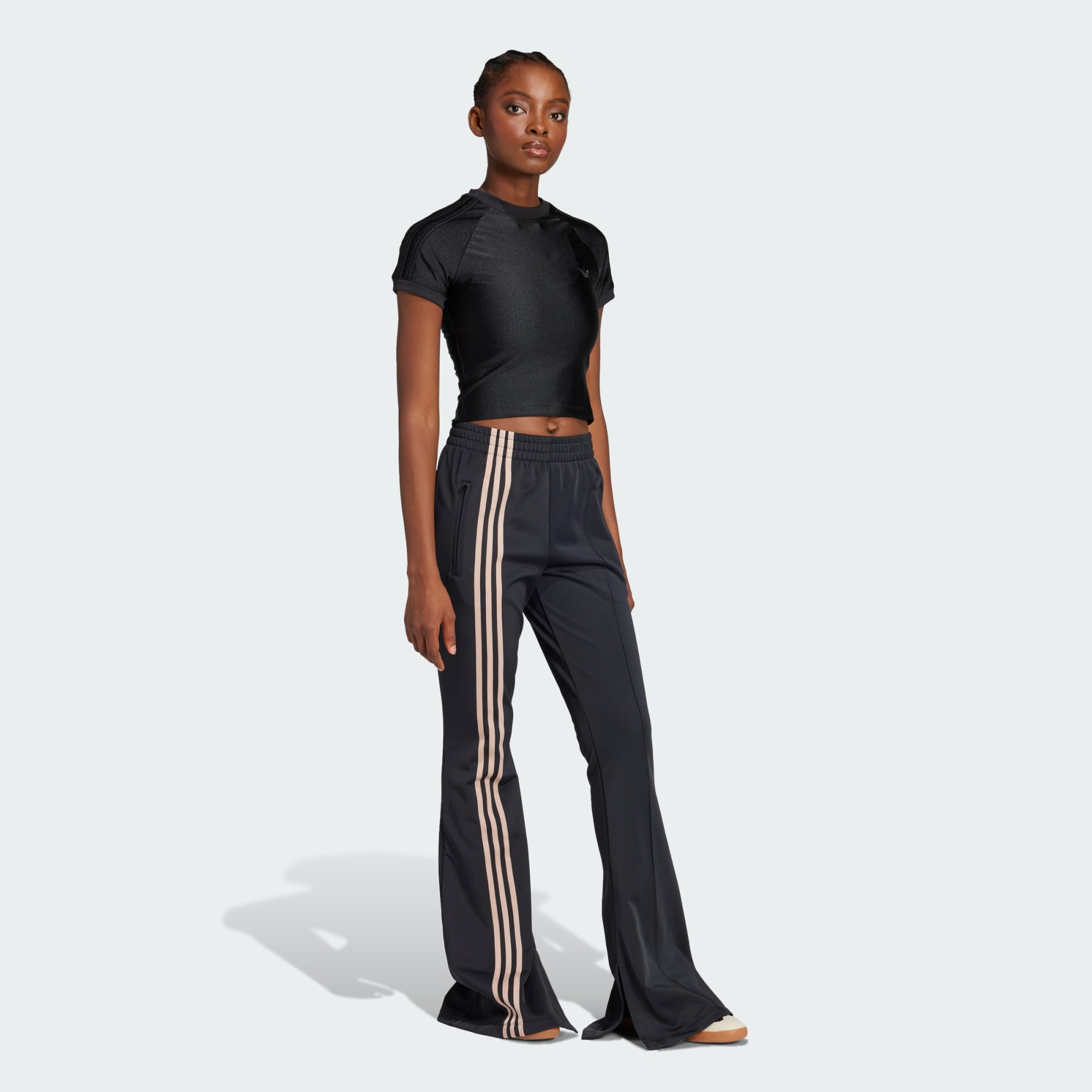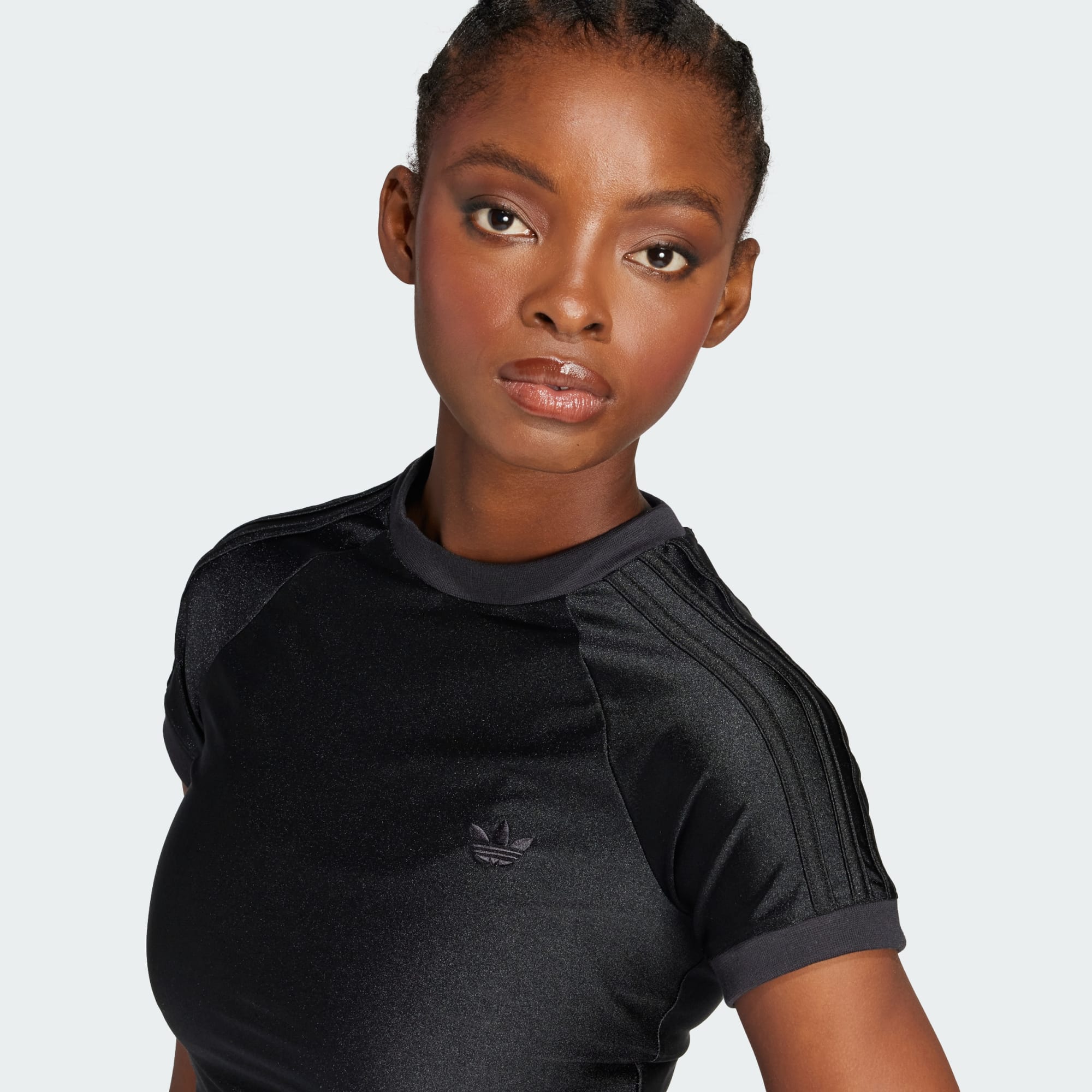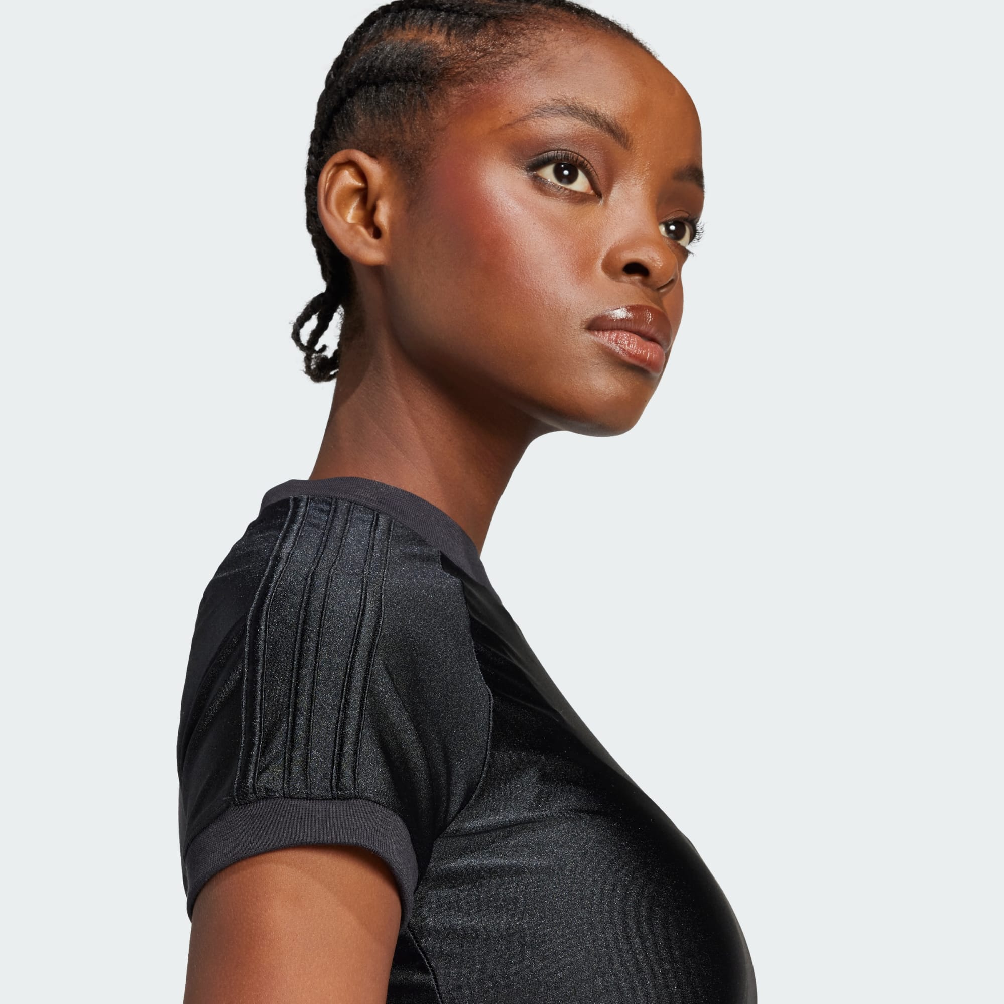 Una playera adidas brillante y entallada con una línea de corte de archivo.