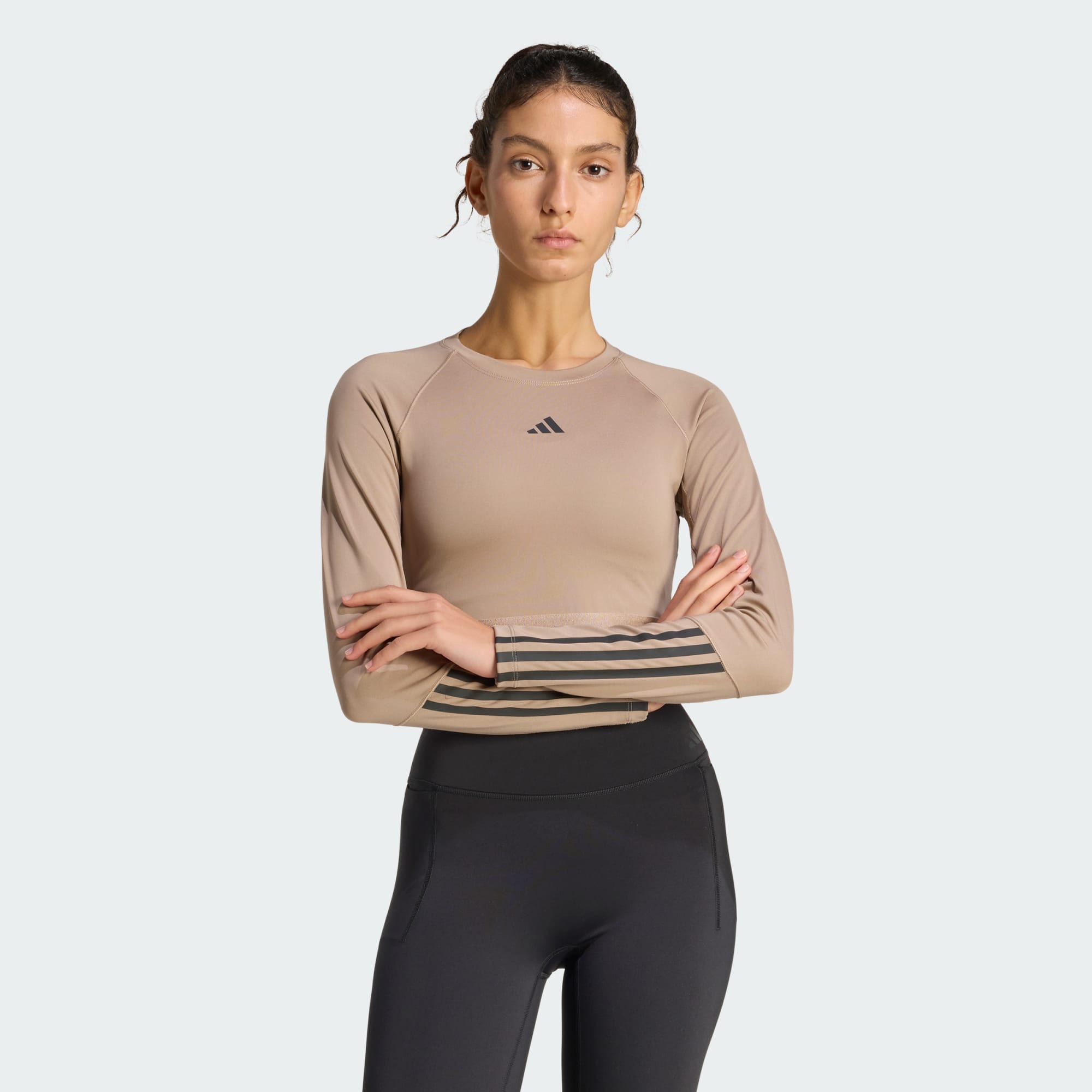 Deportiva, pero con estilo. Esa es la filosofía de esta playera adidas por encima de la cintura. Relájate durante los intervalos de alta intensidad gracias a la tecnología AEROREADY que absorbe la humedad y a los paneles de malla que añaden transpirabilidad. Las mangas largas que muestran las 3 Franjas le dan un toque atlético, mientras que el corte por encima de la cintura combina perfectamente con tus mallas o shorts favoritos. Diseñados para un entrenamiento híbrido y un rendimiento versátil.