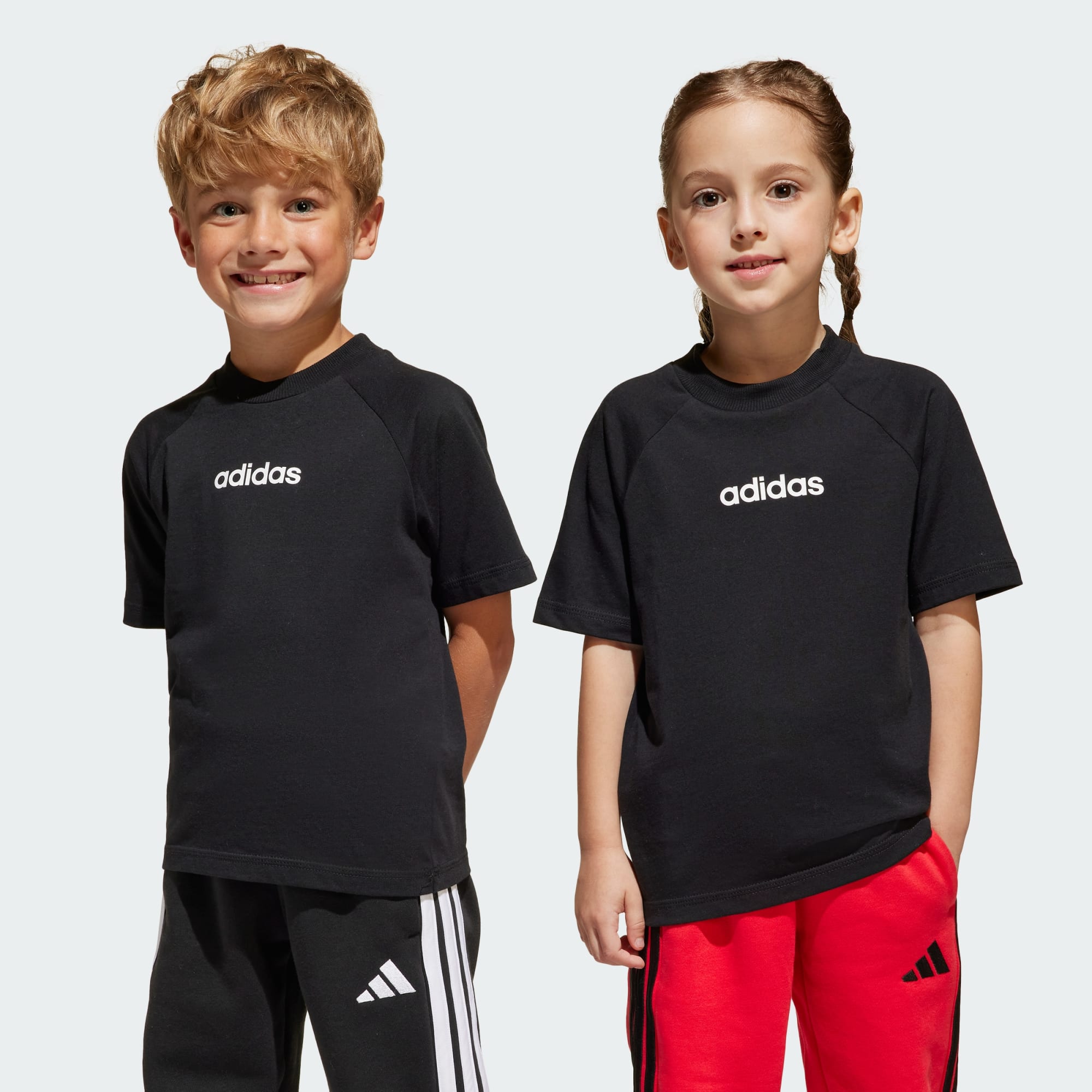 A los niños les encanta jugar, y esta playera adidas está lista para la acción. Su tejido suave los mantiene cómodos todo el día, sin importar si están en el parque o simplemente pasando el rato en casa. Un llamativo logo de adidas en el frente destaca su estilo deportivo.
