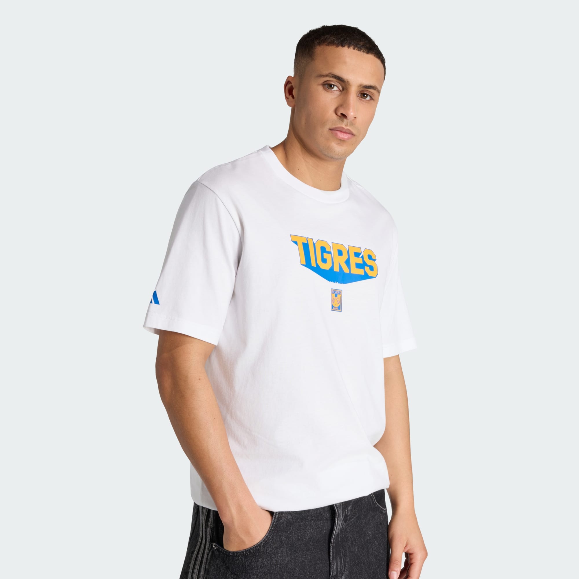 Cuando se trata de la cultura del fútbol, la Playera Graphic Seasonal Tigres es tu mejor opción para expresar tu pasión. Inspirada en la propiedad intelectual exclusiva de nuestros socios, esta playera transforma unos gráficos divertidos y geniales en una pieza llamativa para los aficionados. Confeccionado en algodón de tejido de punto jersey, ofrece un tacto suave y un uso cómodo, ideal para salidas informales o para la emoción del día de partido. Diseñada con un corte clásico, esta playera te ayuda a mantenerte cómodo mientras muestras tu espíritu de equipo. El escote redondo le da un toque clásico, que lo hace versátil para llevarlo a capas o solo. Tanto si estás animando desde las gradas como disfrutando de un día fuera, esta playera encarna la esencia de la cultura del fútbol. Fácil de poner y quitar, esta playera proporciona comodidad para tu estilo de vida activo. Abraza el espíritu del deporte con esta playera, donde el estilo se une a la pasión. Deja que adidas forme parte de tu viaje futbolístico, celebrando el deporte con cada prenda.