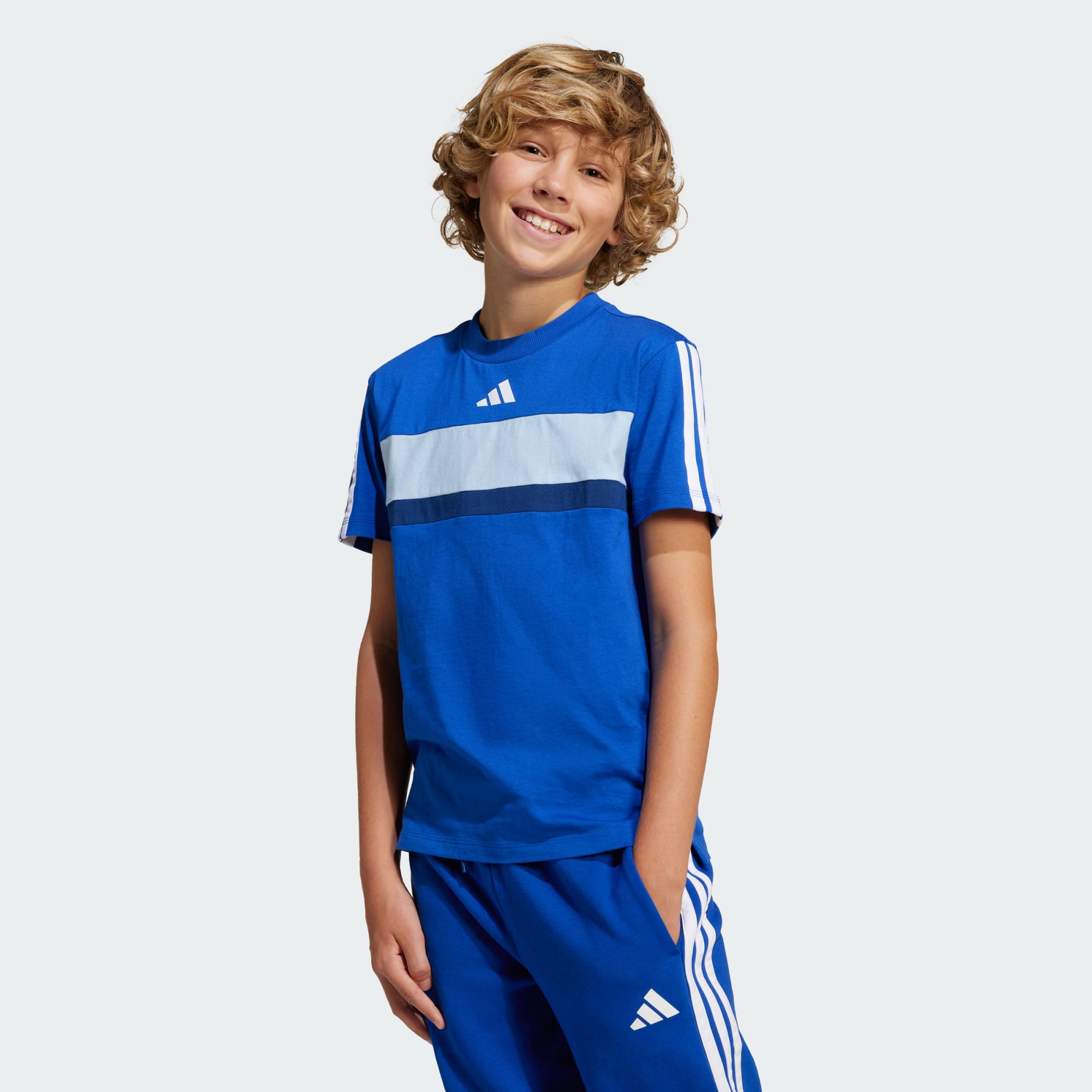 Al redefinir el estilo contemporáneo, esta playera adidas para niños te permite destacar a donde sea que vayas. Con las llamativas 3 Franjas en las mangas y un pequeño logo de 3 Barras en el pecho, podrás representar a la marca que lleva décadas haciendo que los deportistas se sientan cómodos. La estructura de tejido de punto jersey se combina con aberturas laterales para lograr un estilo informal.