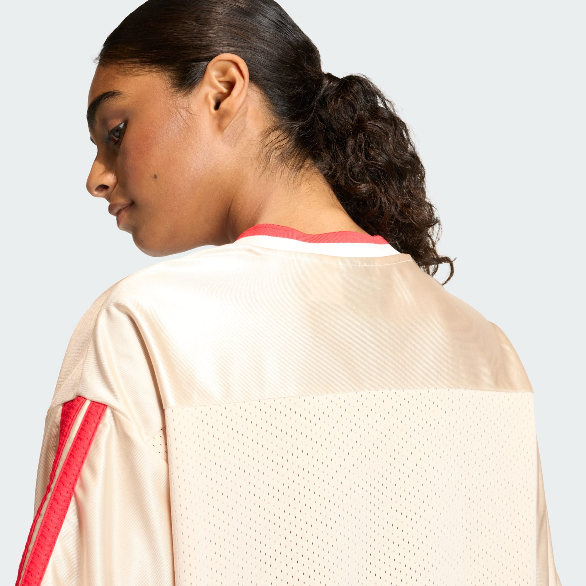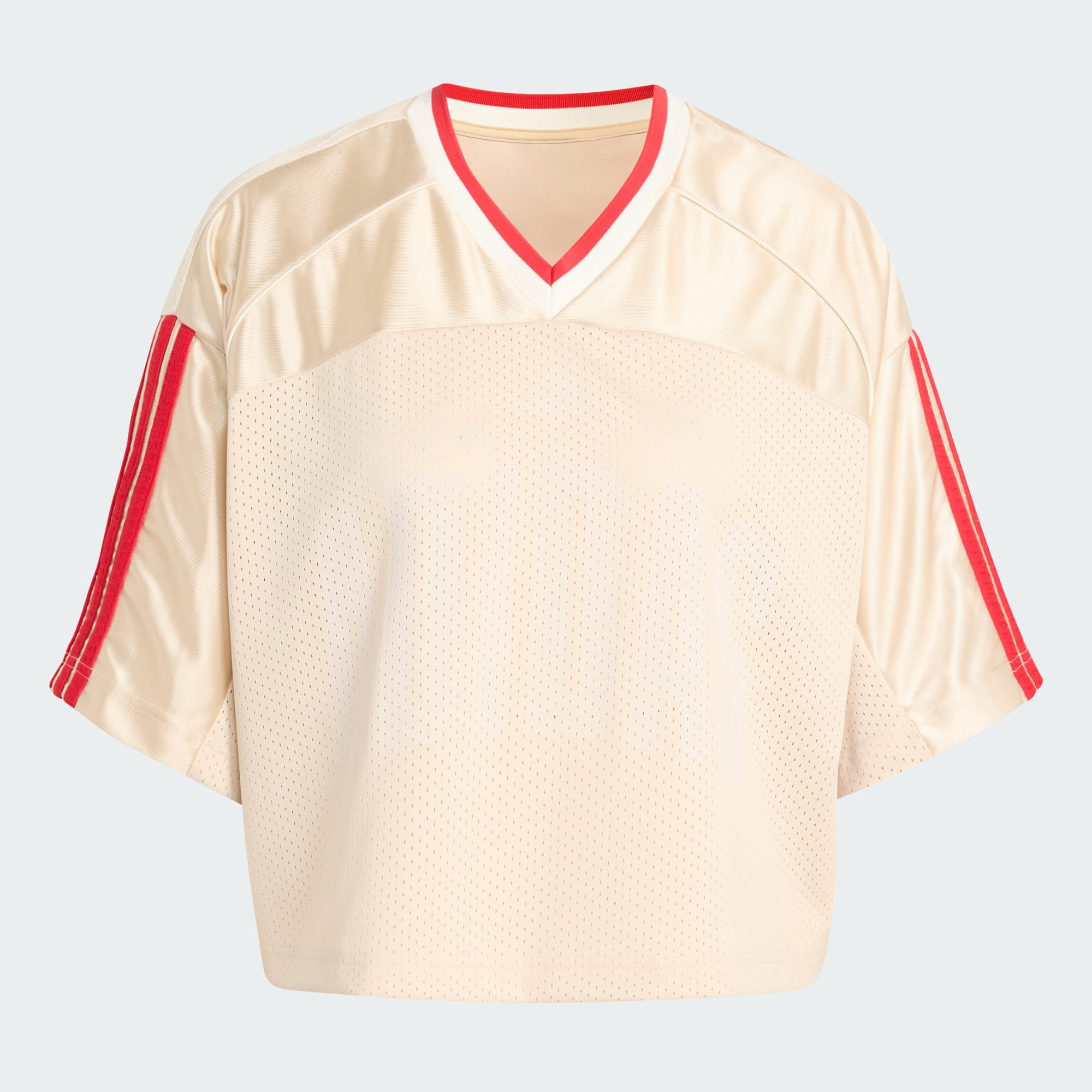 La PLAYERA STADIUM DE MALLA es tu prenda favorita para un estilo relajado y deportivo. Inspirada en la vibrante escena deportiva estadounidense, esta playera celebra la unidad y la pasión de los aficionados al fútbol, al básquet y al béisbol. Con su corte holgado y su diseño ligeramente recortado, ofrece una silueta relajada que funciona bien para salidas informales. El cuello en V y el cuello acanalado añaden un toque de estilo clásico, mientras que el panel de tejido tricot en el hombro realza el atractivo deportivo. Fabricado con malla elástica deportiva, el tejido ofrece transpirabilidad y comodidad, lo que lo convierte en una gran elección para el uso diario. Las icónicas 3 Franjas y el estampado adidas Sportswear en la parte delantera del pecho son toda una declaración de estilo, que demuestra tu amor por la marca. Ya estés animando desde las gradas o pasando el rato con tus amigos, esta playera te permitirá vivir la experiencia de ser aficionado con estilo y comodidad. Con adidas, se trata de algo más que de ropa. Es una forma de vida.
