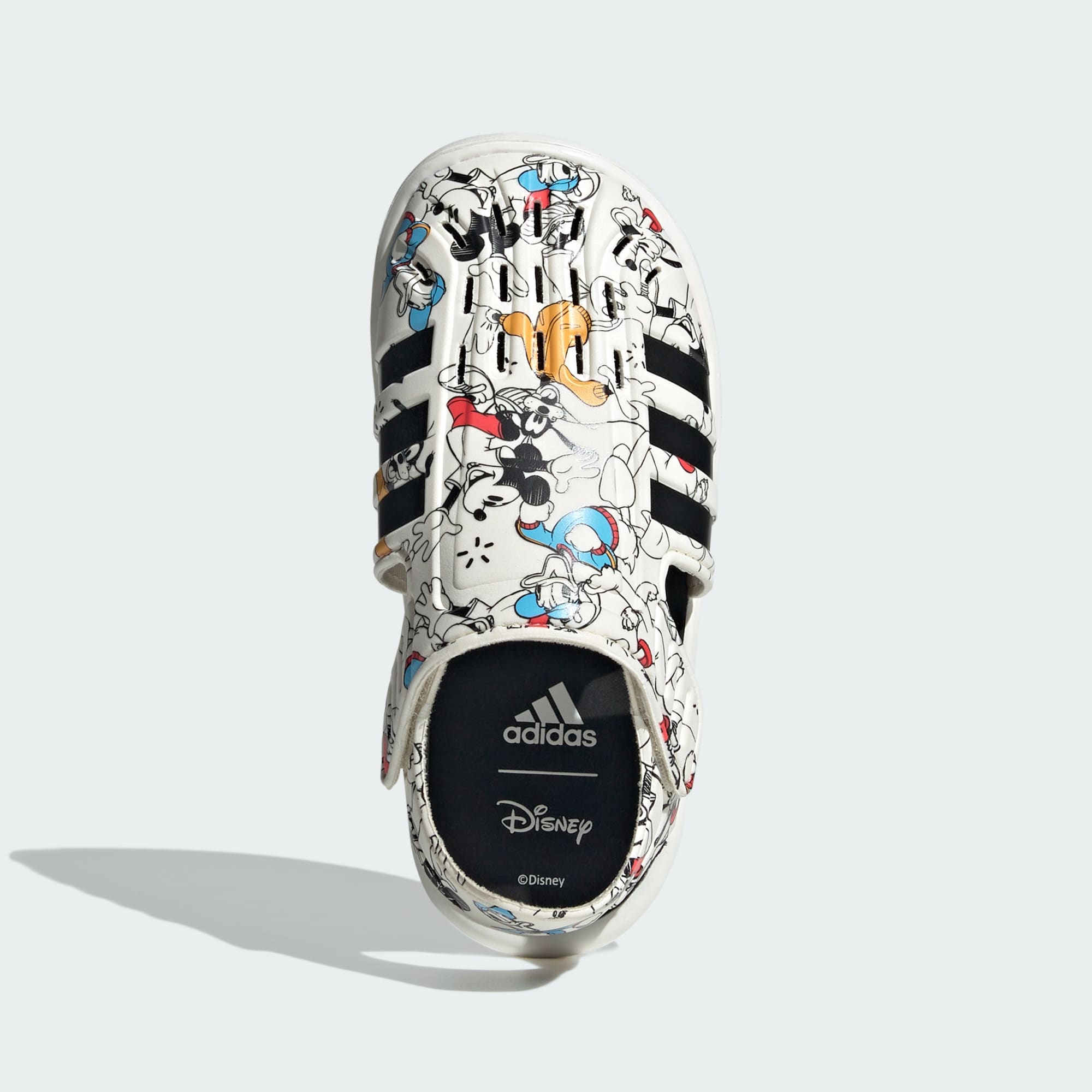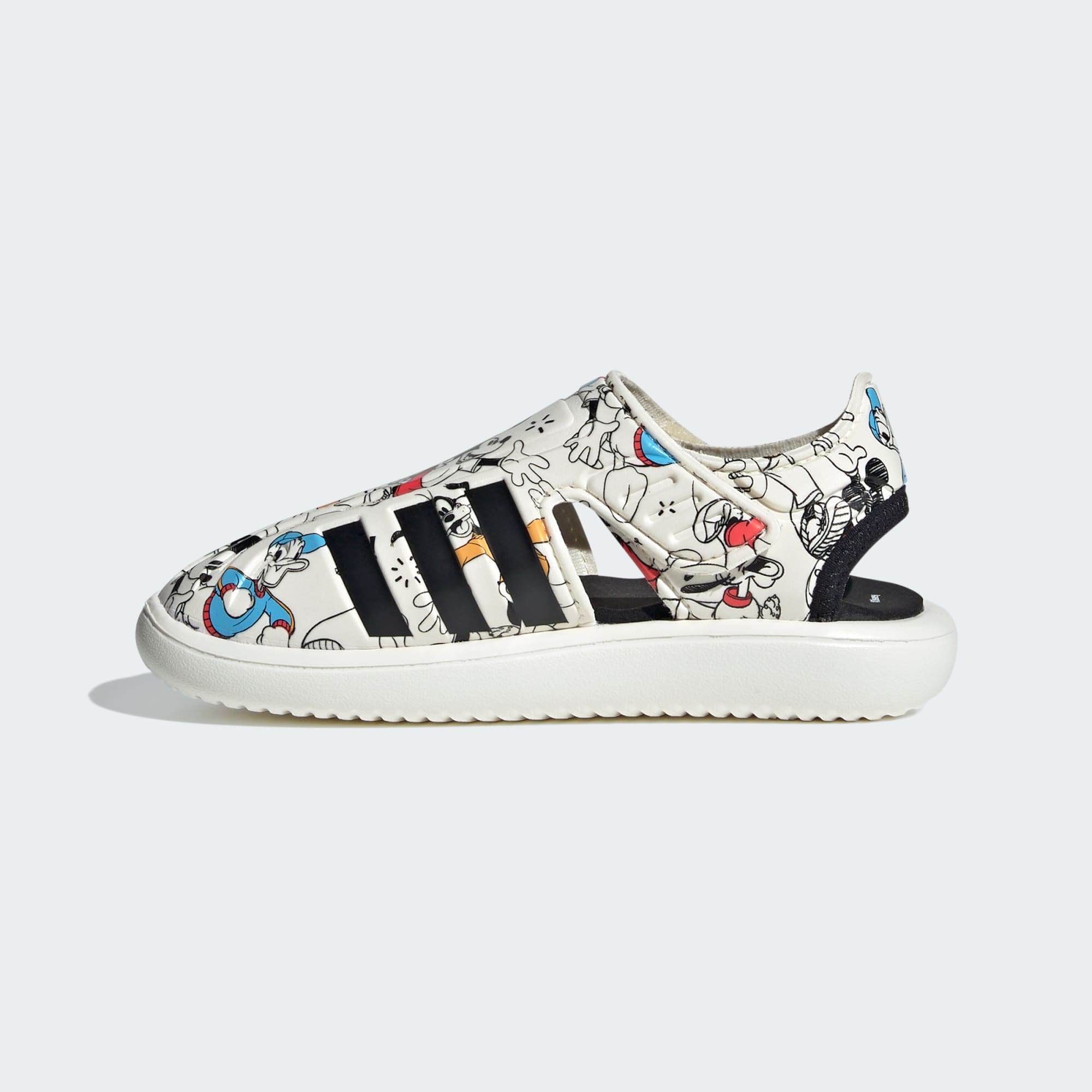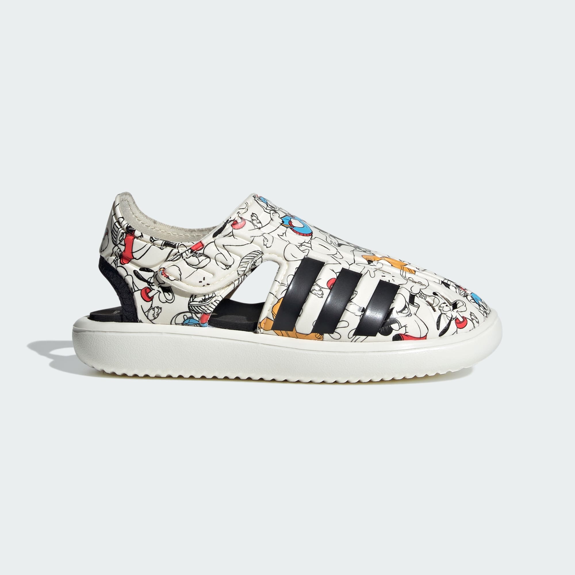 Desde los amaneceres en la playa hasta las salidas a jugar al atardecer, estas sandalias adidas Disney Mickey y Friends para niños son las compañeras perfectas para la aventura de tu pequeño. Pónselas para un día emocionante de diversión en el agua o para un paseo casual a la heladería. La plantilla sintética y la suela mantienen sus pies cómodos, mientras que las tiras ajustables de cierre por contacto garantizan un ajuste seguro mientras navegan terrenos arenosos y superficies resbaladizas. Los estampados divertidos de Mickey y sus amigos en la parte superior transpirable inspiran el juego imaginativo, trayendo la magia de Disney a sus aventuras de verano. Pónselas y salgan a la calle. Encontrarán un mundo de diversión y descubrimiento con estas divertidas sandalias.