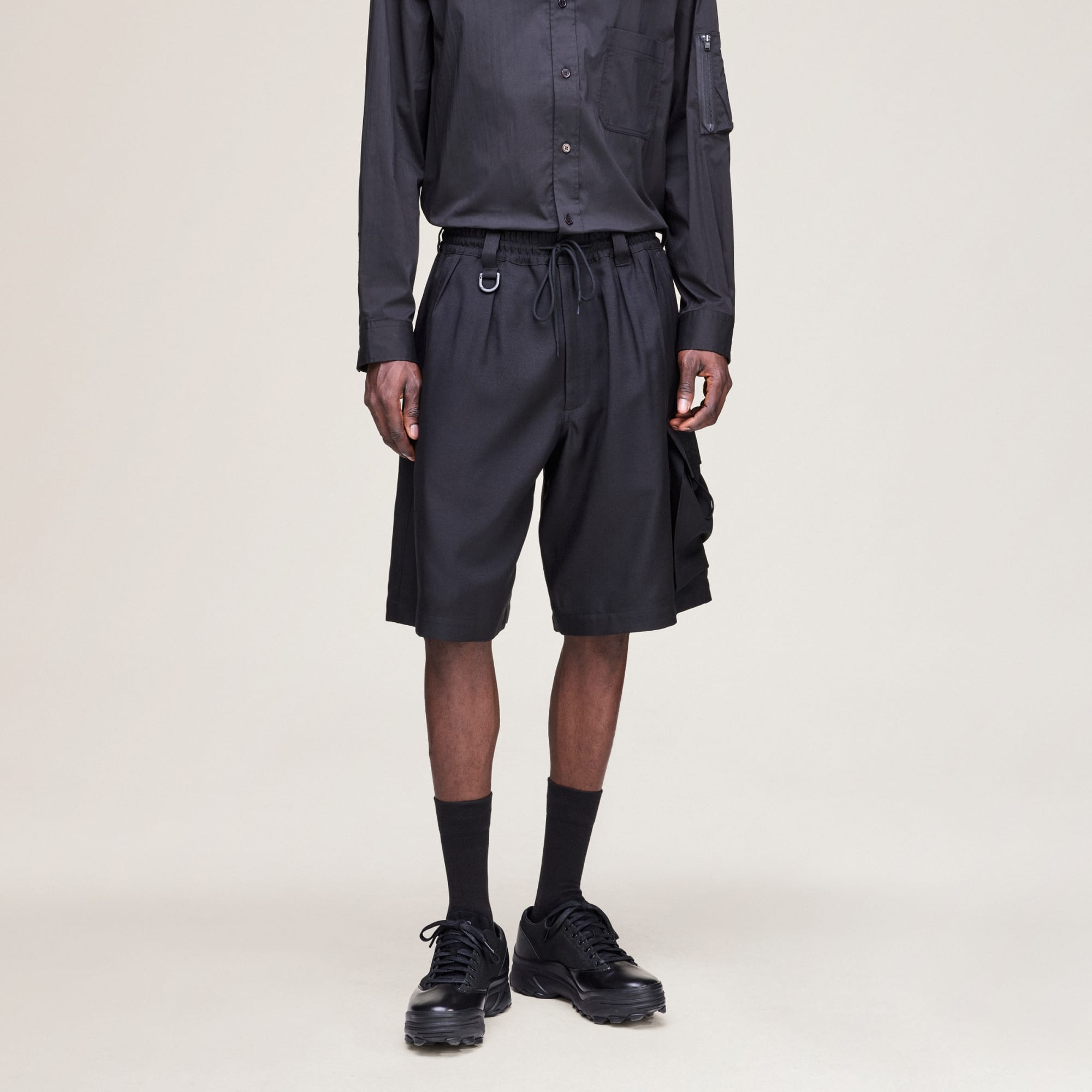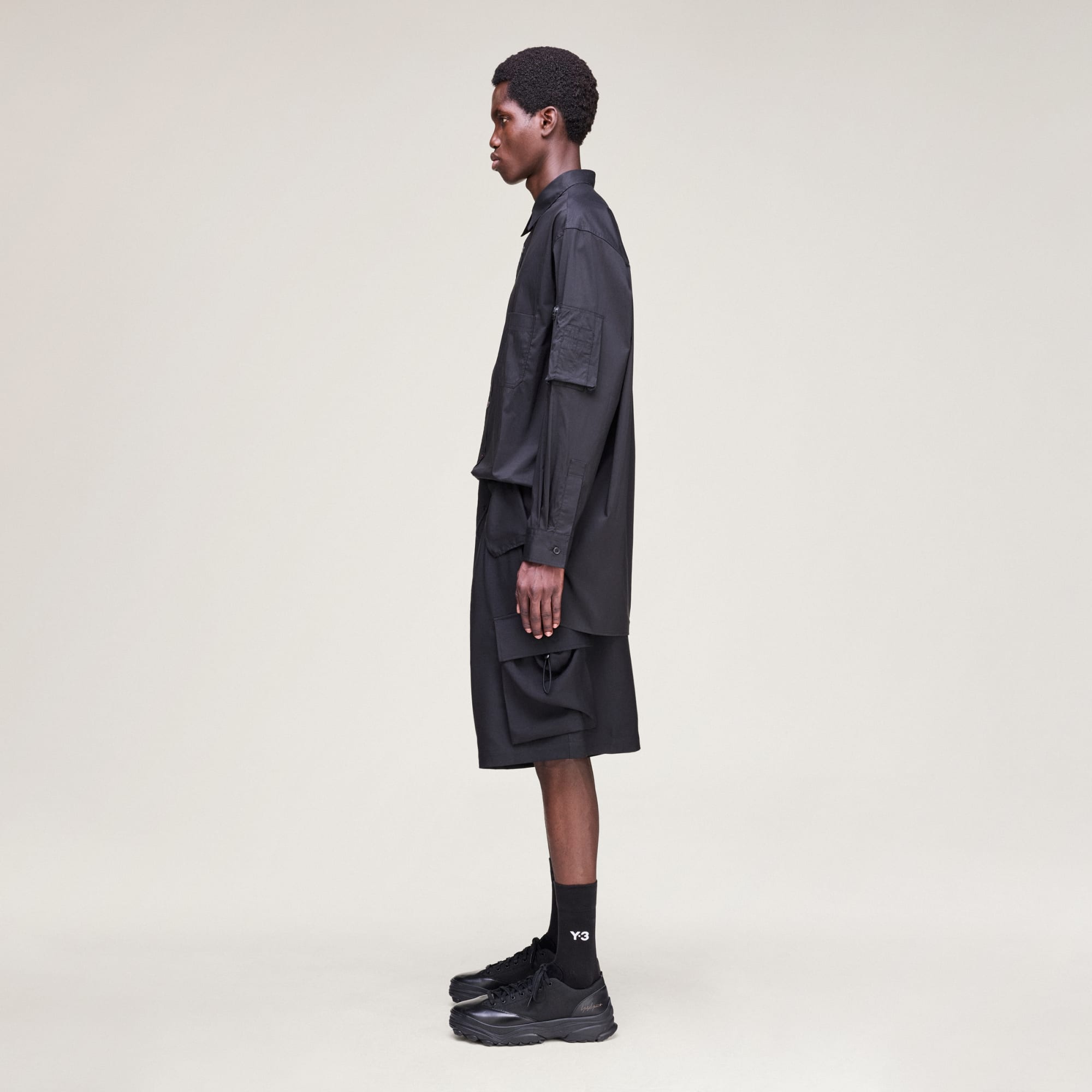 Shorts Cargo Extragrande Y-3 con estructura en sarga para forma y función.