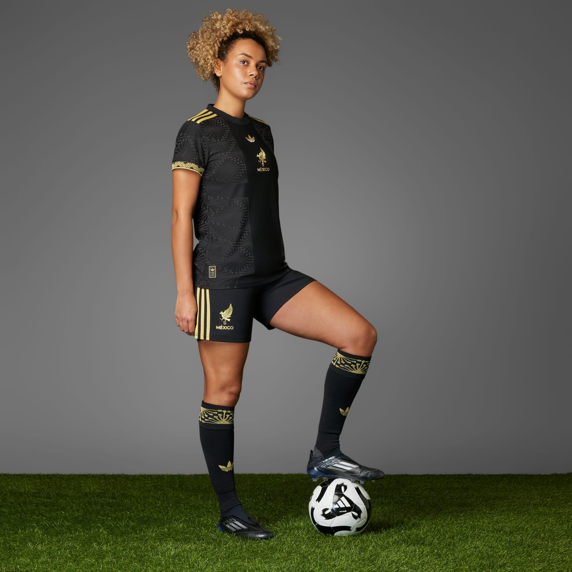 Celebra los años dorados de la cultura y deporte en México con estos shorts adidas, parte de la colección especial de la selección nacional. Los elaborados detalles dorados, incluido un escudo exclusivo del combinado, enfatizan su diseño, mientras que la tecnología transpirable AEROREADY mantiene la piel seca. Ya sea dentro o fuera del terreno de juego, apoya a la escuadra azteca con este pantalón corto de alto rendimiento. Este producto se ha fabricado con un 100% de materiales reciclados. Utilizando materiales reciclados, reducimos los residuos, nuestra dependencia de los recursos finitos y la huella que generan los productos que fabricamos.