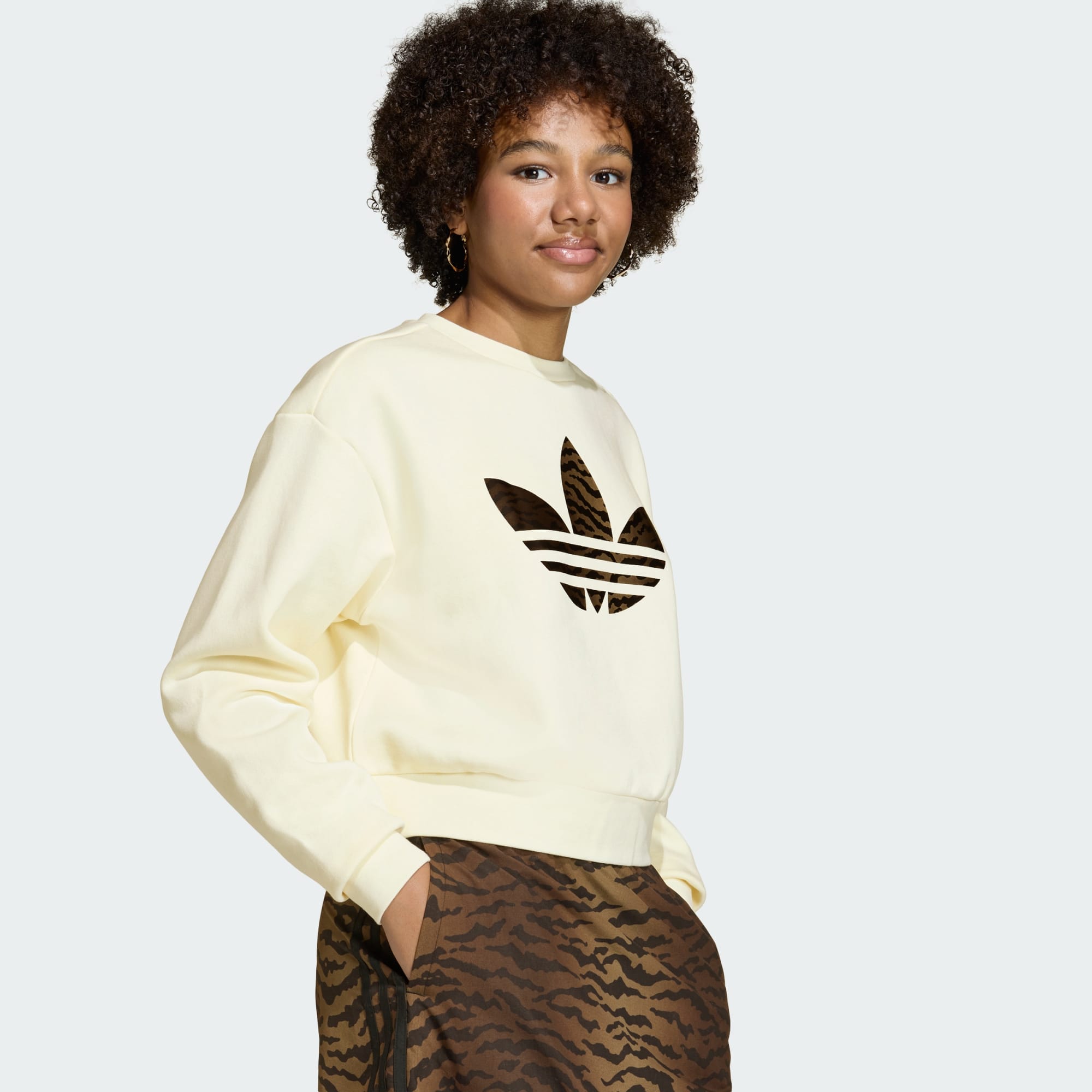Cuando se trata del estilo cotidiano, la Sudadera Boxy Holgado de Cuello Redondo es una opción versátil que ofrece comodidad y estilo. Inspirada en los atrevidos estampados de una camiseta de portero de los archivos de adidas, esta sudadera presenta un llamativo estampado de tigre que aporta personalidad al vestuario de tu hijo. Confeccionada en felpa, ofrece un tacto suave y una sensación acogedora, adecuada para vestir a capas durante los días más frescos. Su silueta cuadrada proporciona facilidad de movimiento y un toque moderno, lo que la convierte en una gran elección para ocasiones informales. El logo de Trifolio bordado añade un toque de la herencia clásica de adidas. Combínala con sus jeans o pantalones favoritos para un look relajado y genial.