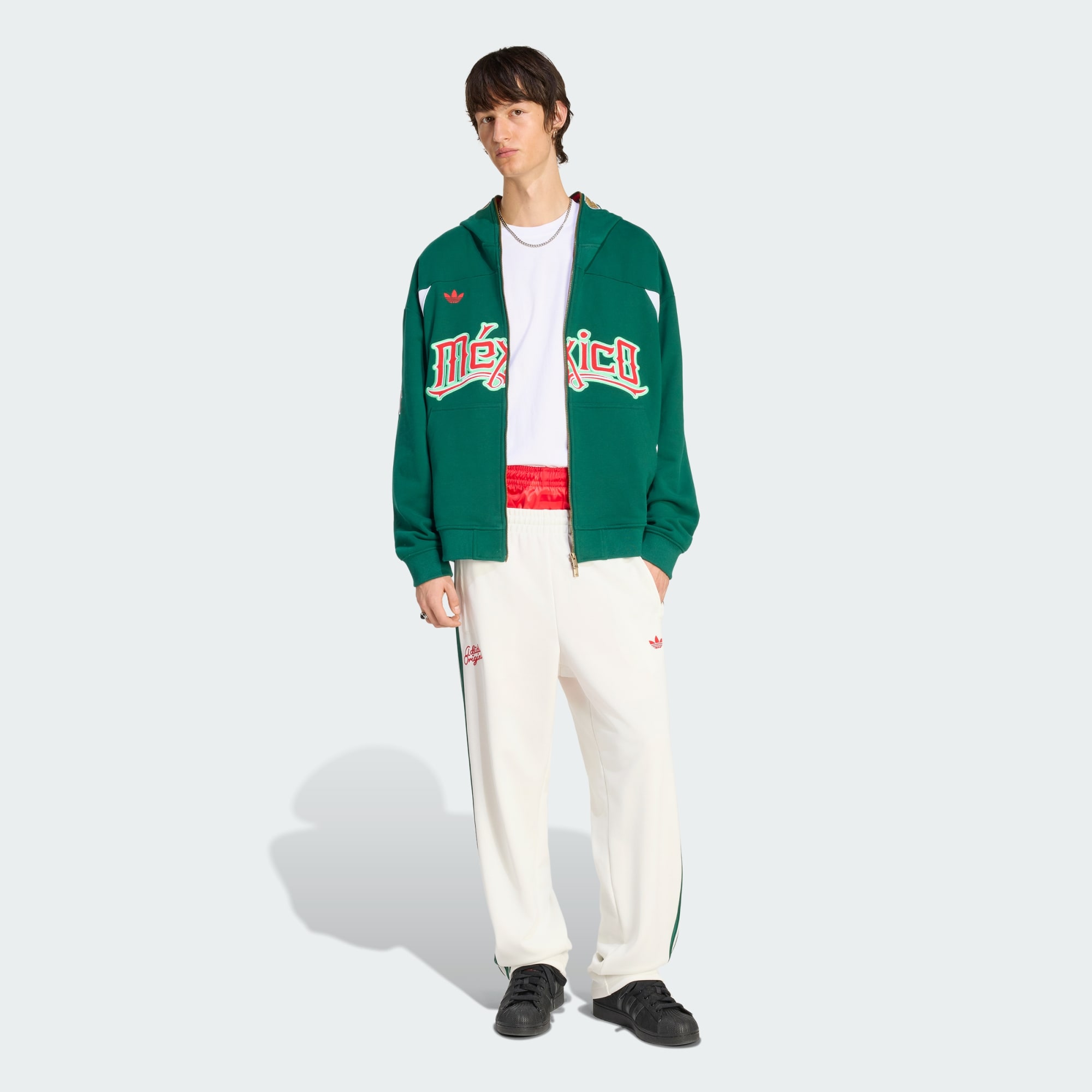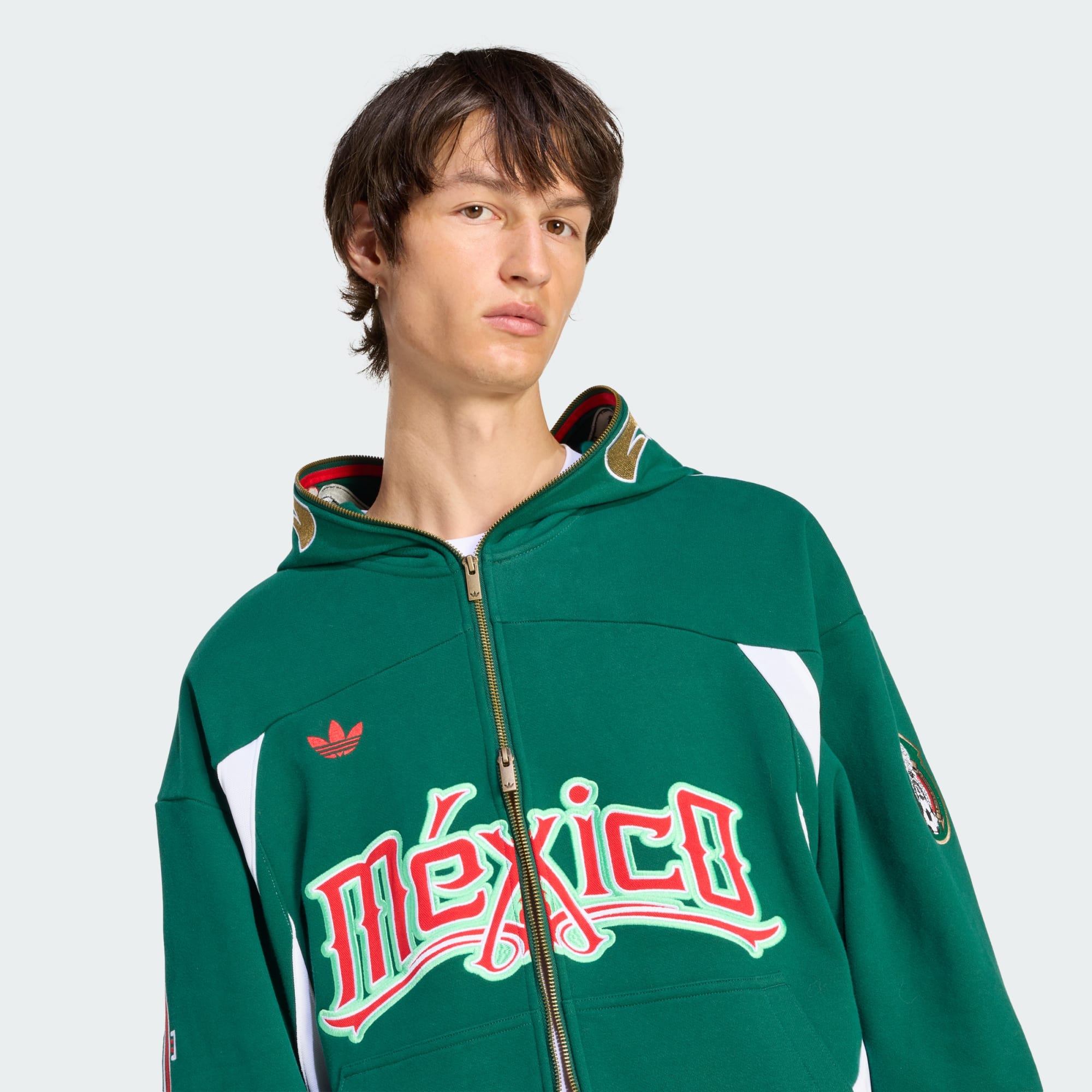 Cuando el mundo se une para celebrar la Copa Mundial de la FIFA 26™, lo hacemos con estilo y patrimonio. La sudadera con gorro adidas Originals de la Selección Nacional de México 26 es un guiño a la tradición y la innovación, ya que combina el emblemático corte Teamgeist con un toque moderno. Confeccionada en suave tela french terry, ofrece un ajuste holgado para una mayor comodidad y un estilo urbano. Con un cierre frontal de largo completo y estructura de gorro ajustado, se ajusta a la perfección, mientras que el bolsillo canguro le añade practicidad. Los escudos de la federación y el distintivo de marca del Trifolio rinden homenaje al rico legado de adidas, lo que la convierte en una prenda imprescindible para cualquier seguidor. Estés donde estés, esta sudadera con gorro te ayuda a mantenerte conectado con el espíritu del juego. Explora el futuro con una prenda que evoca el pasado y deja que tu pasión brille con luz propia.