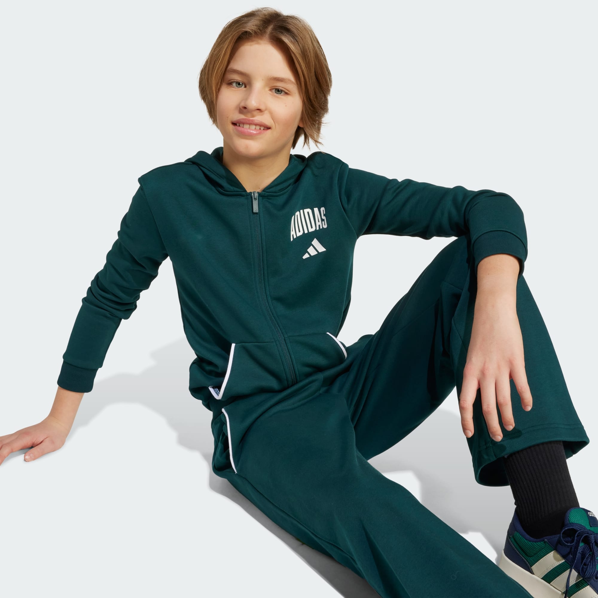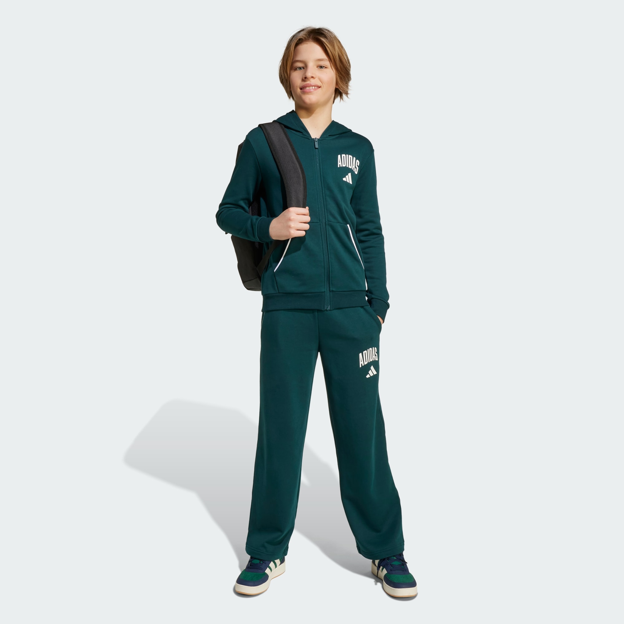 Luce un look de inspiración universitaria con esta sudadera con gorro para niños. Tanto si vas a clase como si sales con los amigos, la suave felpa francesa y los bolsillos canguro te mantendrán cómodo todo el día. Los ribetes en contraste y el logotipo adidas minimalista te conectan con la cultura atlética.