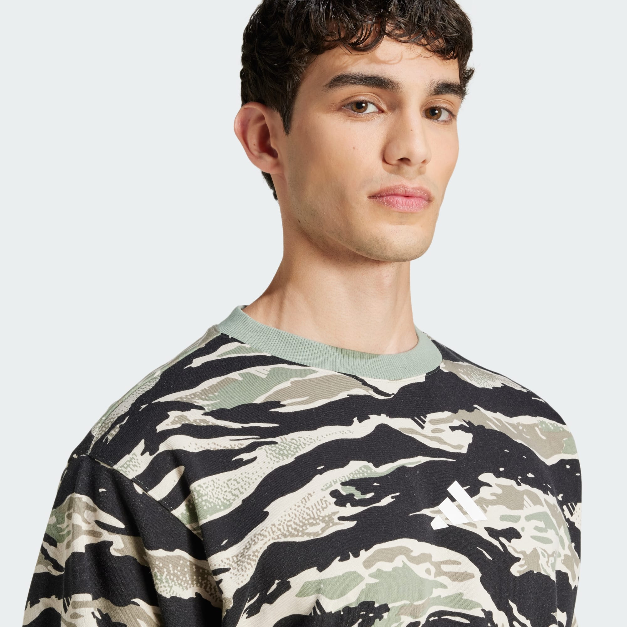 Esta sudadera adidas exude estilo y comodidad para tu día a día. Confeccionada en tela french terry suave y liviana, te envuelve con comodidad sin importar si estás en el sofá o en movimiento. Los puños acanalados y el corte clásico te permiten moverte con libertad. El estampado de camuflaje le confiere un look audaz y único.