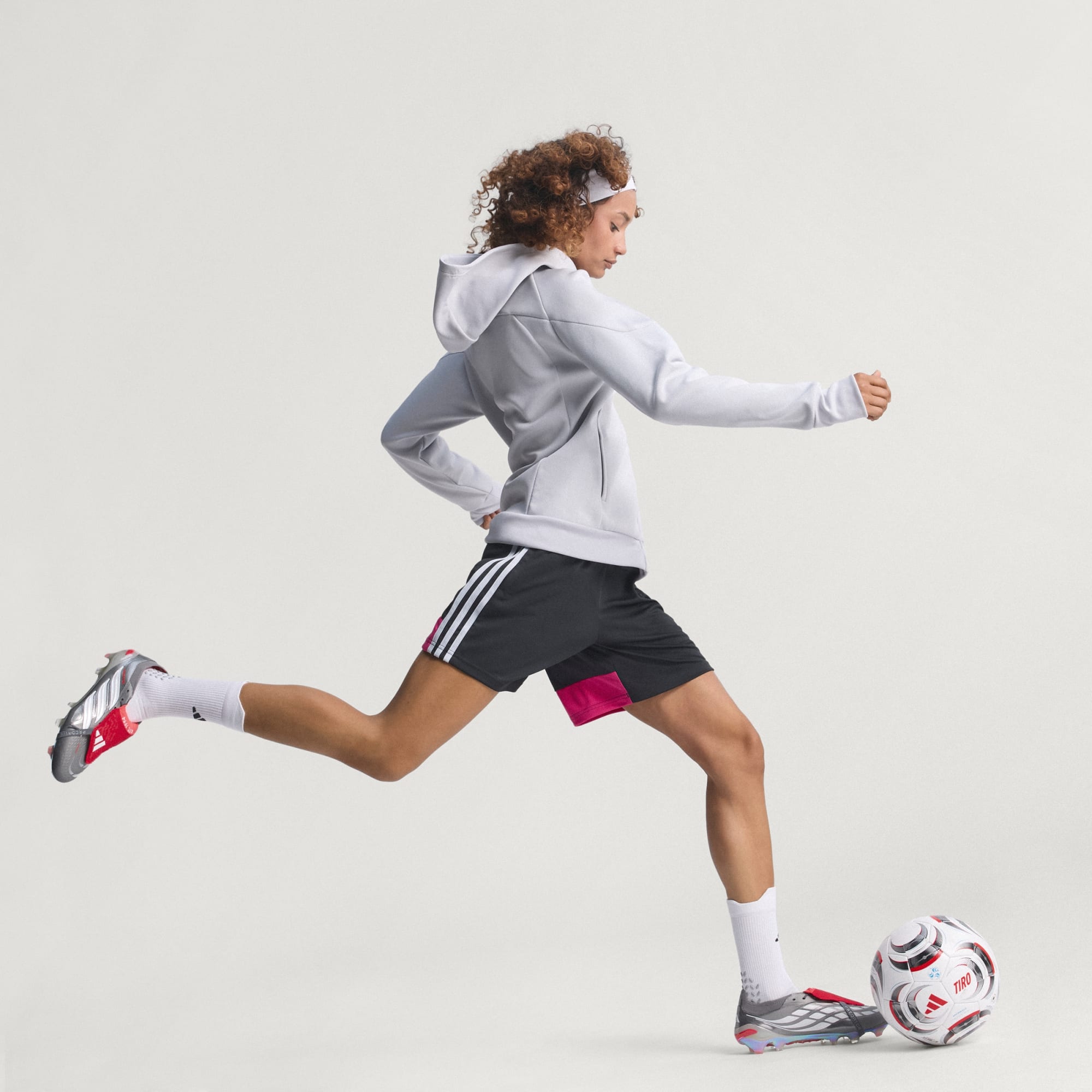 Exterior suave y ligero con zonas de agarre integradas para un control total del balón, potencia en cada disparo y máxima precisión.