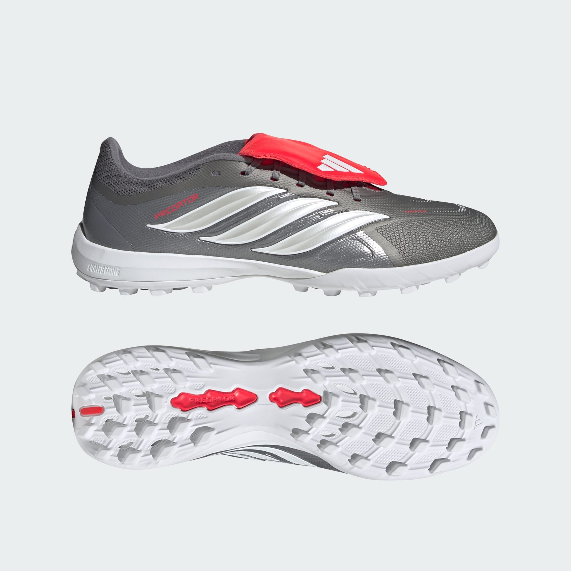 Desbloquea tus objetivos con los Tacos de Fútbol PREDATOR LEAGUE con Lengüeta Plegable para Pasto Artificial. Diseñados para quienes se atreven a rendir en el campo de juego, estos tacos combinan una novedosa malla y una llamativa tecnología para darte ventaja ante la portería. La tecnología de malla Nanostrike ofrece una sinergia entre ajuste y agarre, aportando suavidad y ligereza adicionales e incorporando una superposición de retroalimentación táctil para favorecer la precisión de golpeo. La emblemática lengüeta plegable crea una superficie de golpeo suave diseñada para ayudarte a perfeccionar tu técnica reduciendo las distracciones, mientras que la tecnología Powerspine proporciona estabilidad en el mediopié para lograr golpes más fuertes. Con un corte clásico y sistema de amarre de cordones, estos tacos ofrecen una sensación cómoda y un cierre seguro, permitiéndote centrarte en tu juego. La suela de caucho está diseñada específicamente para superficies de pasto artificial, proporcionando una tracción y un control fiables. Experimenta la potencia y precisión de estos tacos de fútbol y lleva tu juego al siguiente nivel. Con adidas, no solo juegas un partido. Estás haciendo una declaración.