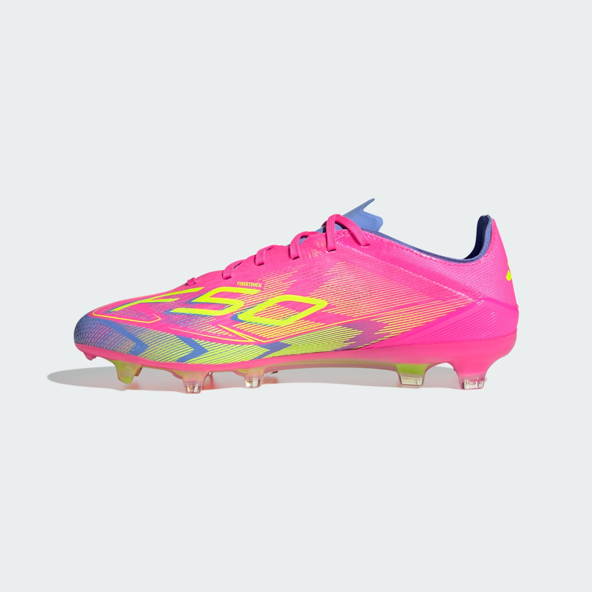 Lleva tu ritmo al siguiente nivel con la ligereza de los tacos adidas F50, diseñados para ayudarte a alcanzar tu máxima velocidad. Estos tacos de fútbol Pro incorporan un exterior liviano Fibertouch con textura Sprintweb 3D para jugadas ágiles y una lengüeta Túnel de ajuste de compresión para un ajuste perfecto. La suela Sprintshell 360 sobre la que se asientan está optimizada para mantenerte superrápido en canchas de terreno firme. Este producto contiene al menos un 20 % de material reciclado. Utilizando materiales reciclados disminuimos los residuos, nuestra dependencia de los recursos finitos y la huella que generan los productos que fabricamos.