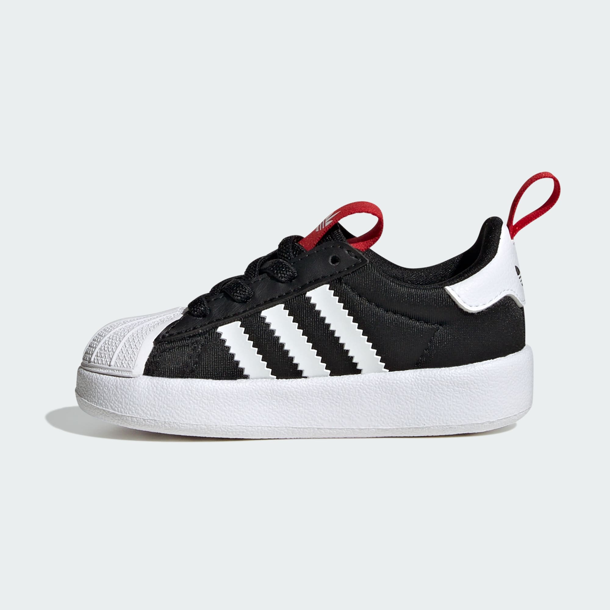 Fáciles de poner y quitar, con toda la ternura que puedas imaginar. Estos tenis adidas Superstar 360 x Disney para niños pequeños están fabricados con una suela de espuma ultrasuave, flexible y ligera, perfecta para los pies de los más pequeños que están aprendiendo a moverse. Los tenis tienen un diseño sin cordones con cordones elásticos que evita molestias a los padres. En los costados, la cara sonriente de Minnie Mouse se asoma desde la mediasuela con amortiguación Adifom, un divertido detalle de Disney para los más pequeños.