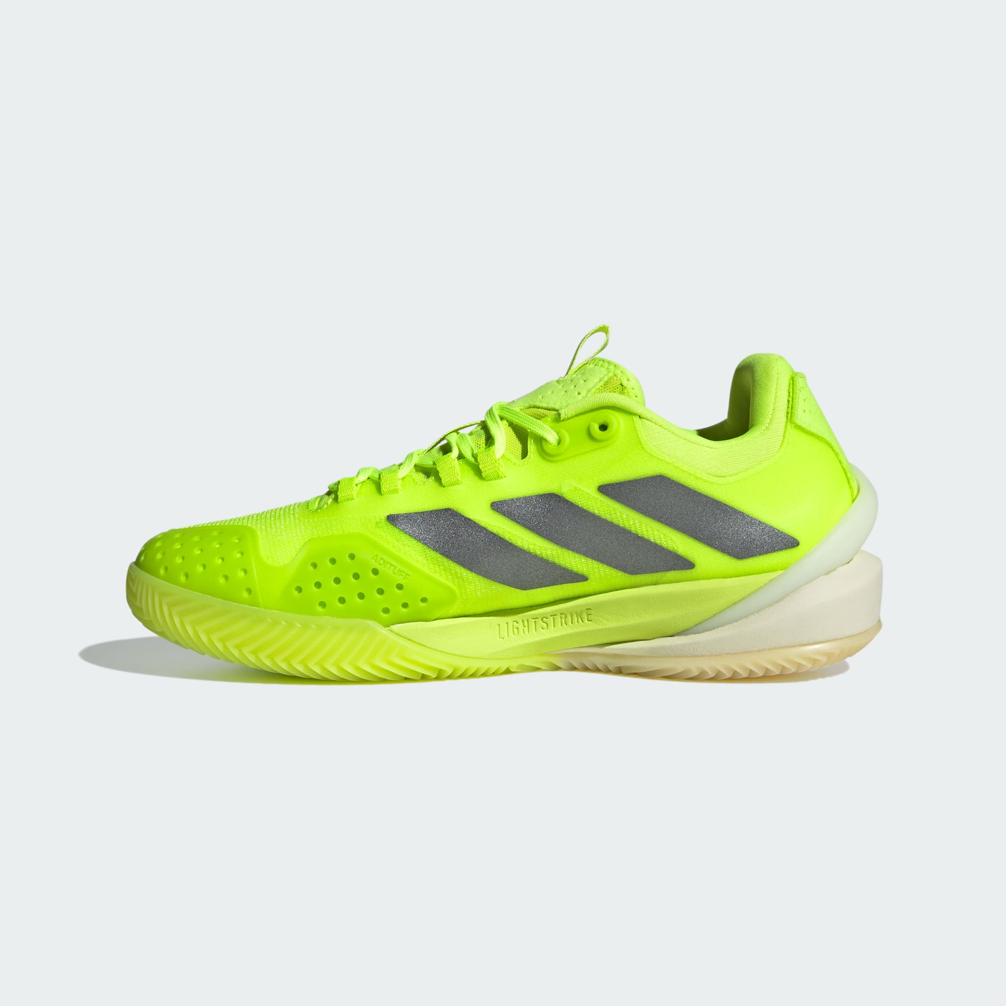 Lleva tu ritmo a una nueva dimensión. Estos tenis adidas Adizero Cybersonic para jugar tenis combinan un exterior de malla liviana con varillas ENERGYRODS, diseñadas para limitar la pérdida de energía al momento del despegue. La suela Lightstrike te mantiene cerca del suelo para que puedas responder inmediatamente a cada desafío. Este producto contiene al menos un 20 % de material reciclado. Utilizando materiales reciclados disminuimos los residuos, nuestra dependencia de los recursos finitos y la huella que generan los productos que fabricamos.
