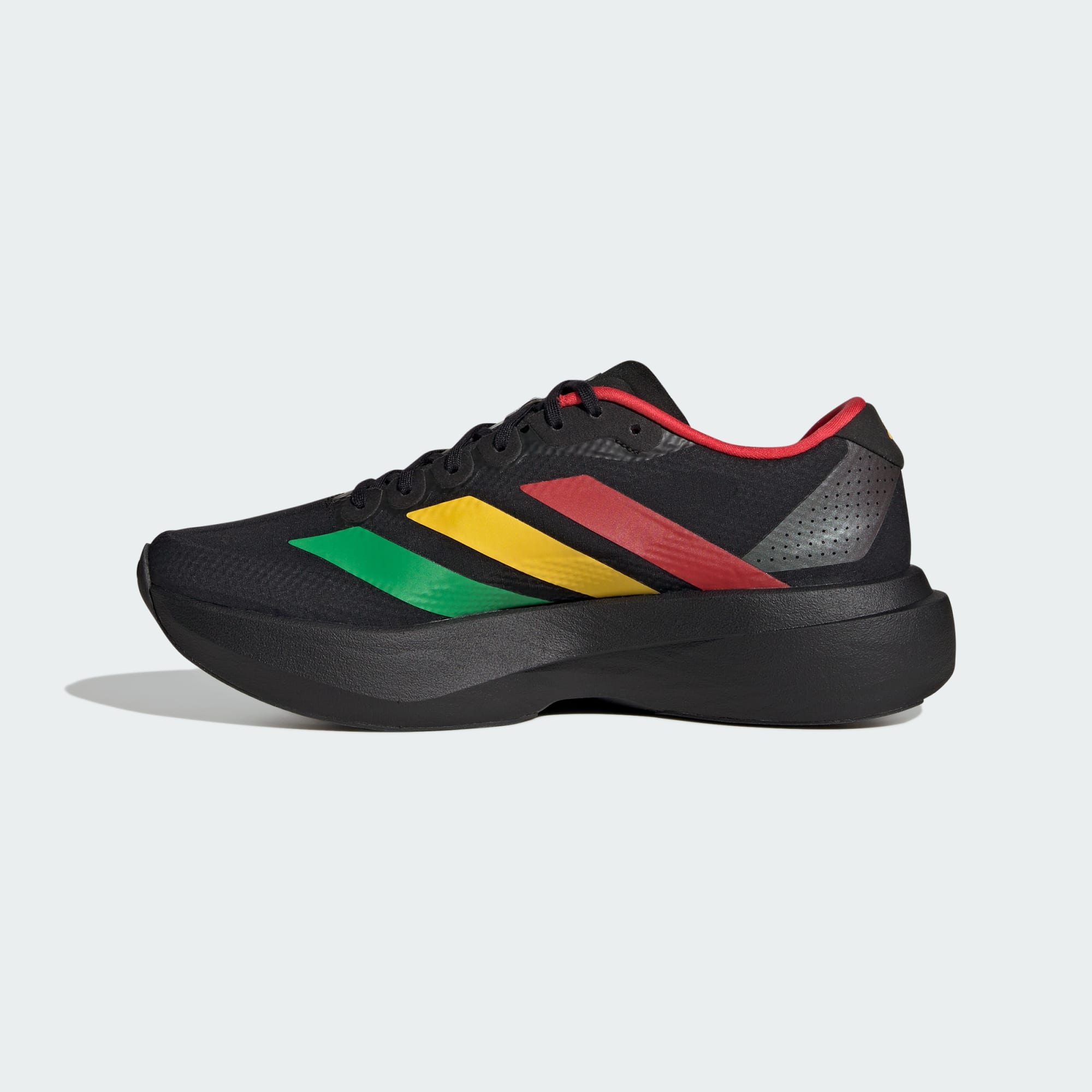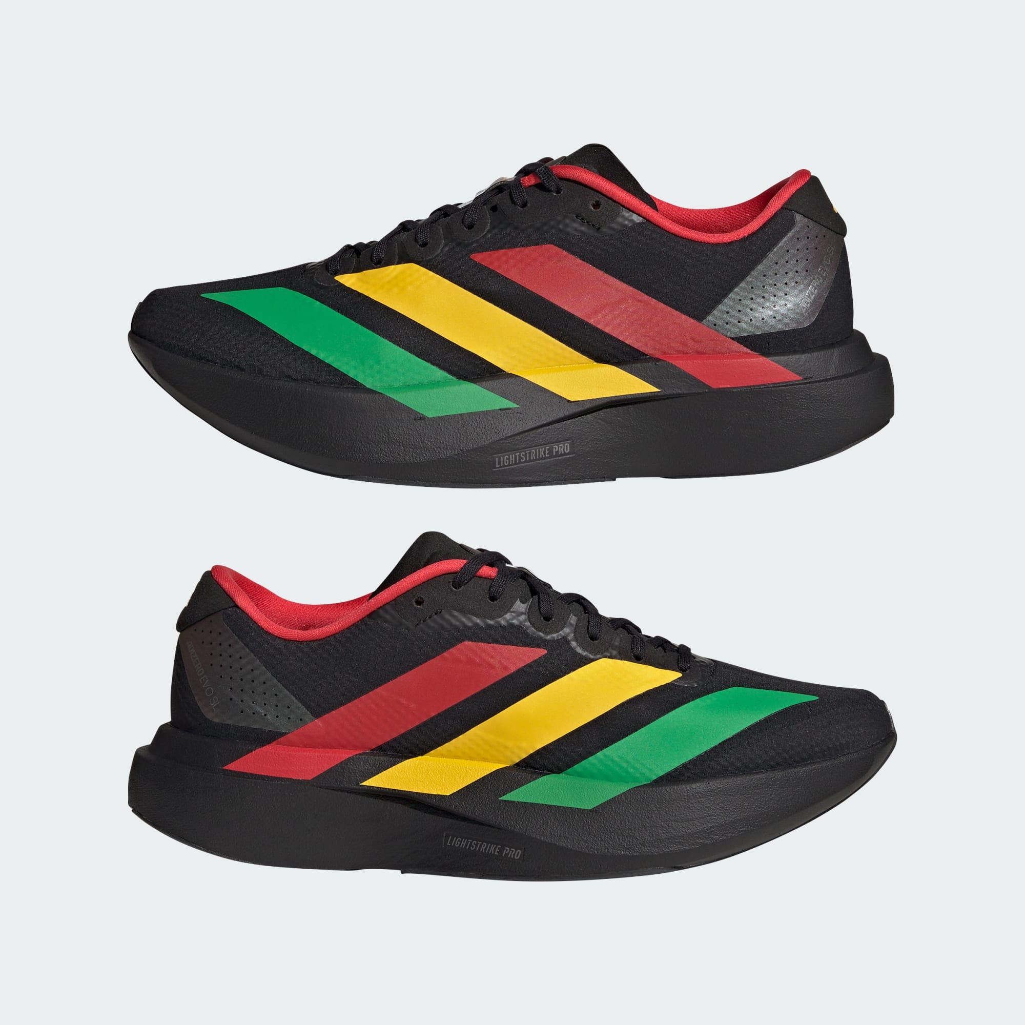 Inspirados en los EVO 1 que batieron todos los récords, los tenis Adizero EVO SL de Jamaica 26 x Bob Marley están diseñados para quienes desean superar sus marcas personales. Estos tenis, que combinan a la perfección la herencia de adidas con la tecnología más avanzada, están diseñados para potenciar cada zancada de los corredores. La ligereza es velocidad. adidas LightstrikePro redefine la próxima generación de velocidad con una mediasuela superligera diseñada para un movimiento dinámico y ligero. La parte exterior textil proporciona transpirabilidad, lo que te ayuda a mantener los pies secos durante las carreras intensas, mientras que la suela de caucho ofrece una tracción fiable en diferentes superficies, proporcionando estabilidad y agarre durante todo el recorrido. Tanto si compites contra el reloj como si disfrutas de una carrera tranquila, estos tenis adidas se adaptan a tu ritmo, con un ajuste clásico y sistema de amarre de agujetas para una experiencia segura y personalizada. Siente la fusión de la innovación y la tradición, que te impulsan hacia adelante con confianza y estilo.