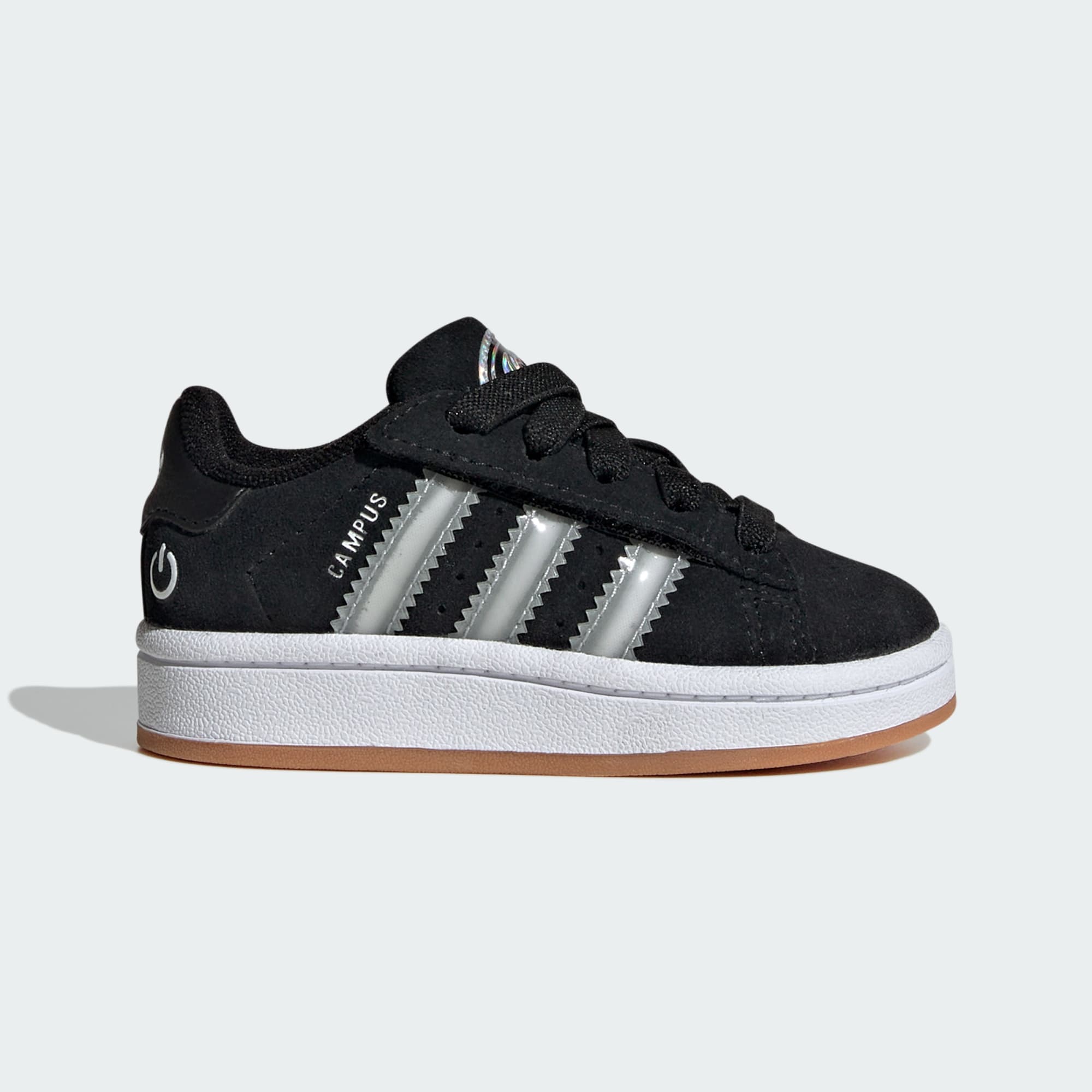 Los emblemáticos tenis Campus se actualizan para adaptarse a las necesidades de los bebés. Están fabricados con materiales suaves y ligeros, con agujetas elásticas que se ajustan perfectamente al pie haciendo que sean muy fáciles de poner y quitar. Las 3 Franjas dentadas parpadean con luces LED de varios colores, convirtiendo cada paso en un show de luces.