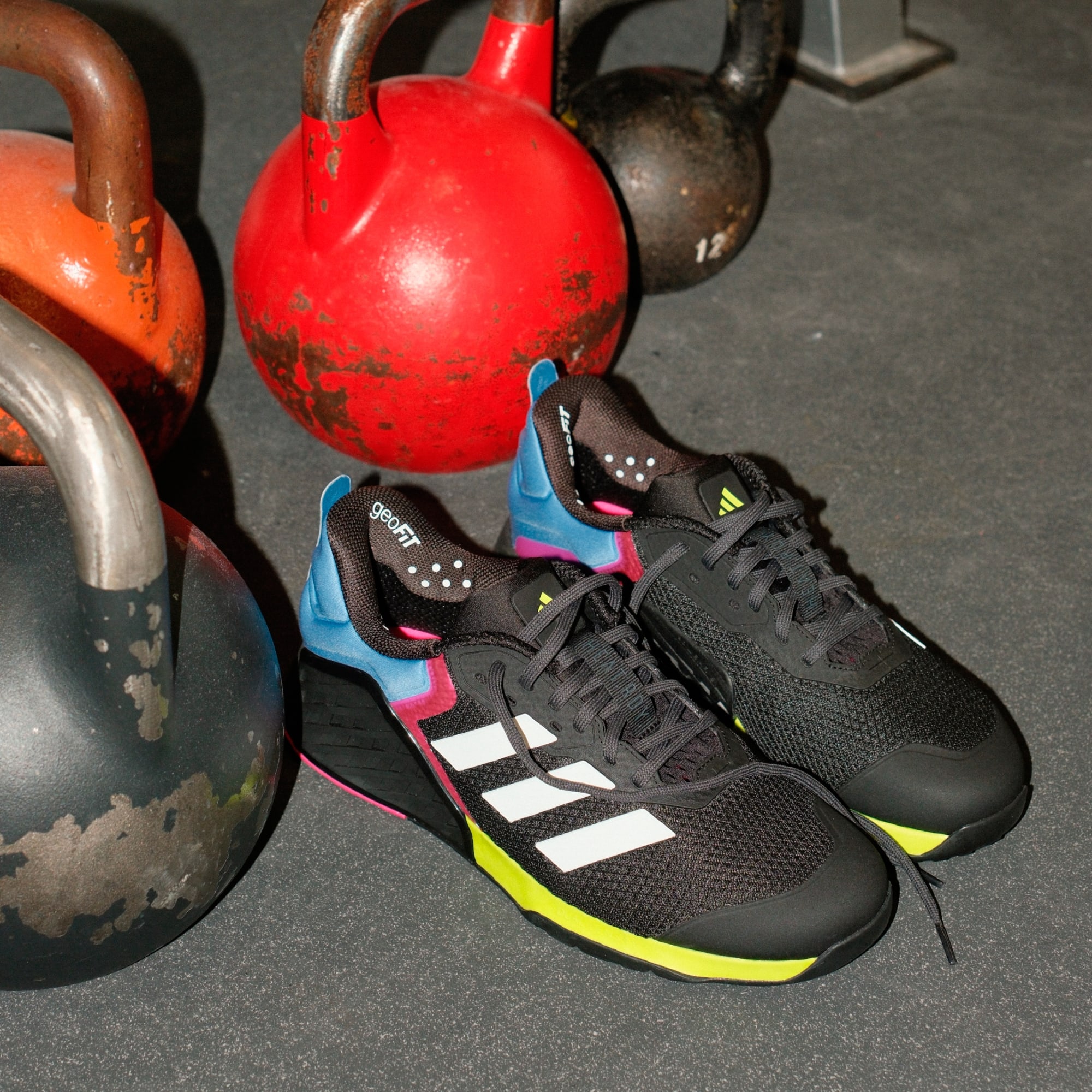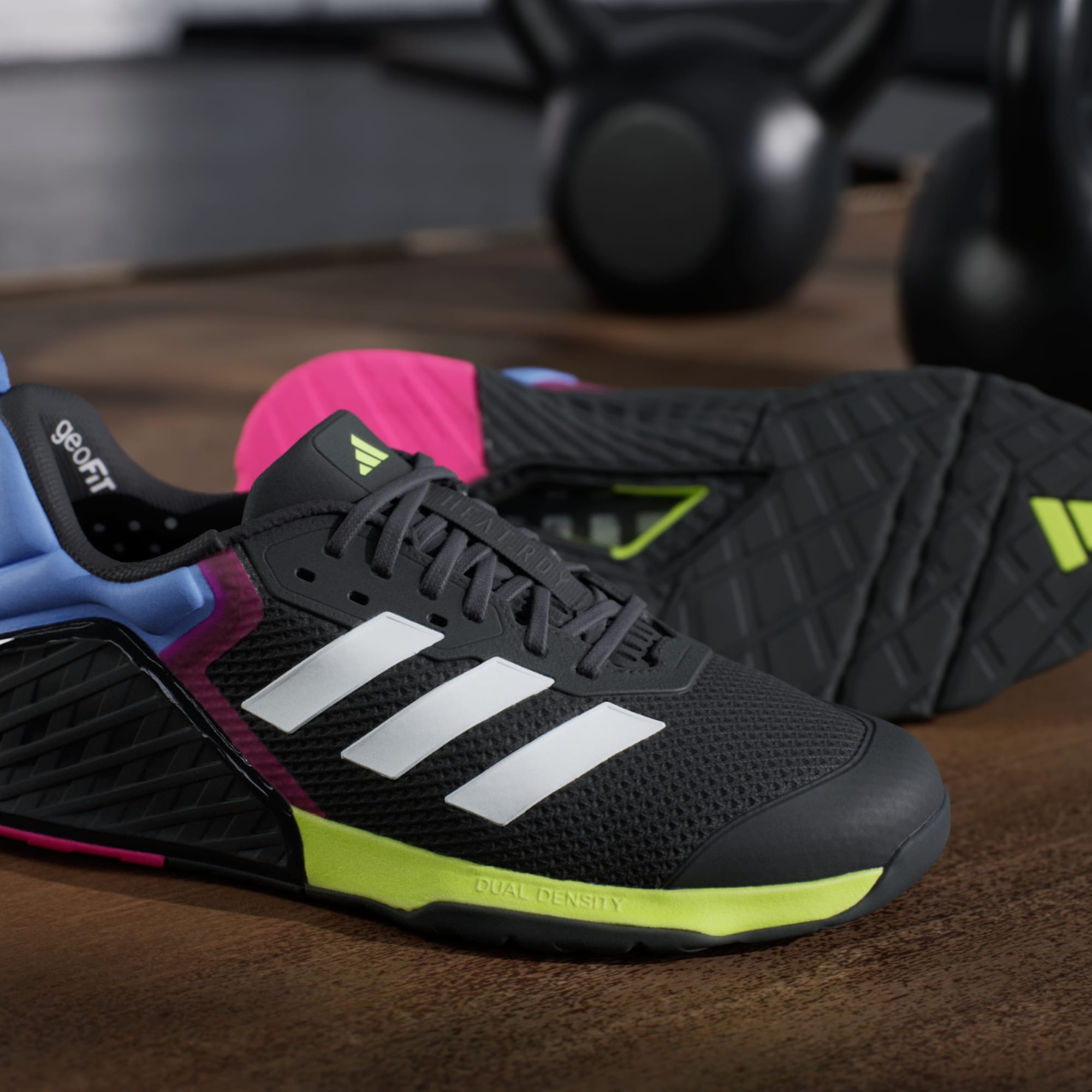 La tecnología GeoFit de adidas ofrece amortiguación en zonas clave alrededor de los tobillos. Viene incorporada en el área de los talones de los tenis Dropset, proporcionando soporte y sujeción para mantener una buena postura al entrenar. Los mejores tenis para entrenamientos de fuerza requieren que tus pies se mantengan firmes, ya que no quieres que se resbalen cuando levantas mucho peso. La tecnología GeoFit se usa también en modelos para levantamientos de potencia y rutinas multifuncionales por la misma razón.