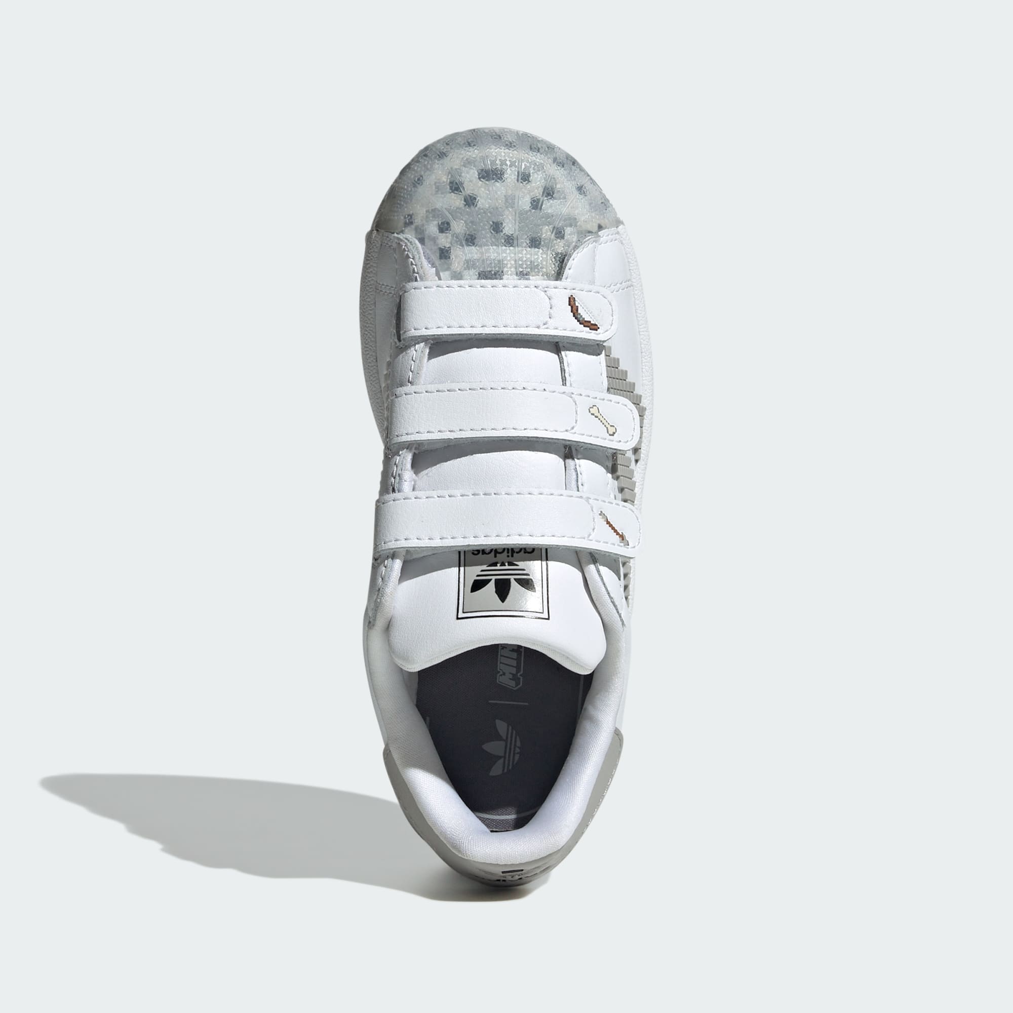 Explora el Supramundo, el Inframundo y más allá con estos tenis para niños. Estos adidas Superstar han sido un ícono durante más de 50 años, y este par se une a Minecraft para una colaboración con temática de bloques llena de expresión creativa. El exterior de piel y la punta clásica de caucho con relieve son fieles al diseño original. Los detalles pixelados y los estampados con forma de herramientas en las tiras ajustables de cierre por contacto te preparan para el modo supervivencia o cualquier otra aventura.