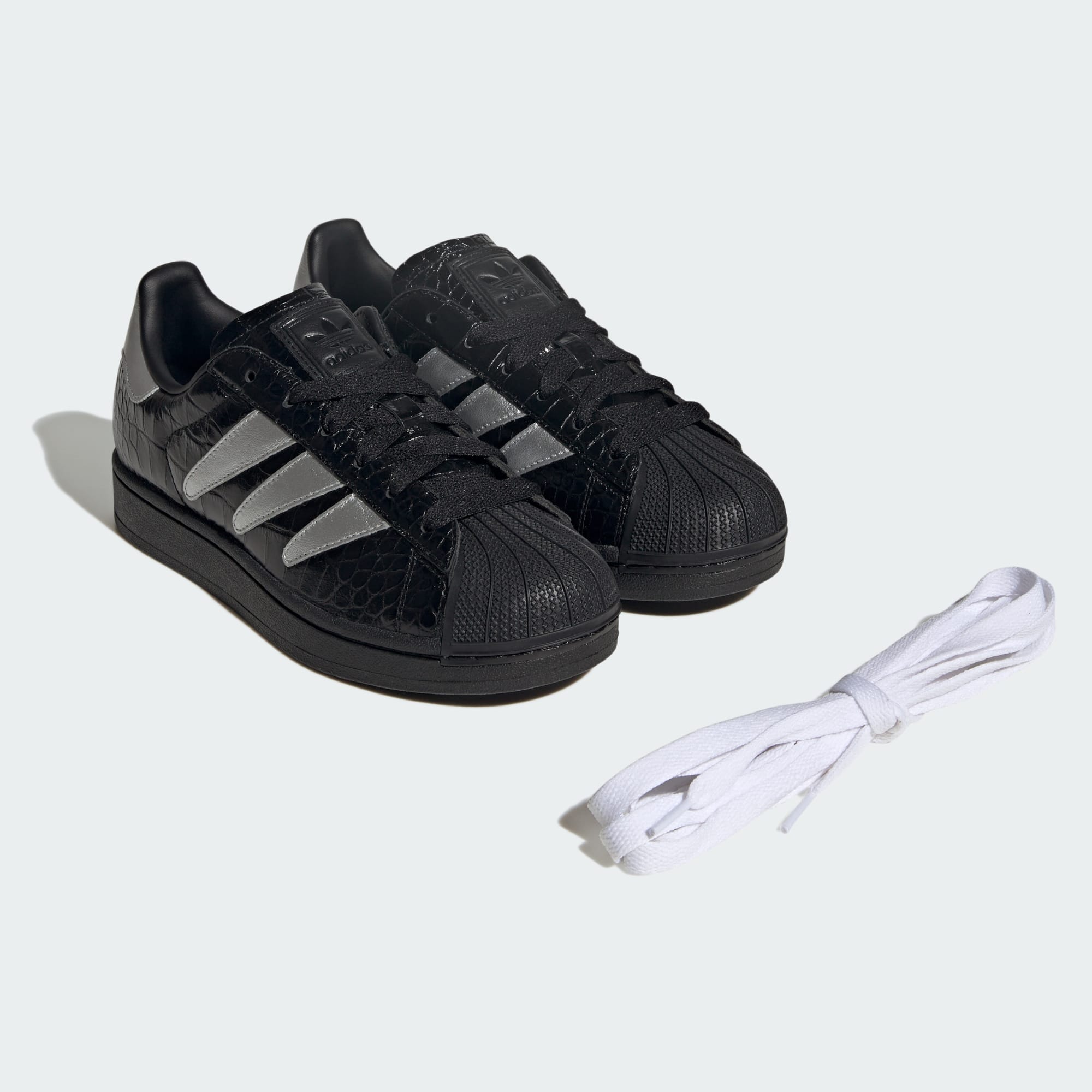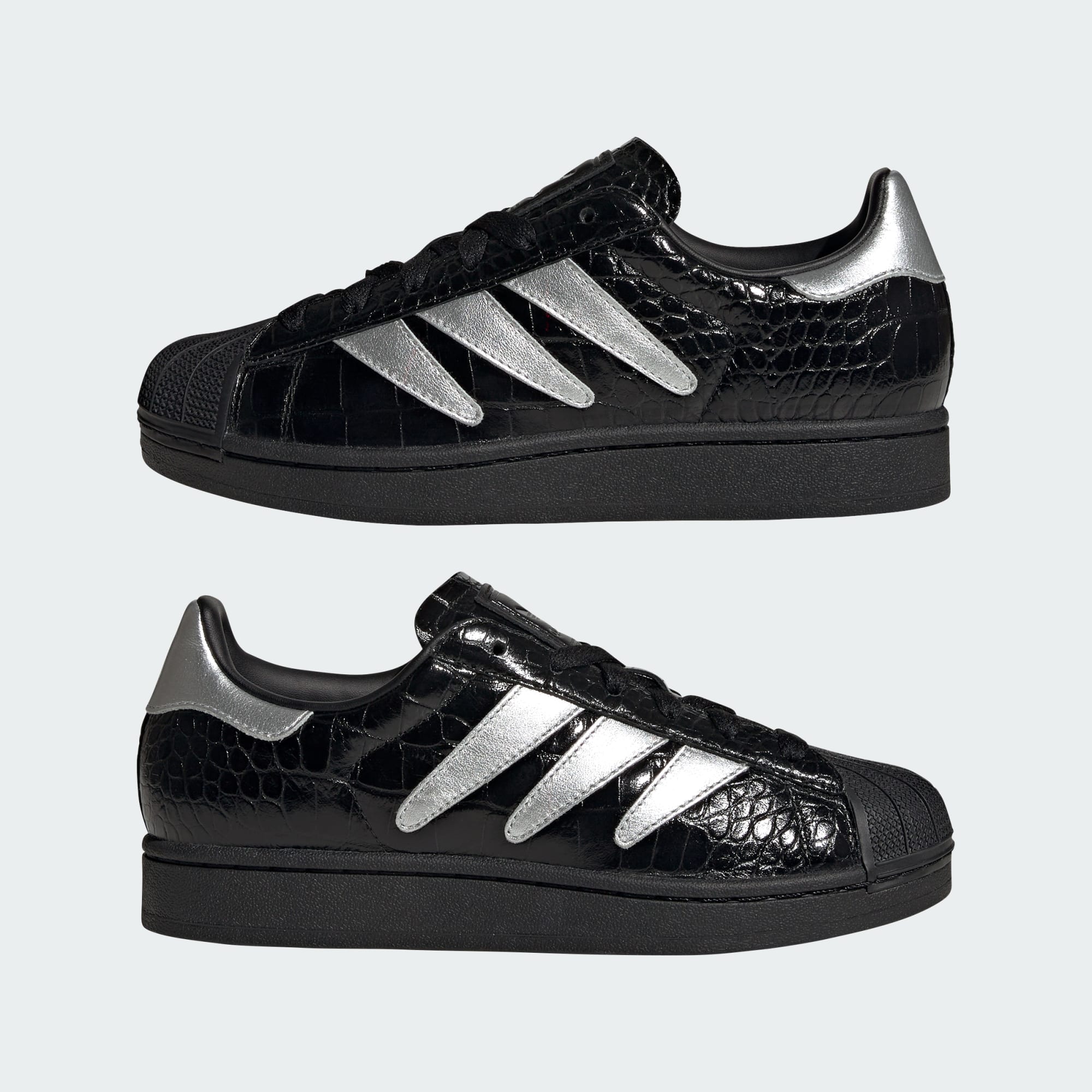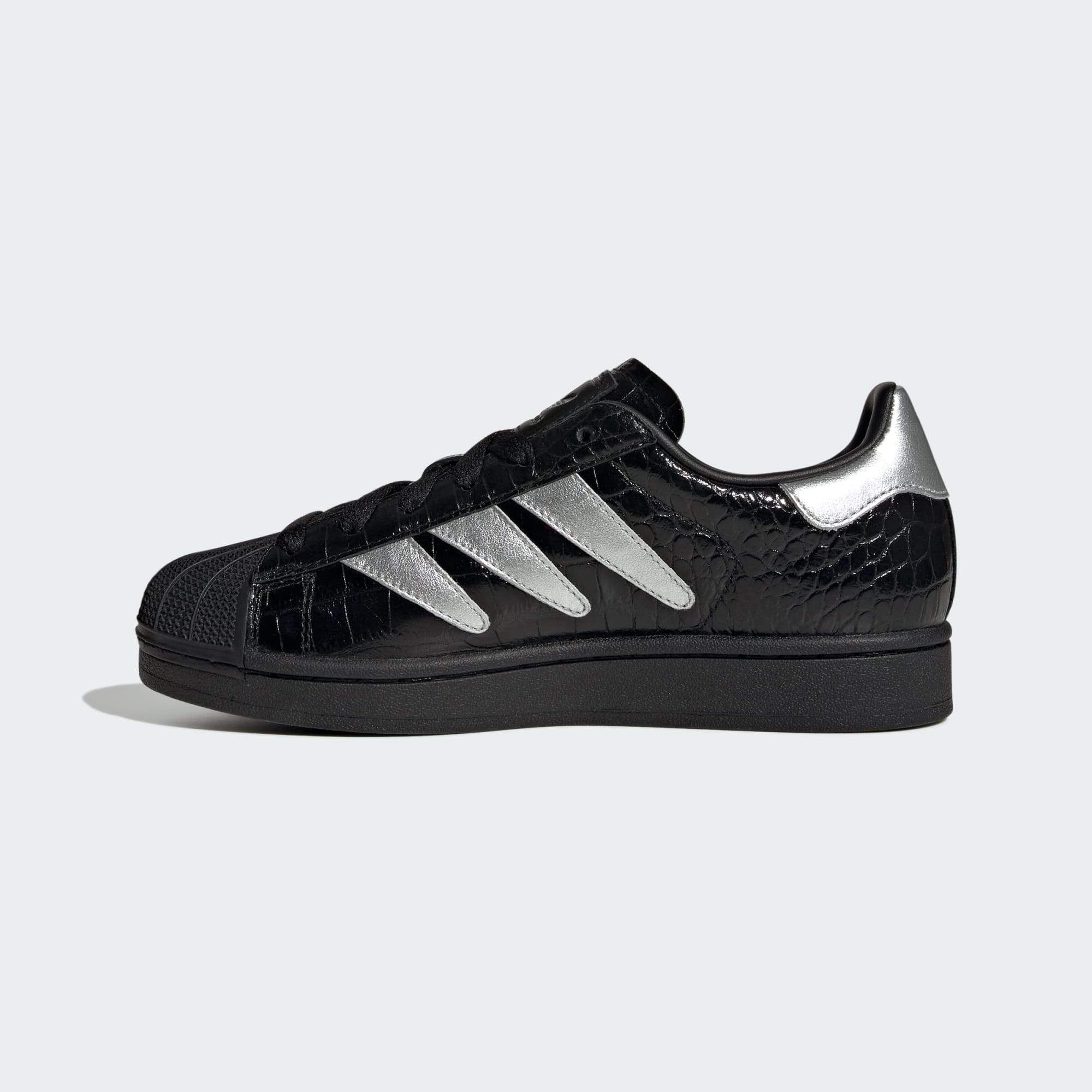 Atrevidos Tenis Superstar II con exterior de piel grabada para un look elegante.