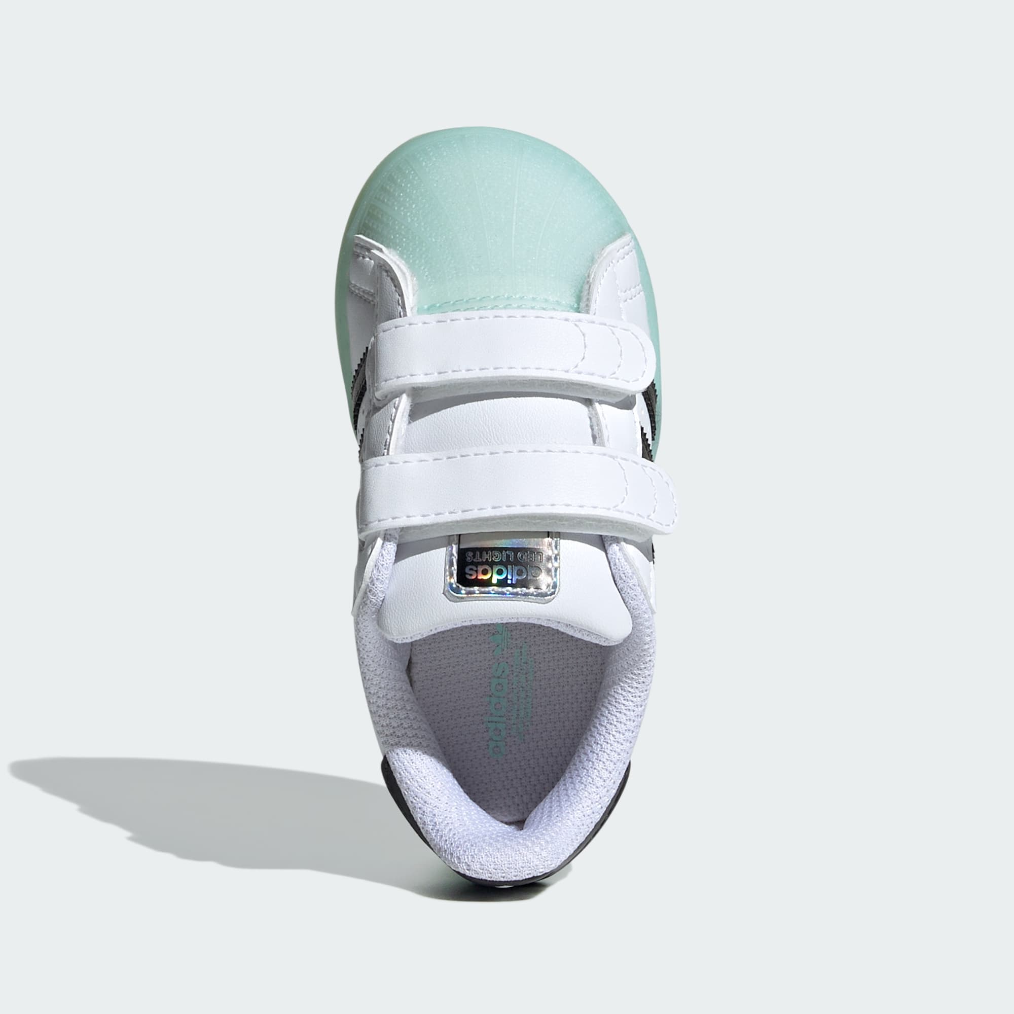 Estos tenis adidas Superstar para bebé están listos para encender sus primeros pasos. Con luces LED integradas directamente en la suela, estos cómodos tenis le imprimen innovación divertida a un amado estilo adidas. Las tiras ajustables de cierre por contacto los hacen fáciles de poner y quitar, mientras que la plantilla OrthoLite® mantiene los pies cómodos. Con un botón de encendido y apagado fácil de usar, puedes controlar cuándo iluminar el día de tu pequeño explorador.