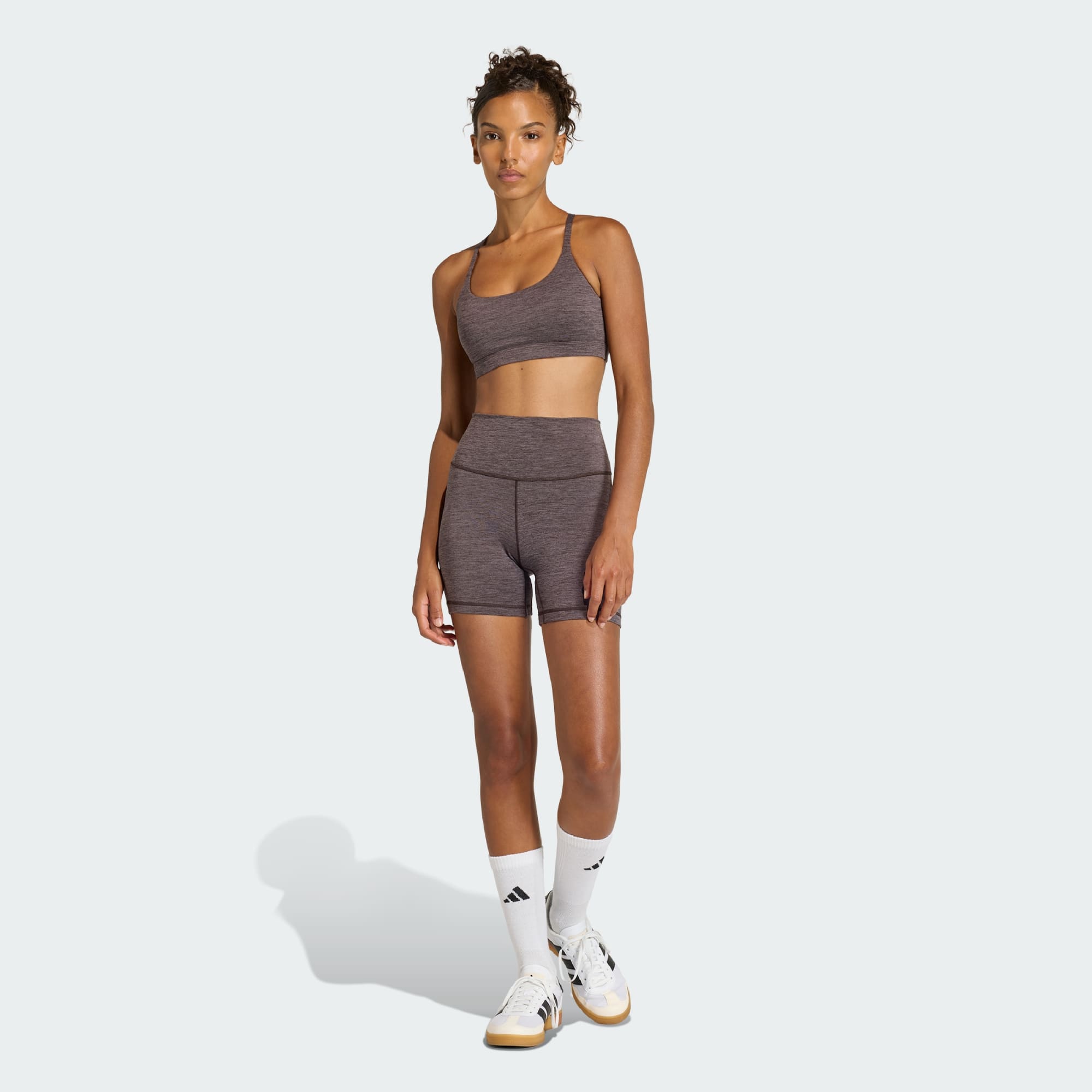 El top deportivo con soporte ligero All Me está diseñado para convertirse en tu segunda piel, ofreciendo una sensación suave sobre tu piel. Este top deportivo abraza suavemente tu cuerpo, permitiéndote moverte con libertad y naturalidad durante tu rutina diaria de yoga. Confeccionado con Adisoft, la sensación ultrasuave se une al rendimiento con Lycra® Adaptiv™ añadida para un ajuste y comodidad personalizados. La espalda con tiras delgadas con cubierta de material sellado añade un toque estilizado, mientras que las costuras suaves contornean tu cuerpo en movimiento. El top deportivo incorpora almohadillas removibles en forma de gota y antideslizantes con separación entre almohadillas y puntos de agarre para eliminar el movimiento, proporcionando una cobertura opcional y una sensación personalizable. Con su banda inferior elástica encajada y sus costuras suaves al tacto, este top deportivo se siente ligero, ofreciendo un ajuste favorecedor para una sensación de estar usando casi nada. Siéntate y relájate durante el día con este top deportivo fresco y cómodo de adidas.